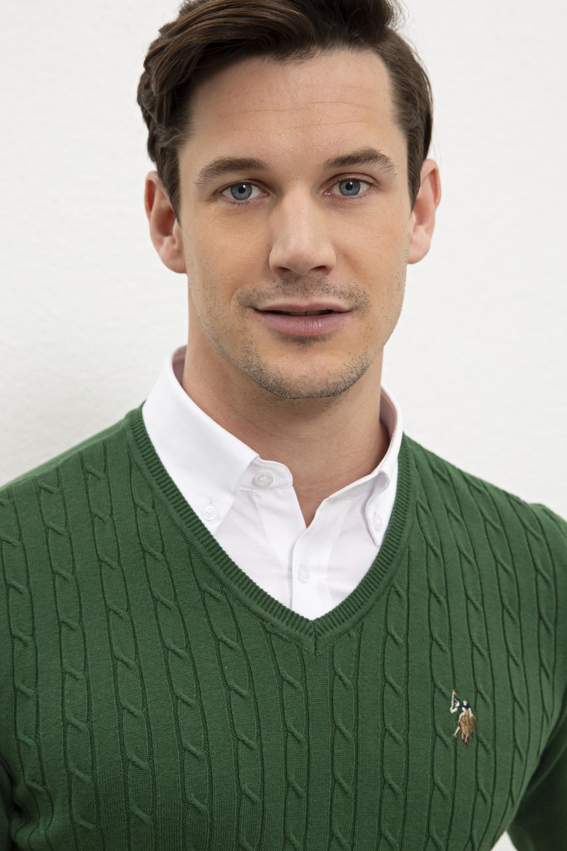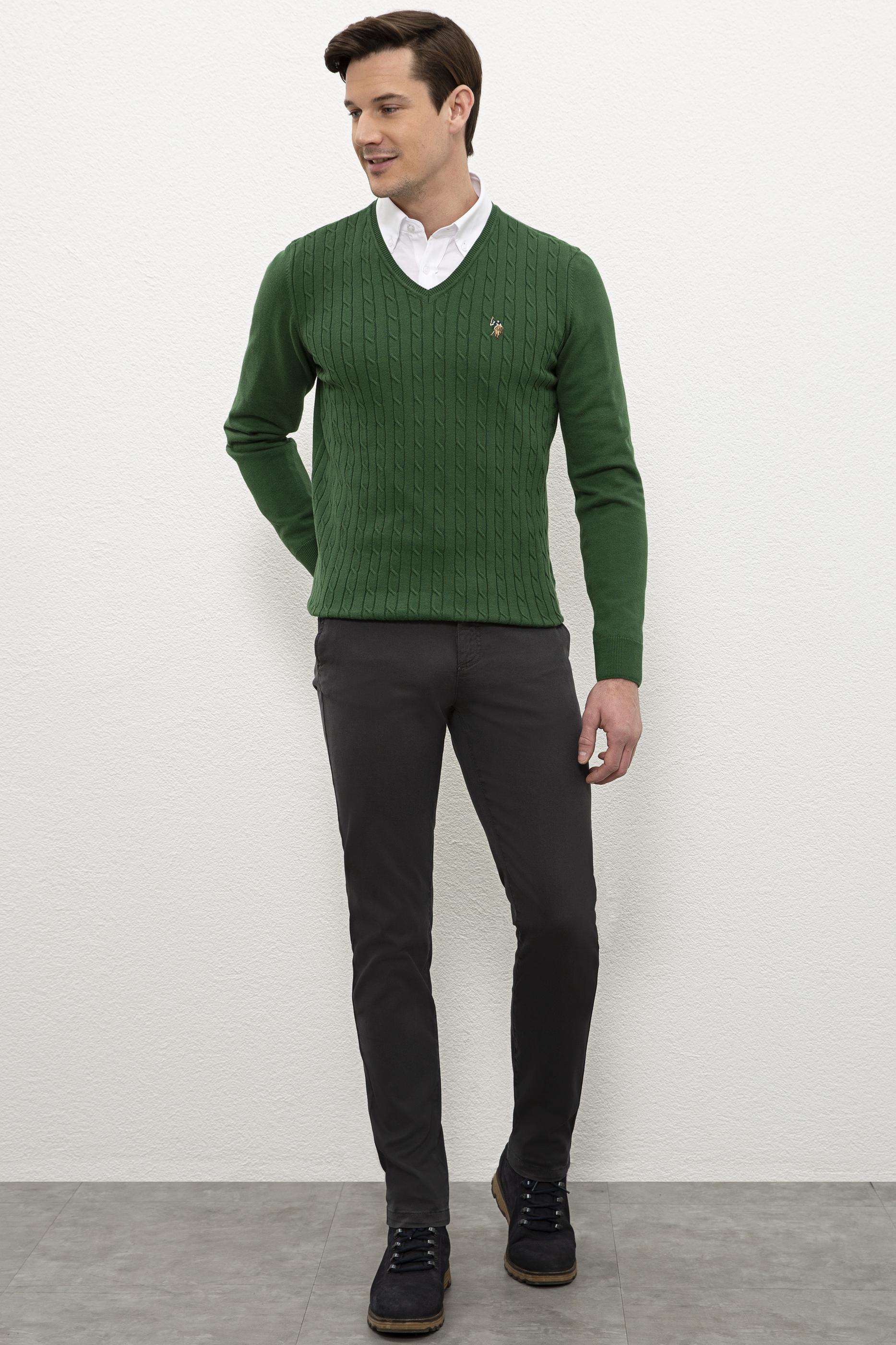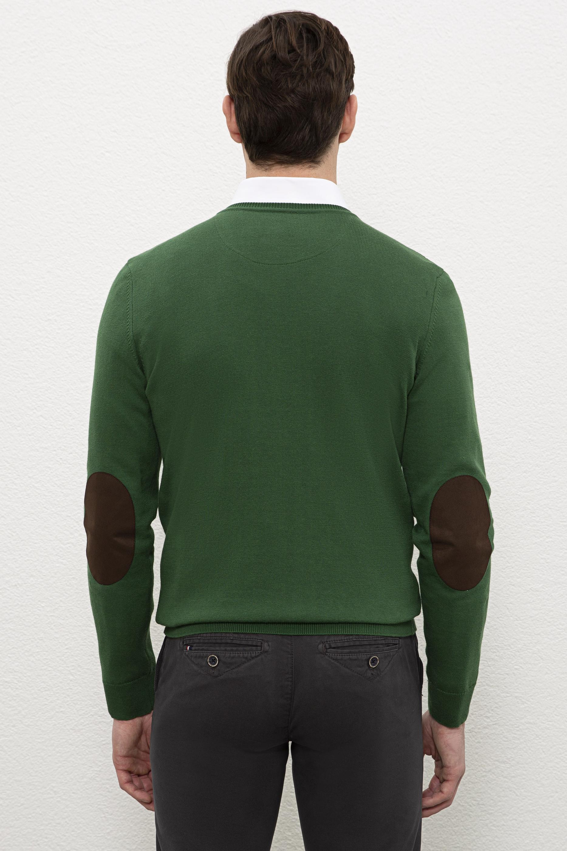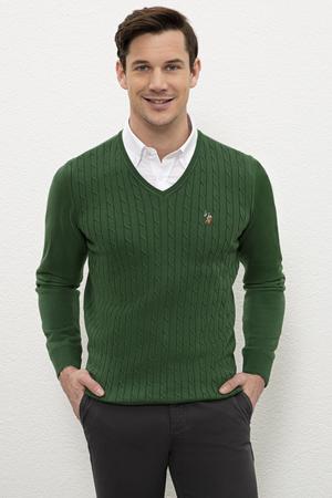 - Erkek Yeşil V-Yaka Triko Kazak Basic