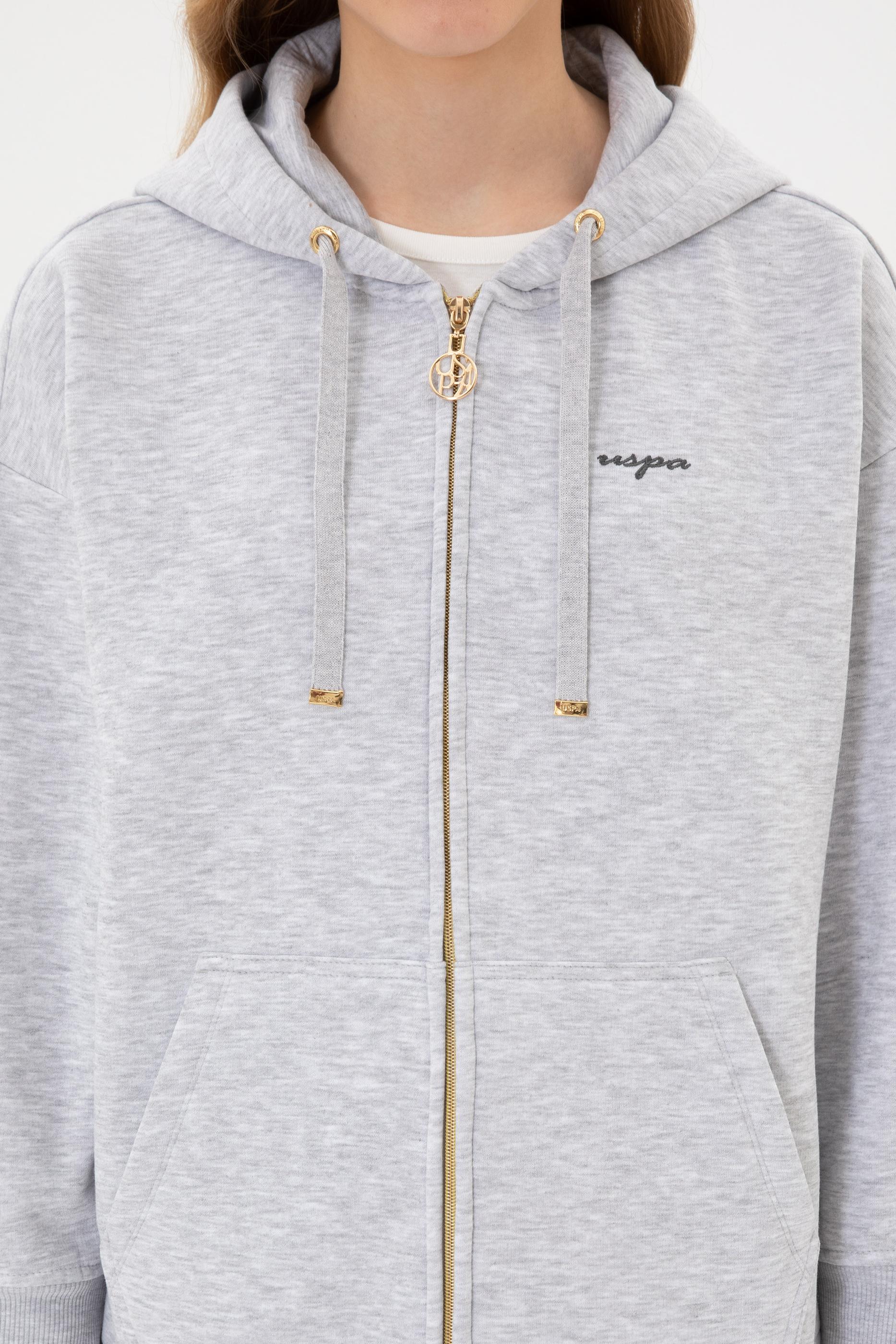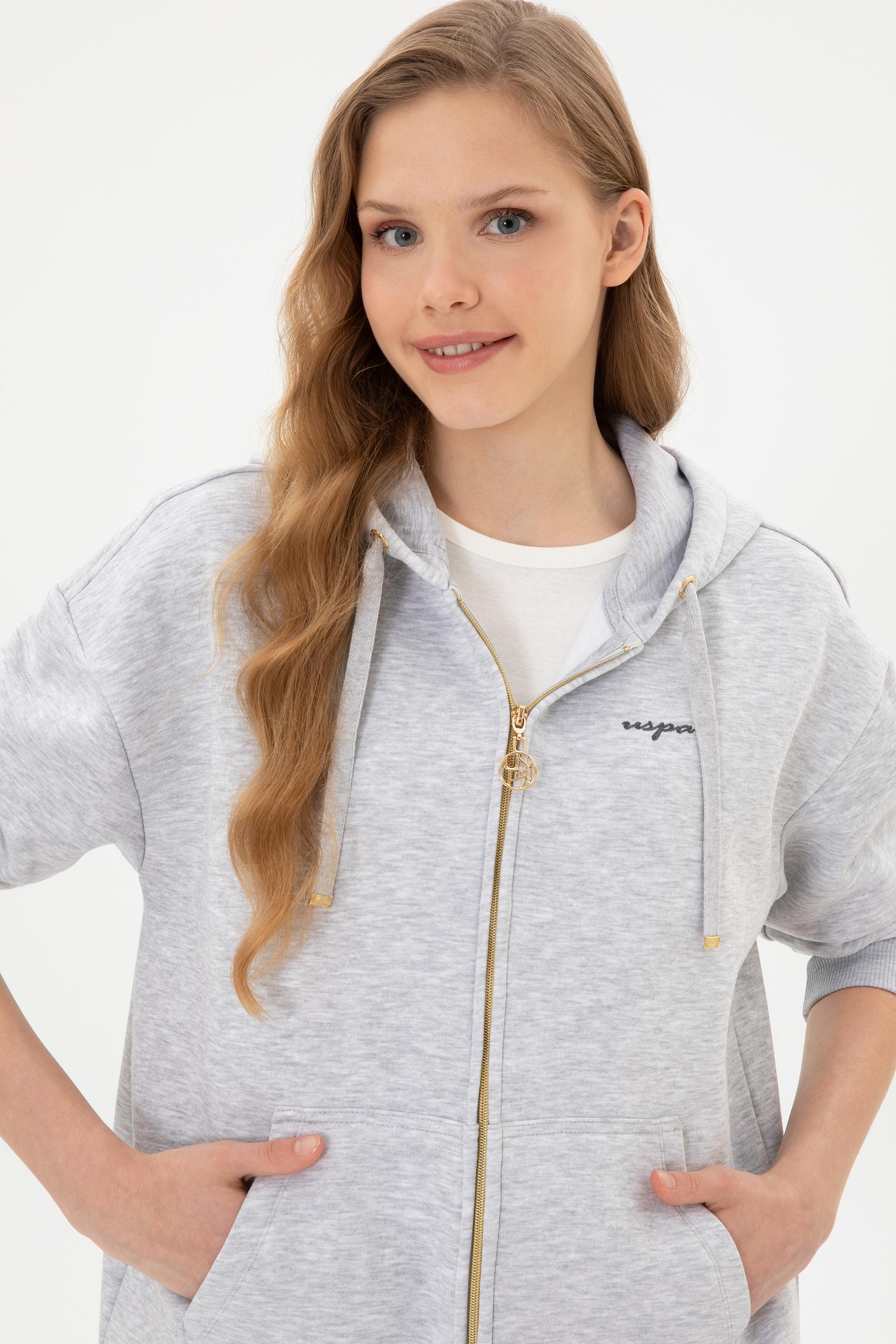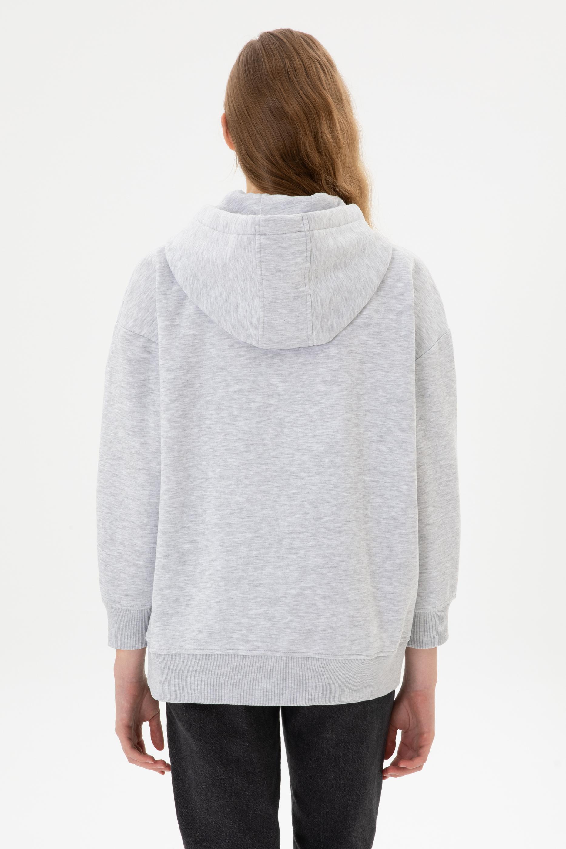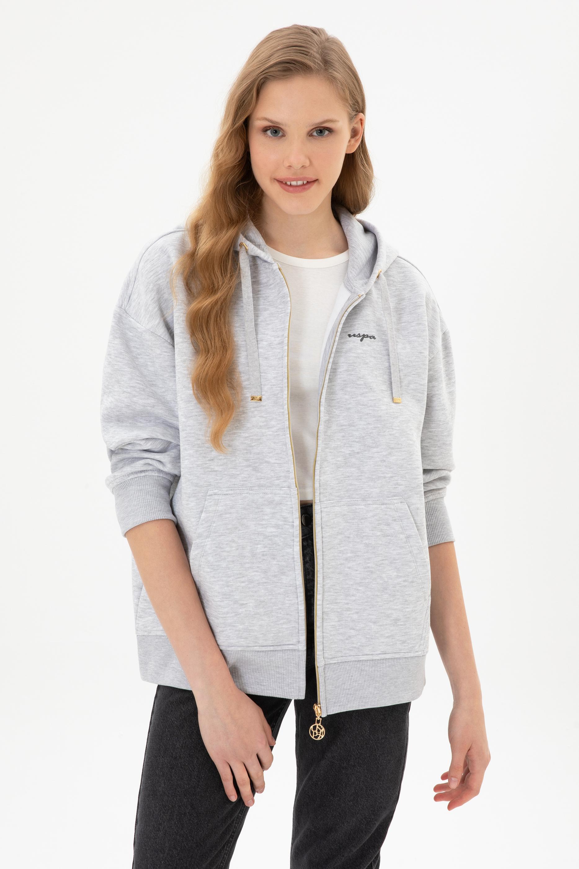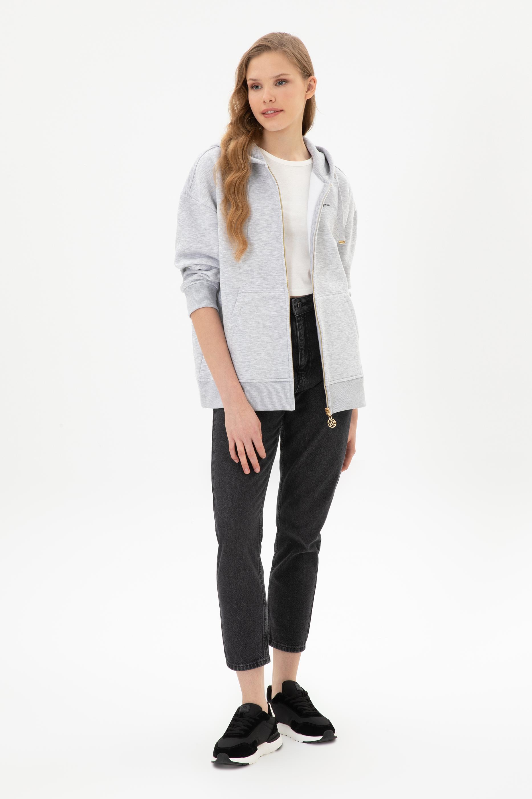 - Kadın Açık Gri Şardonlu Kapüşonlu Sweatshırt