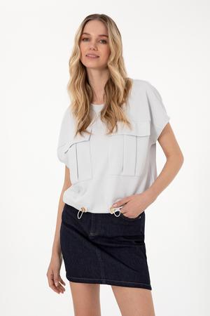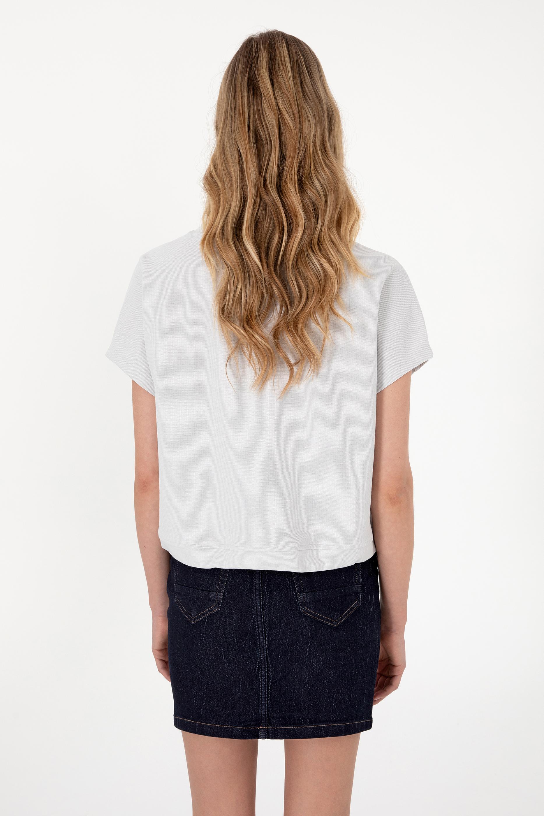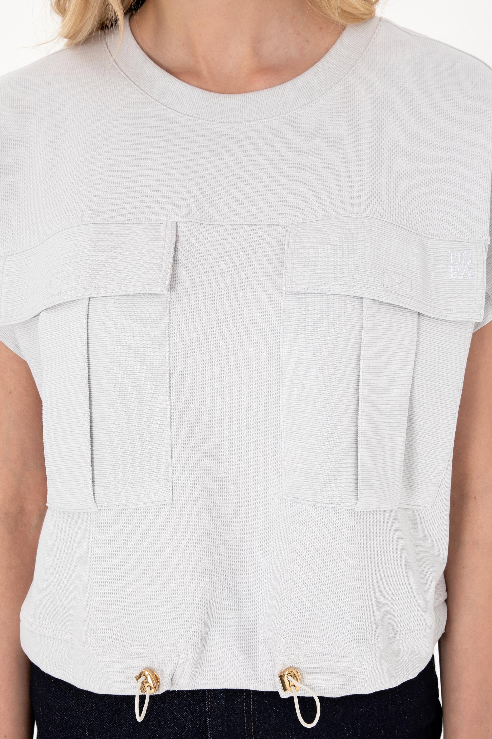 Kadın Açık Gri Bisiklet Yaka Tişört