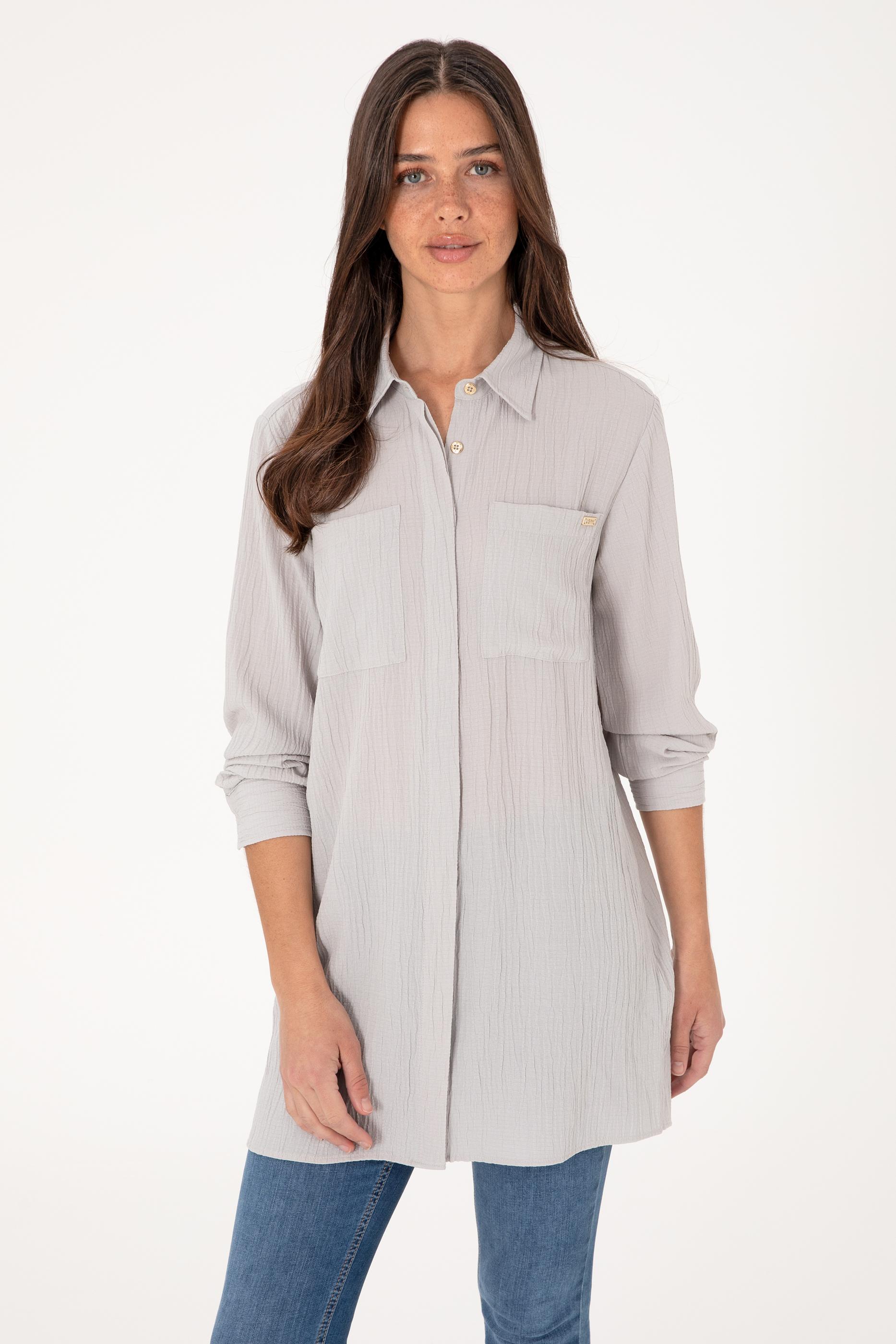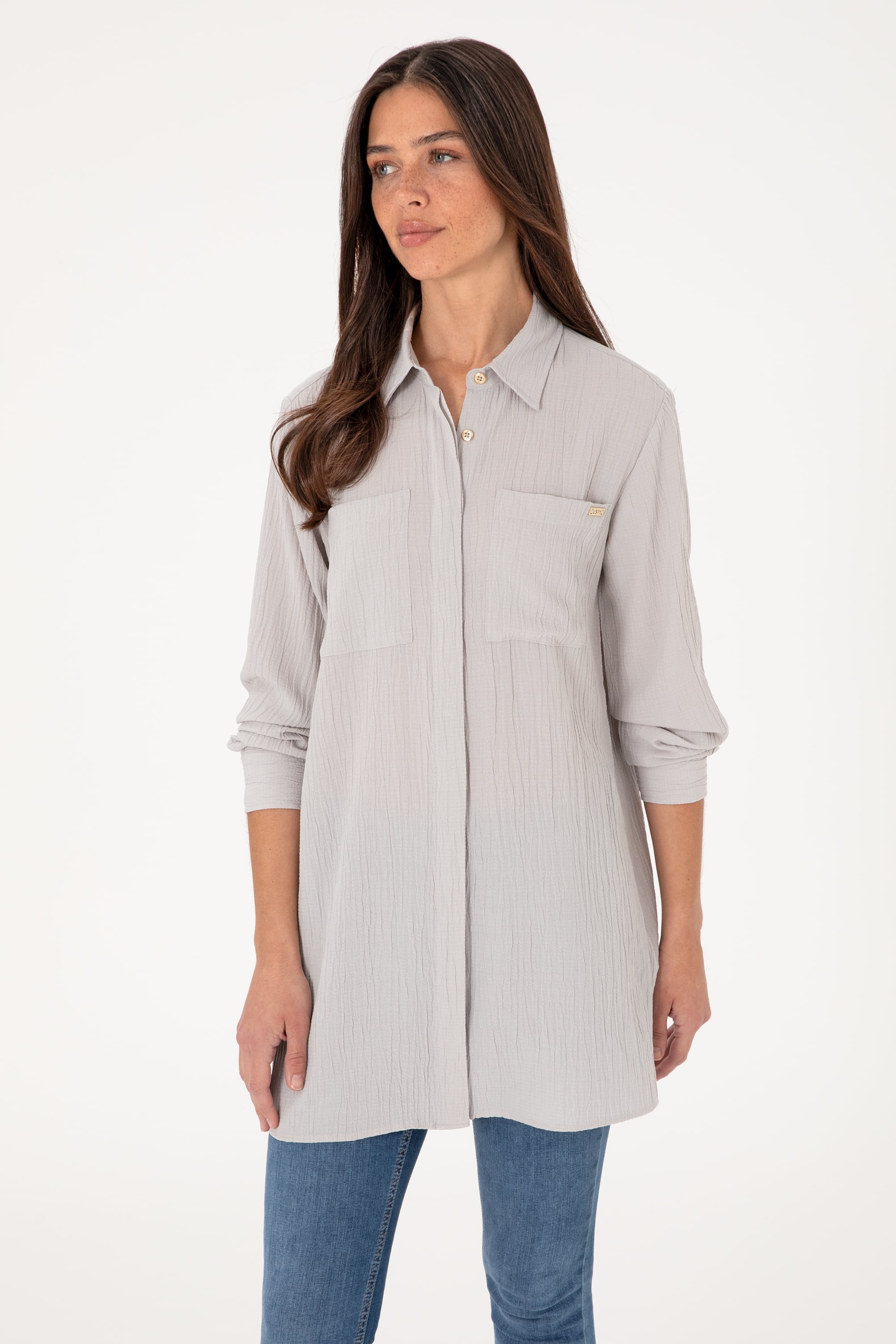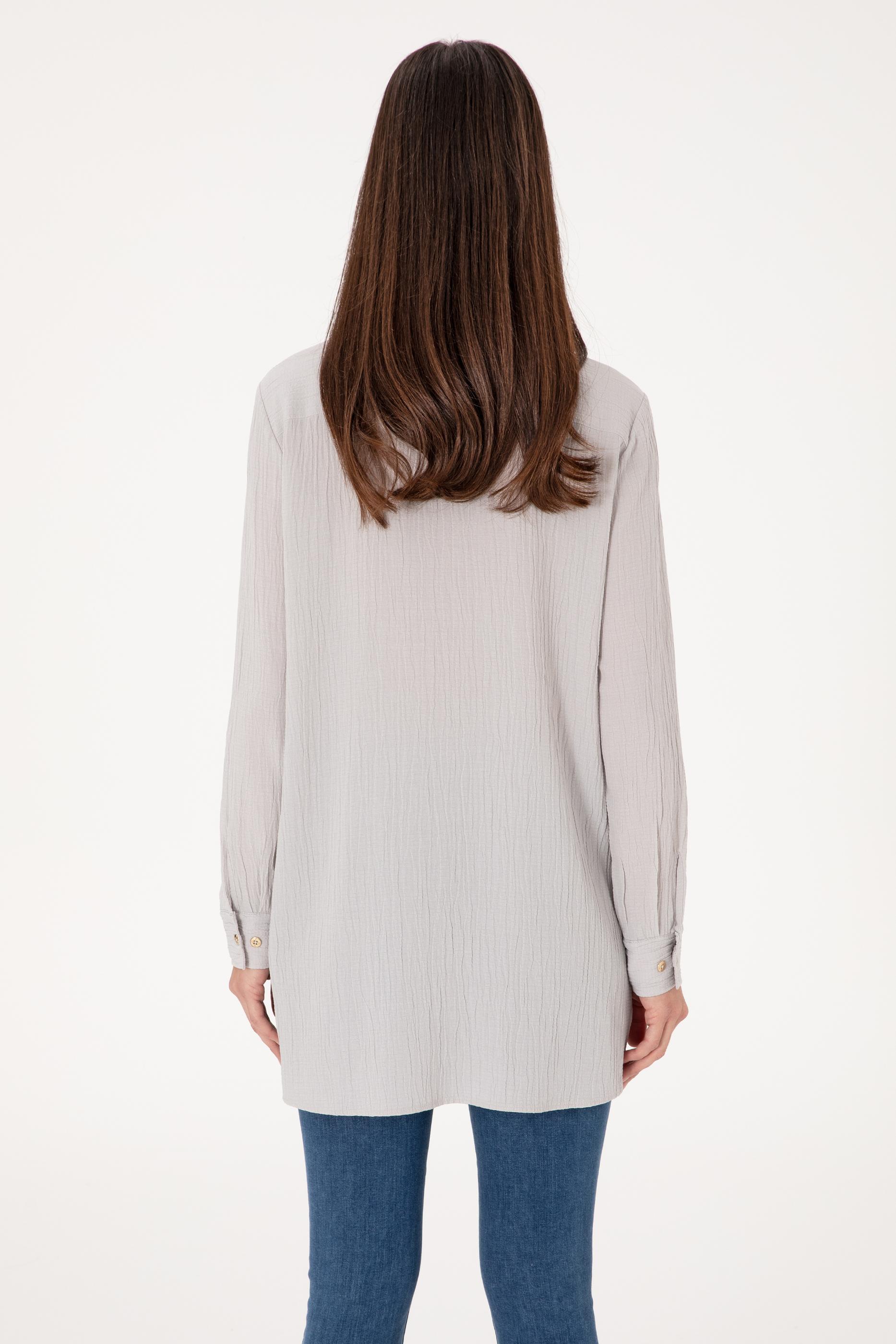 Kadın Açık Gri Uzun Kollu Tunik Gömlek