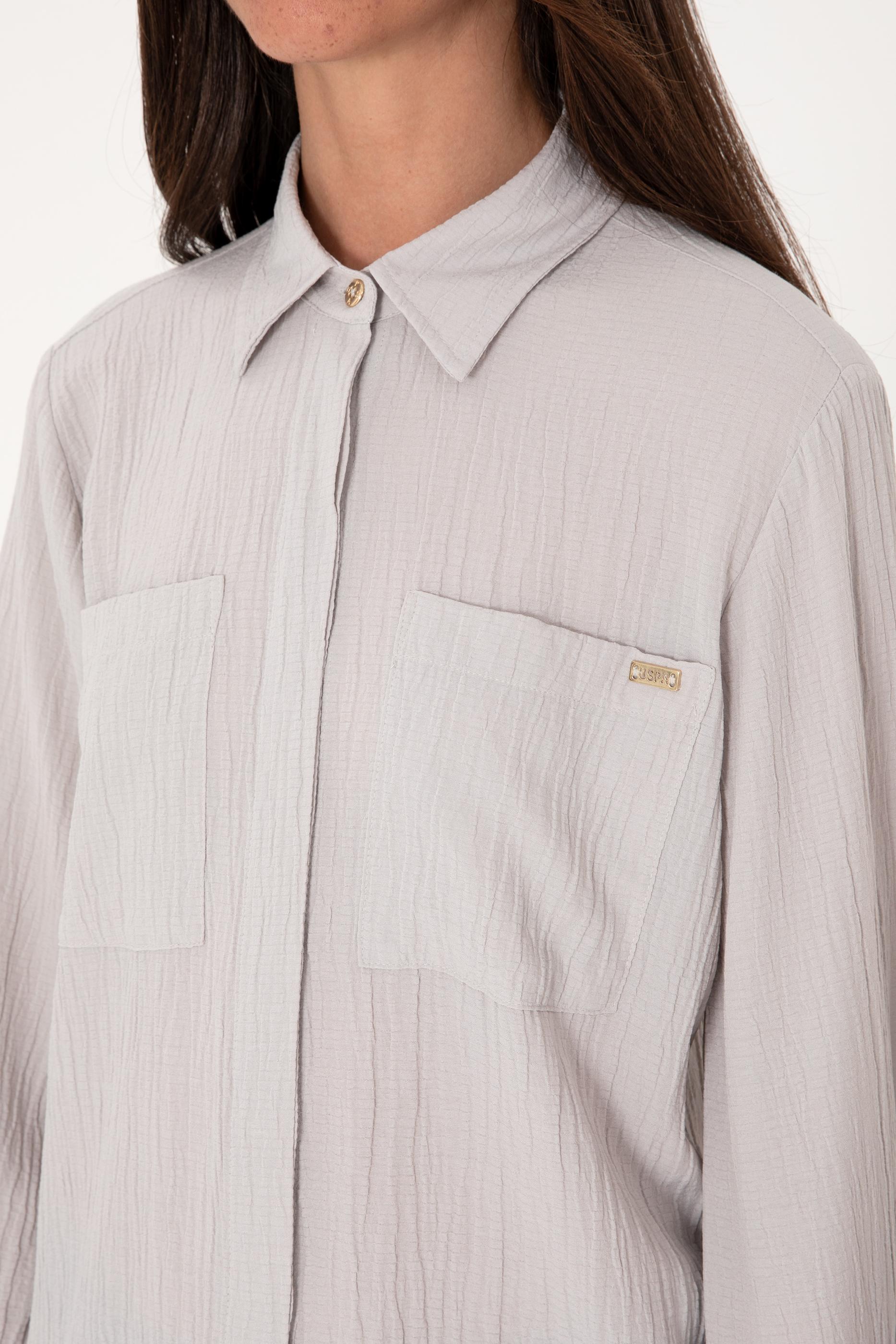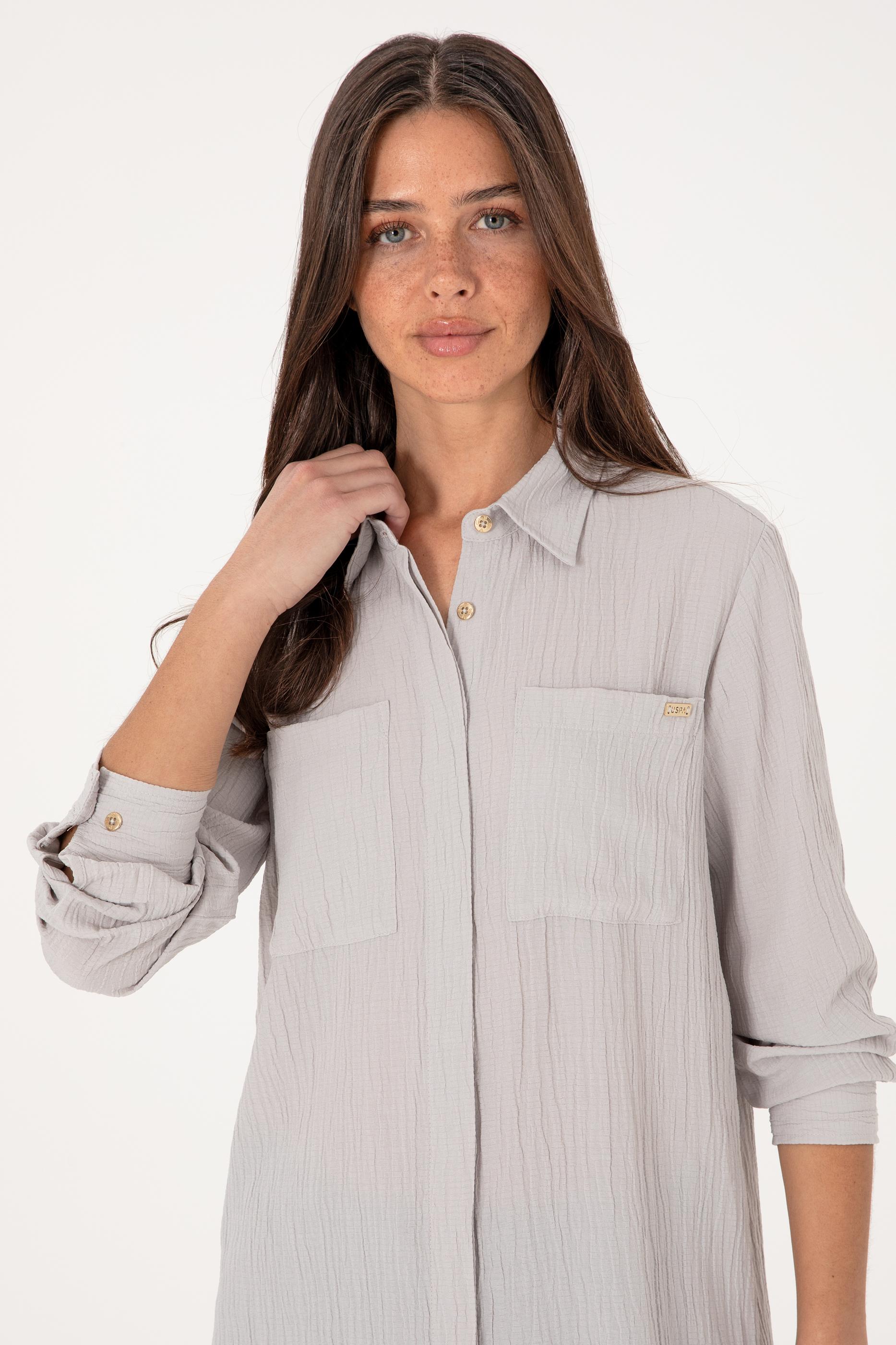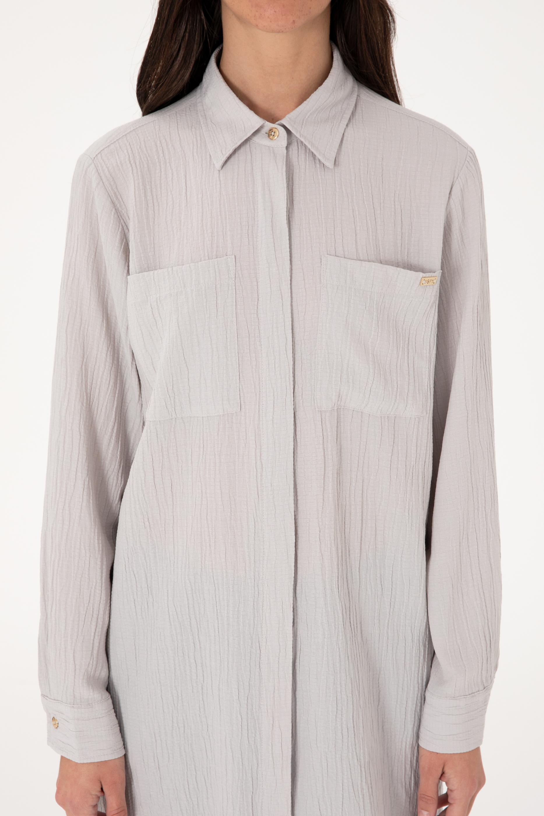 Kadın Açık Gri Uzun Kollu Tunik Gömlek
