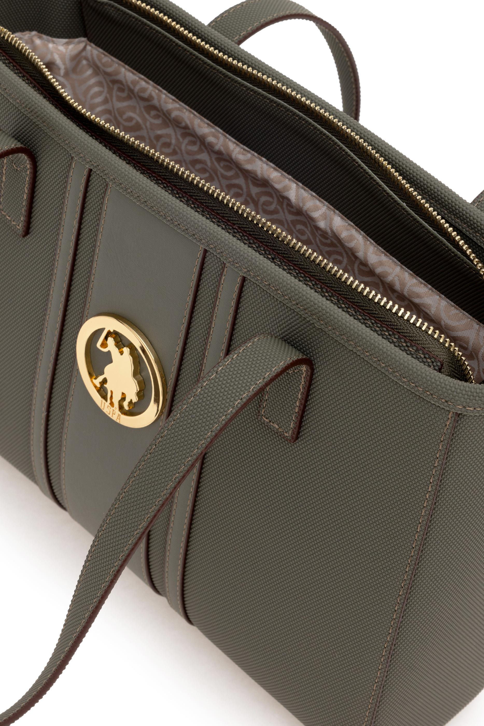 U.S. Polo Assn. haki kadın kol çantası, sade tasarımına modern ve sportif bir dokunuş katıyor. Yapılandırılmış formu sayesinde her zaman düzenli bir görünüm sunarken, geniş iç hacmi günlük eşyalarınızı kolayca taşımanıza imkân tanır. Çift saplı omuz yapısı konforlu kullanım sağlarken, mat yüzey üzerinde yer alan altın tonlu logo rozeti çantanın zarif duruşunu tamamlar.ofis stilinden hafta sonu kombinlerine kadar her ortama zahmetsizce uyum sağlar.