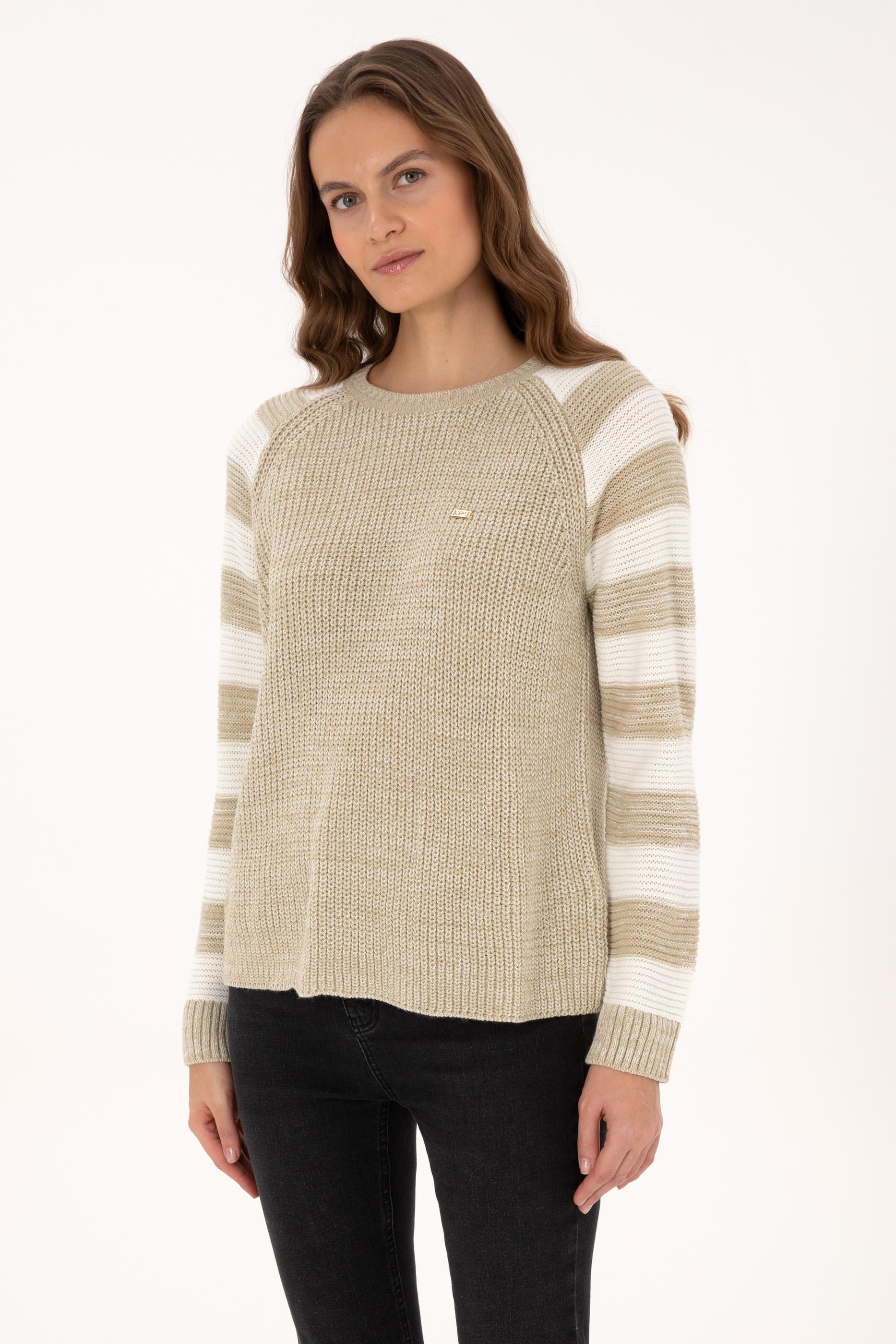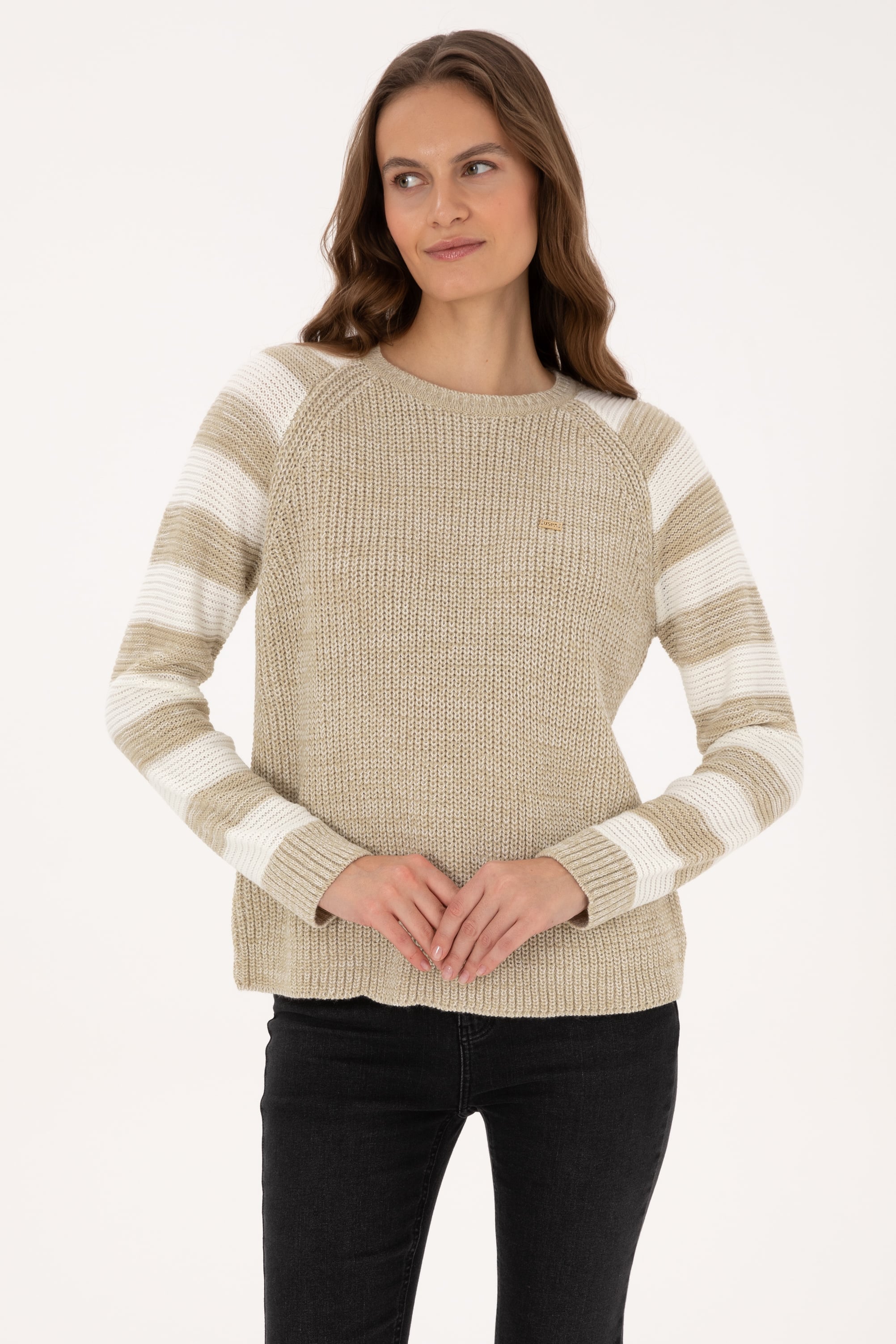 Kadın Açık Haki Bisiklet Yaka Kazak