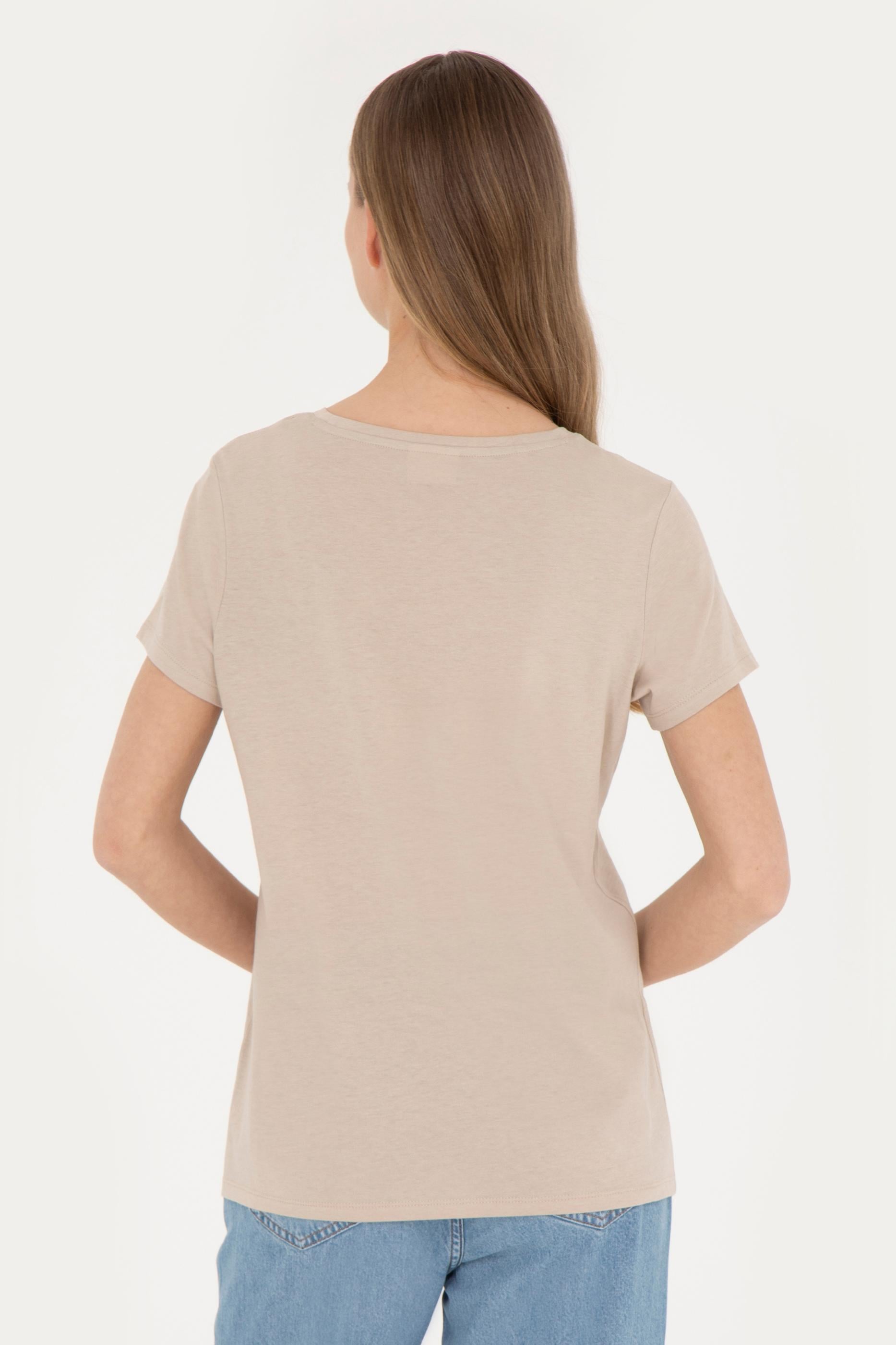 Kadın Açık Haki Bisiklet Yaka Tişört
