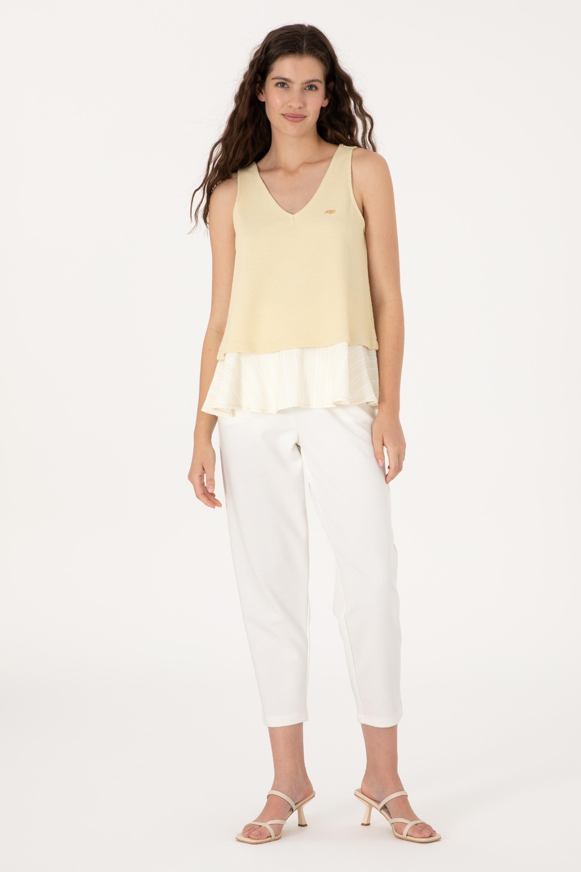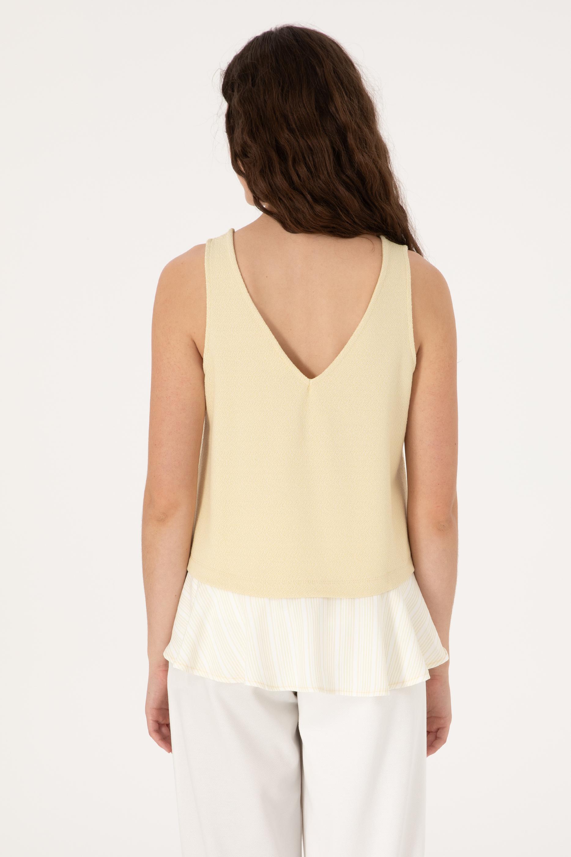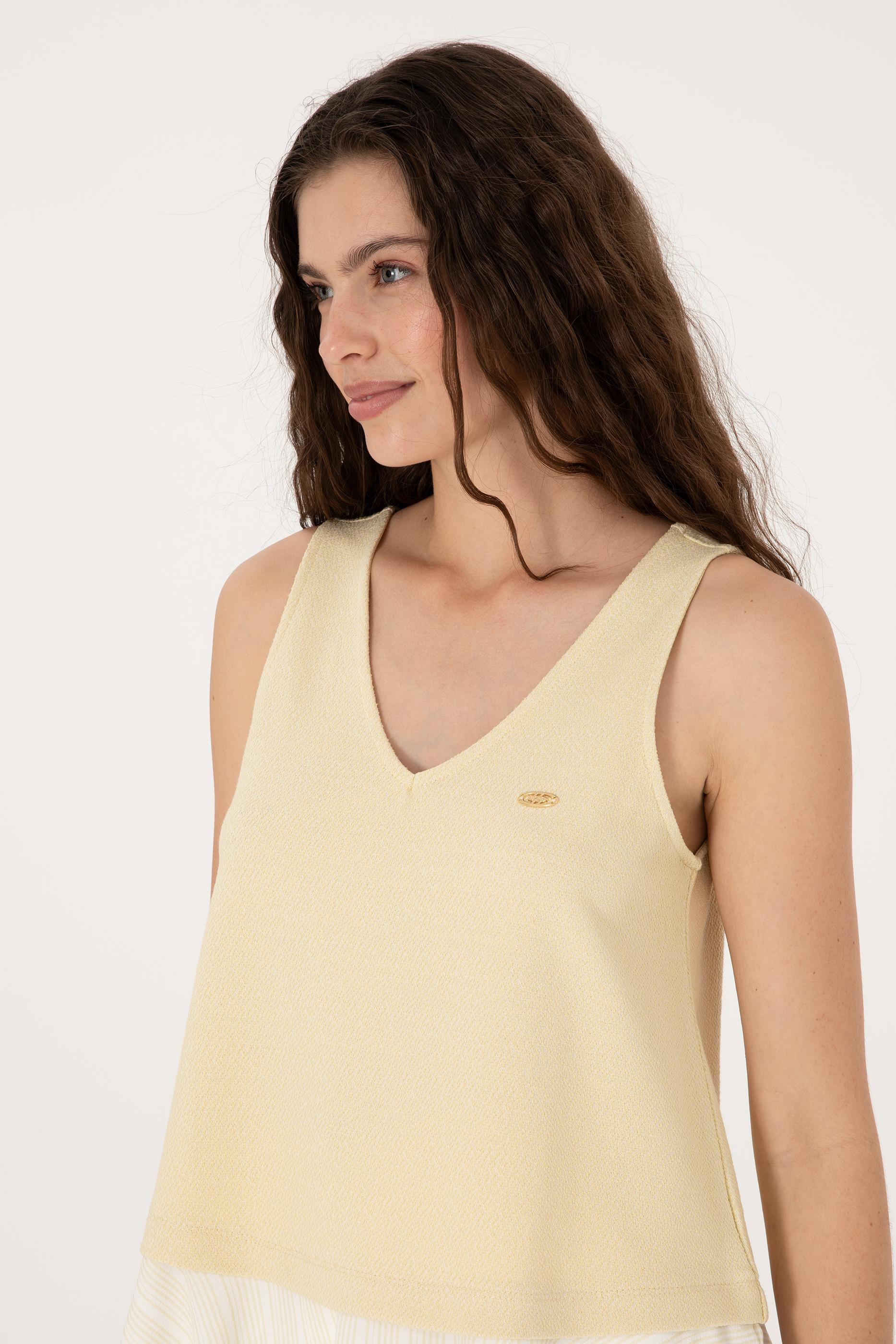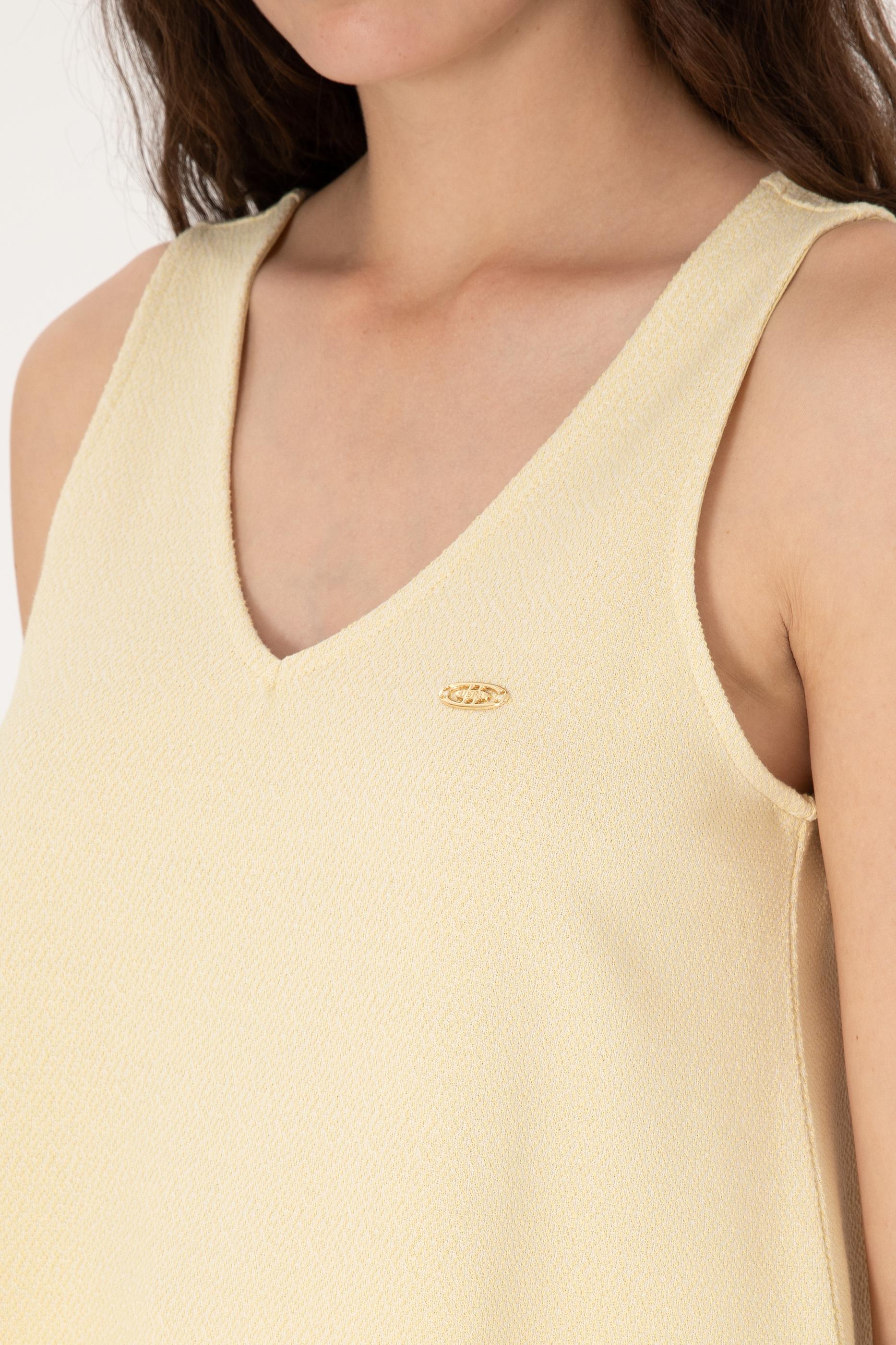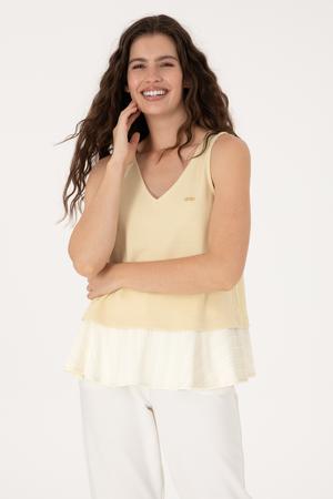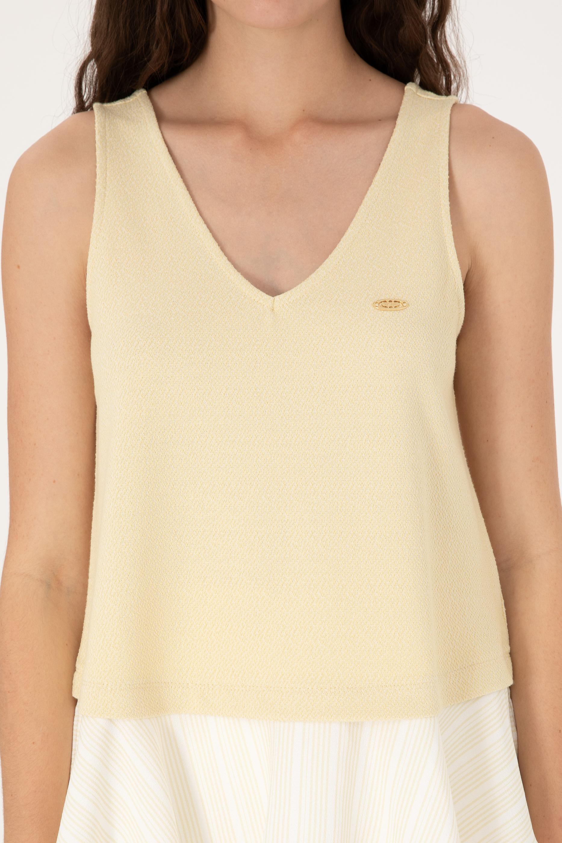 Kadın Açık Haki Kolsuz V Yaka Tişört