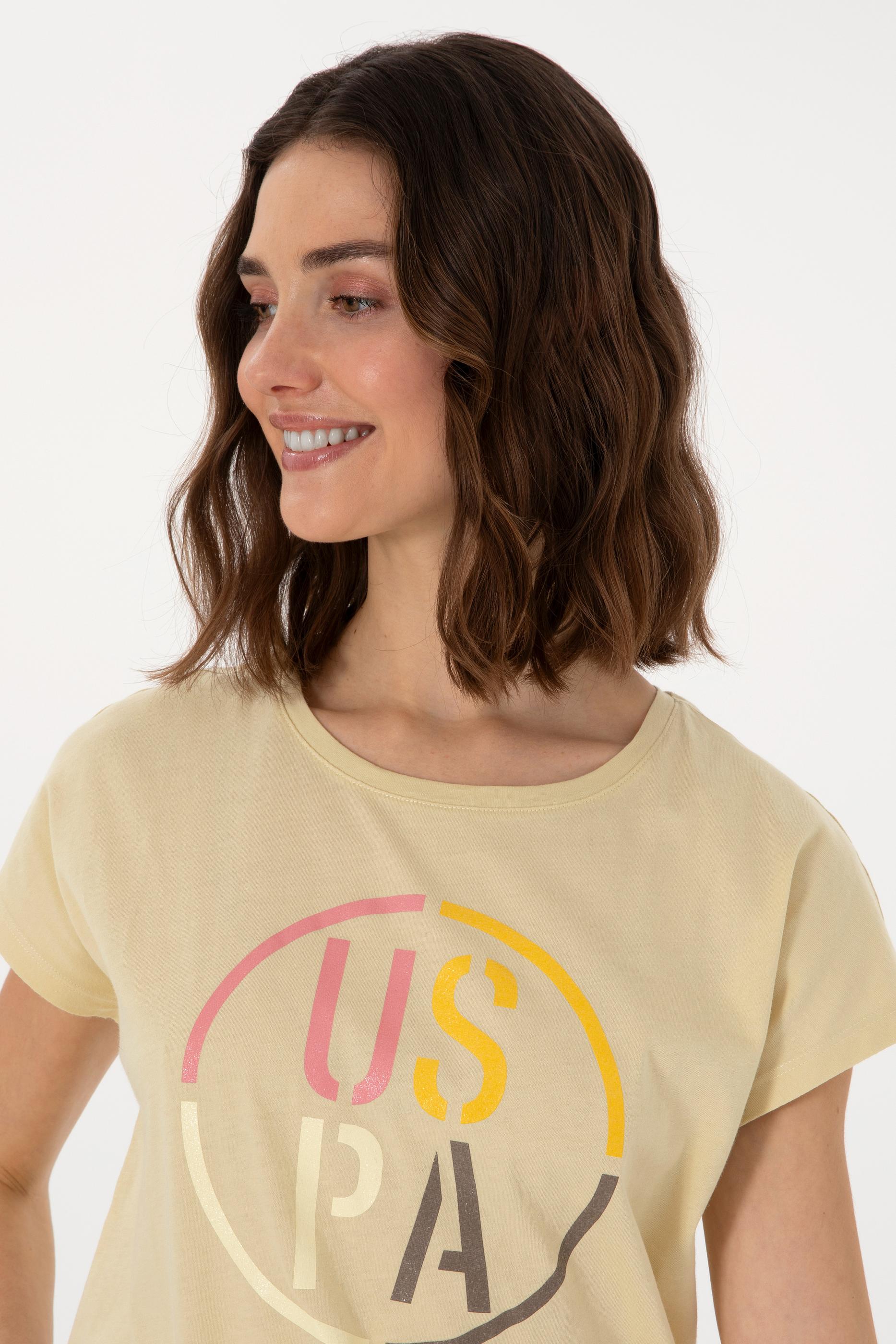 Kadın Açık Haki Bisiklet Yaka Tişört
