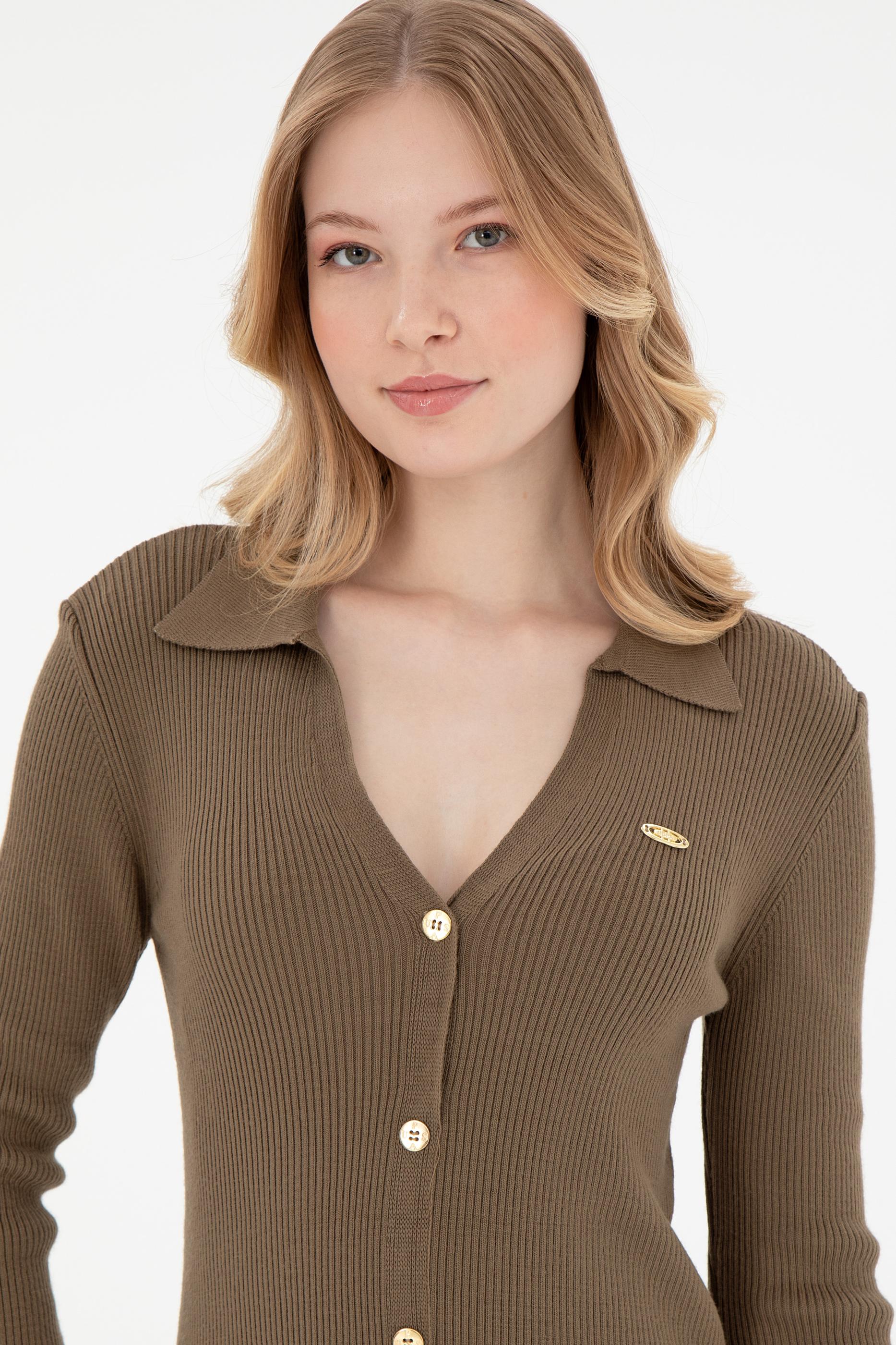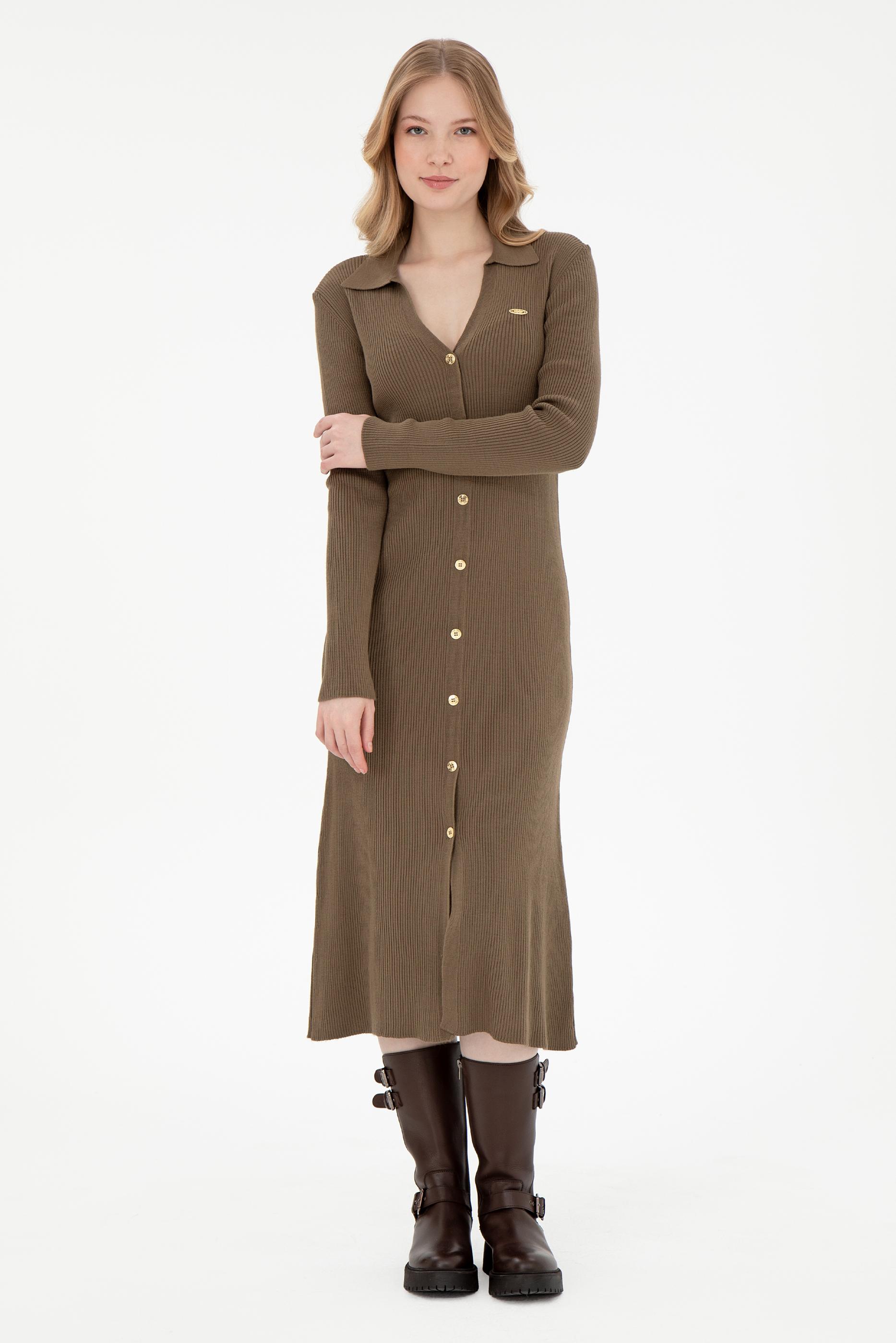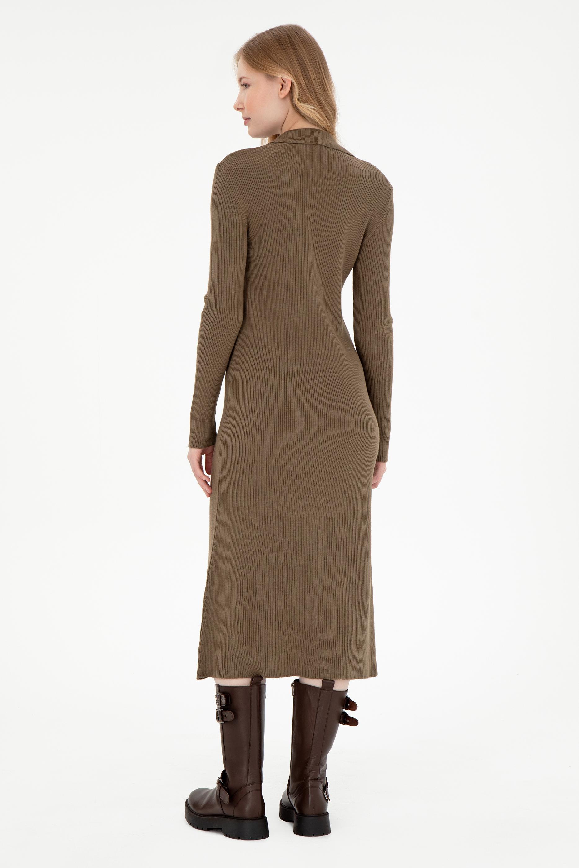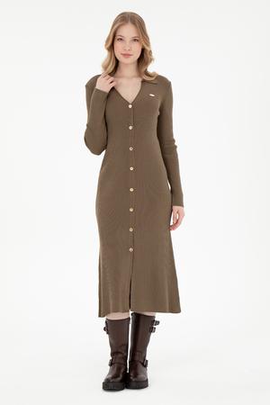 Kadın Açık Haki Midi Boy Triko Elbise