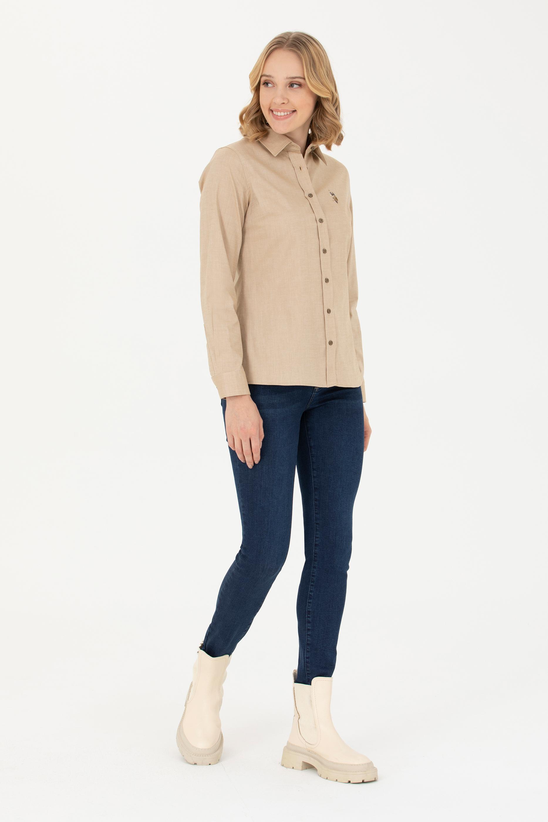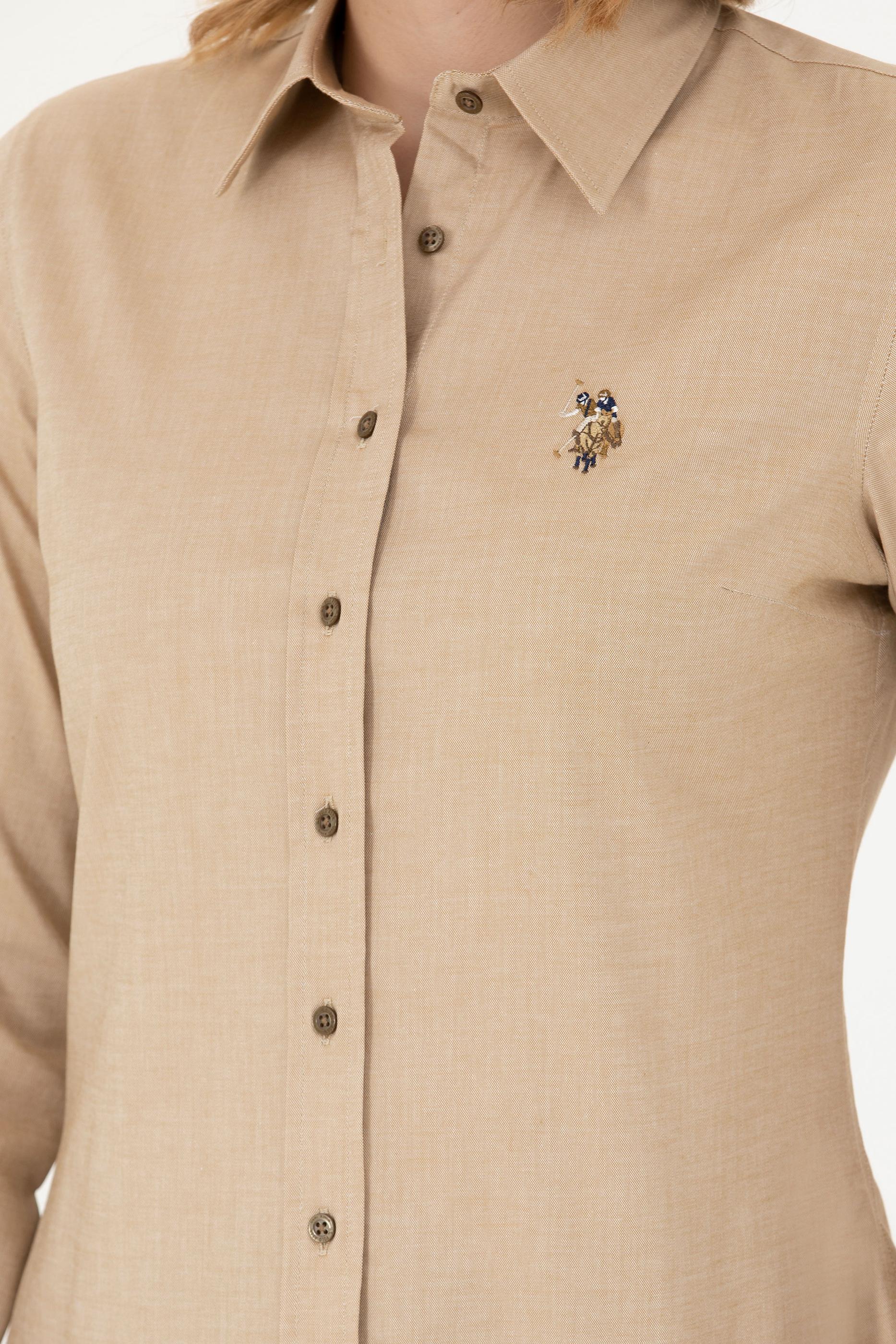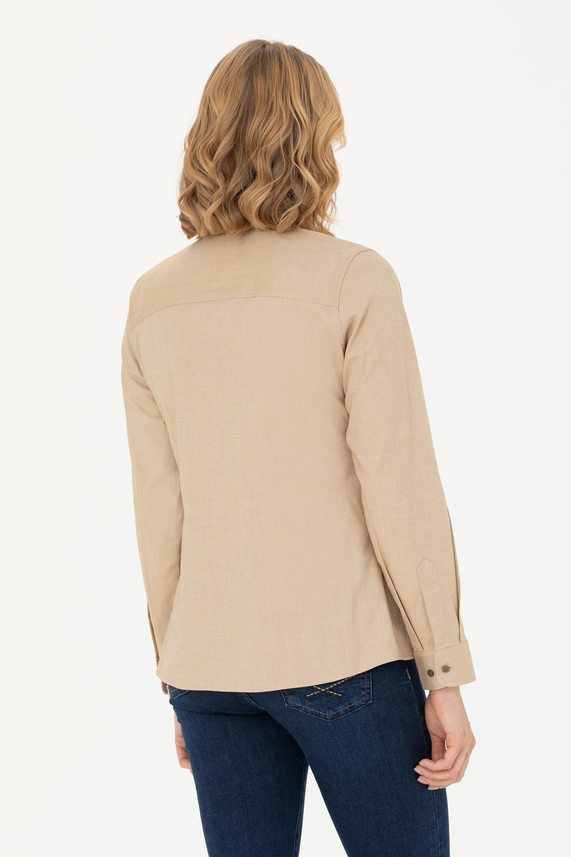 Kadın Açık Haki Uzun Kollu Basic Gömlek