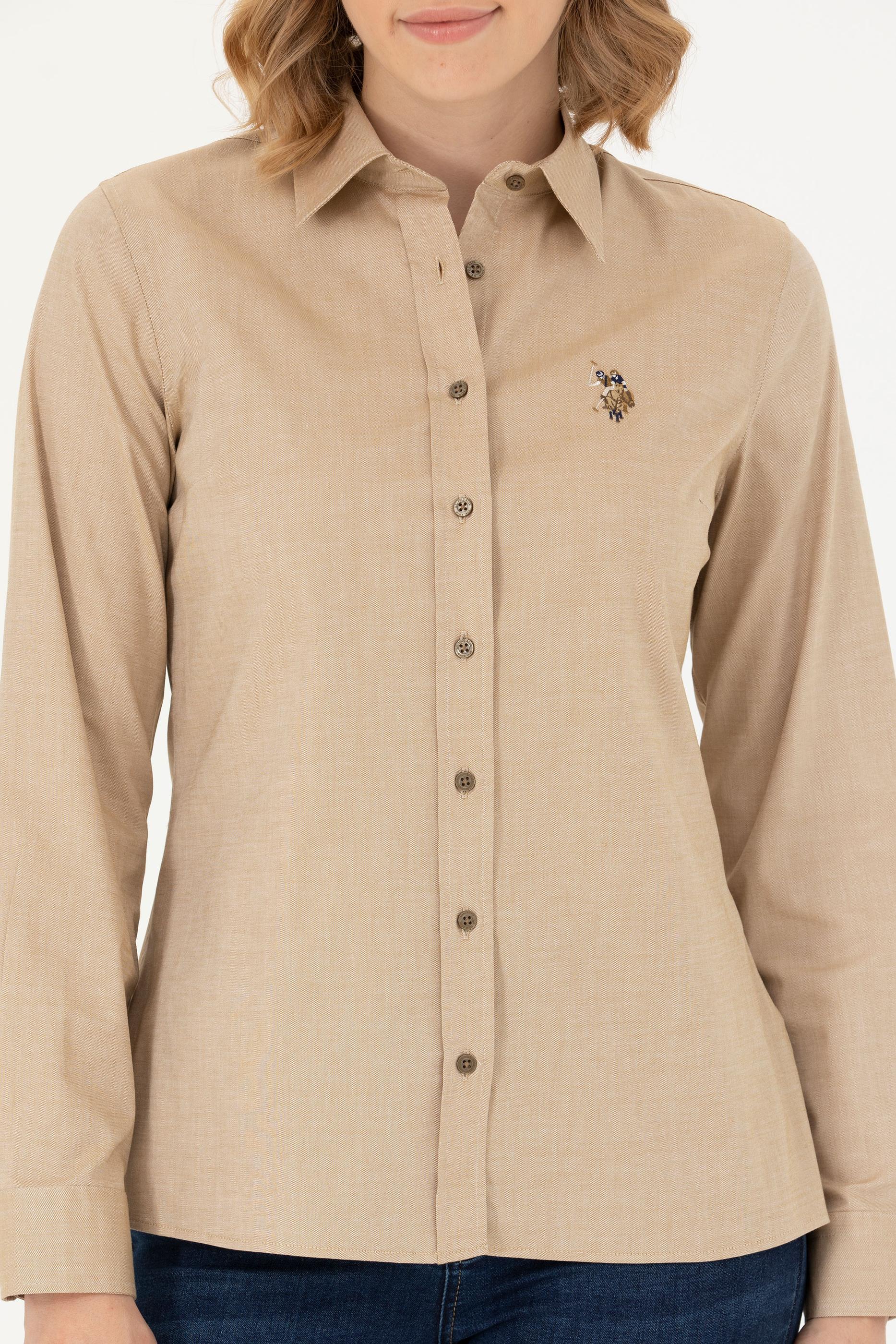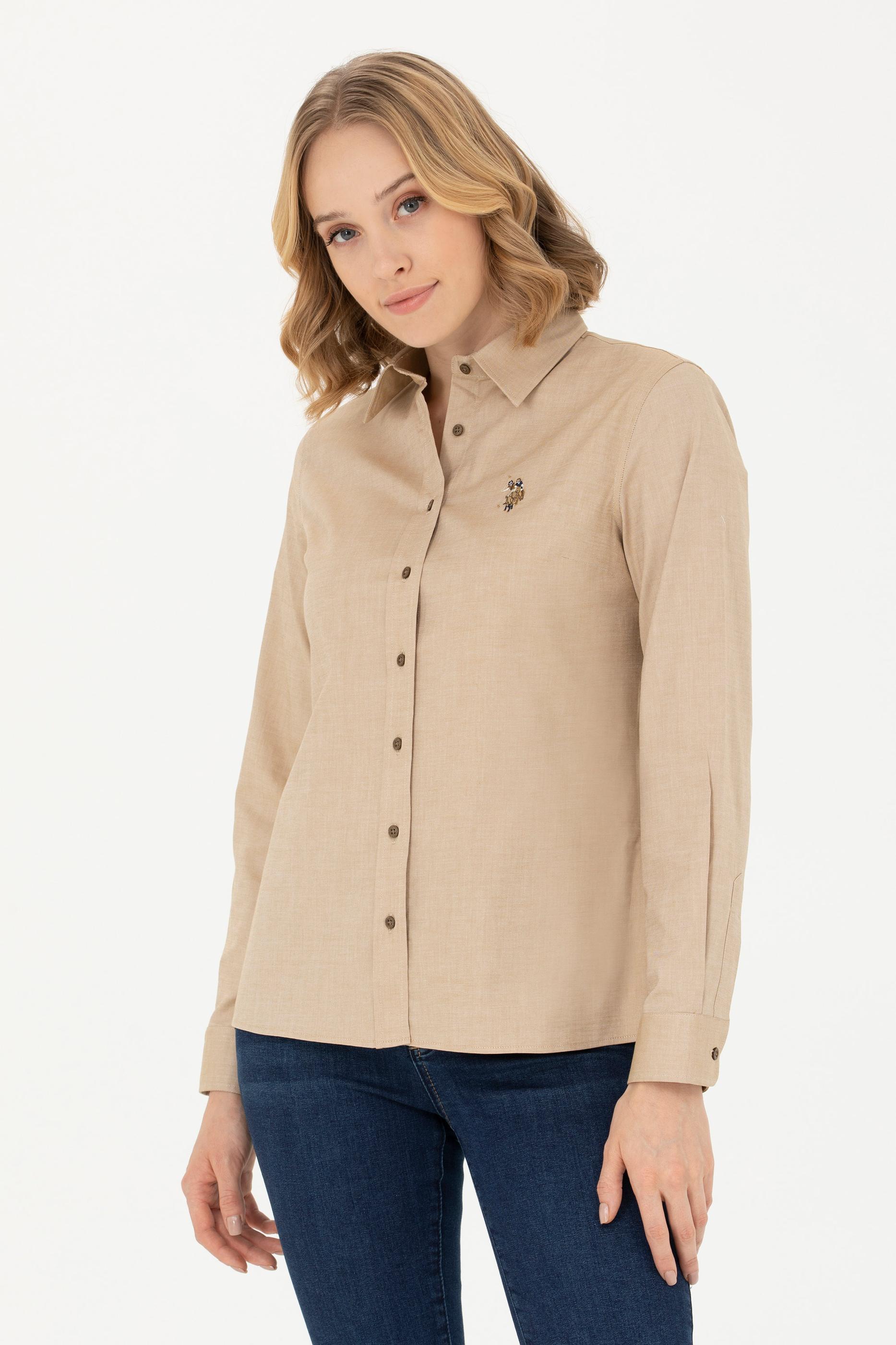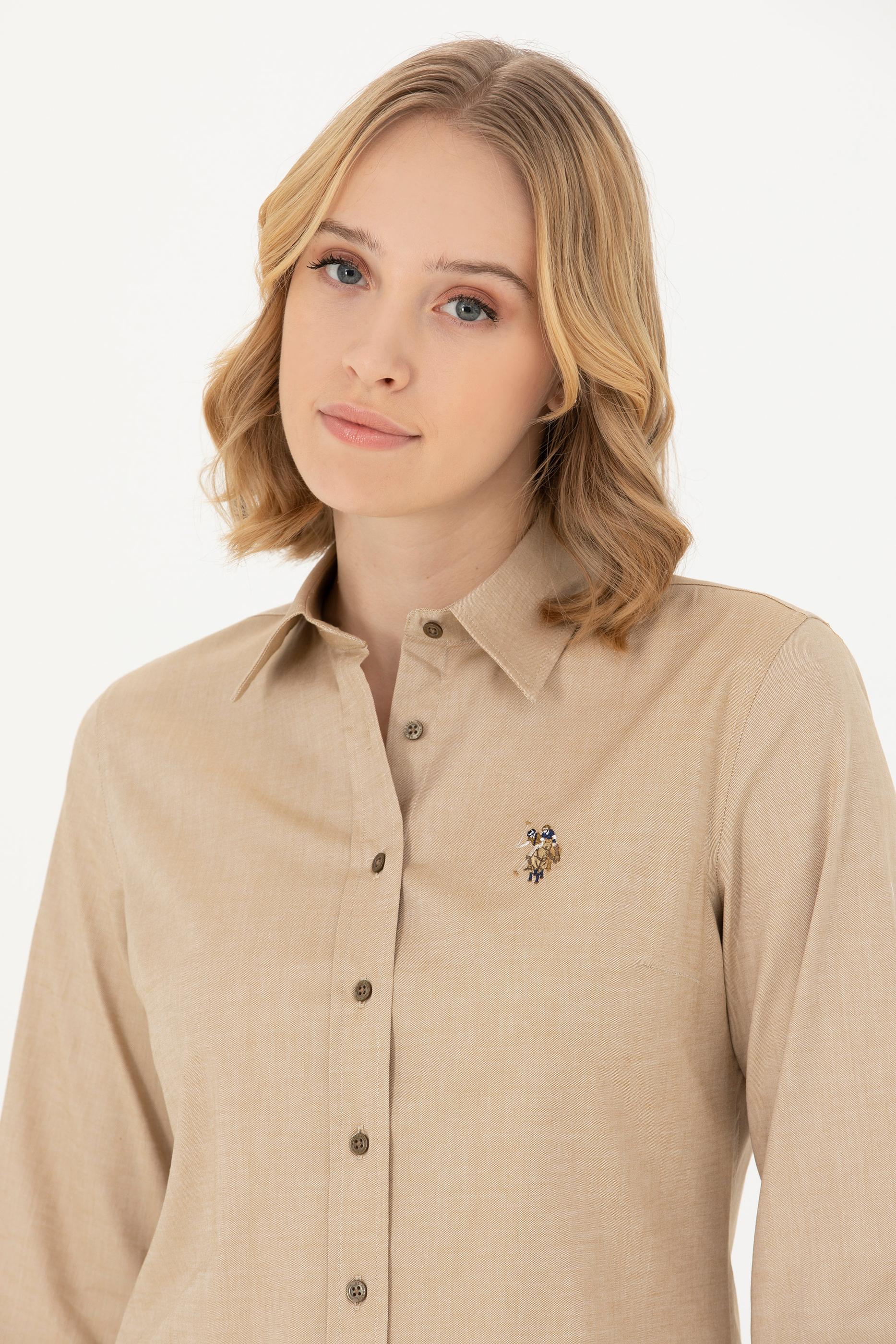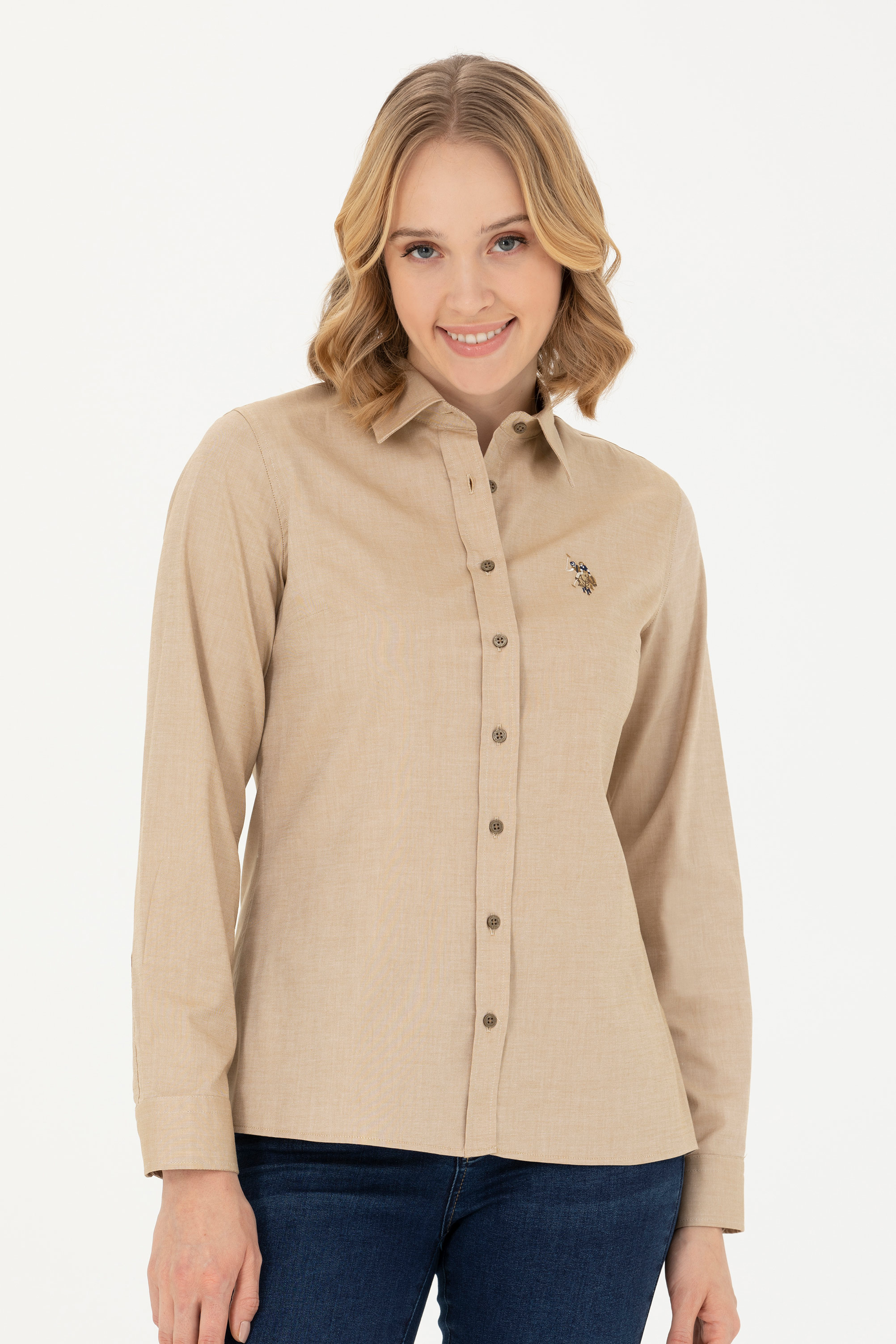Kadın Açık Haki Uzun Kollu Basic Gömlek