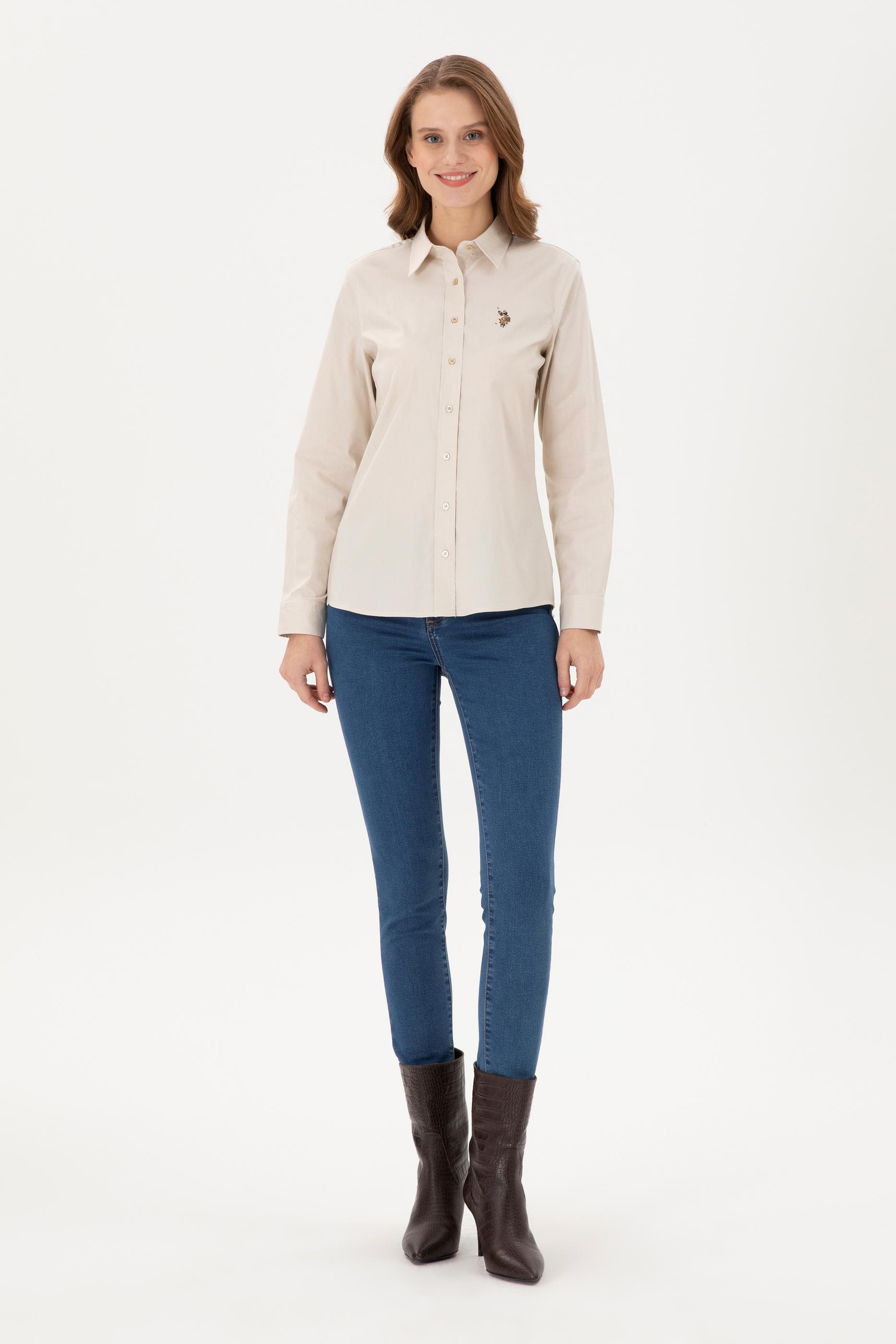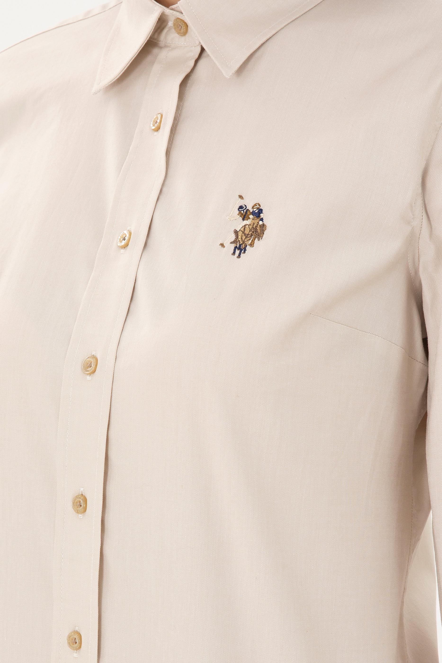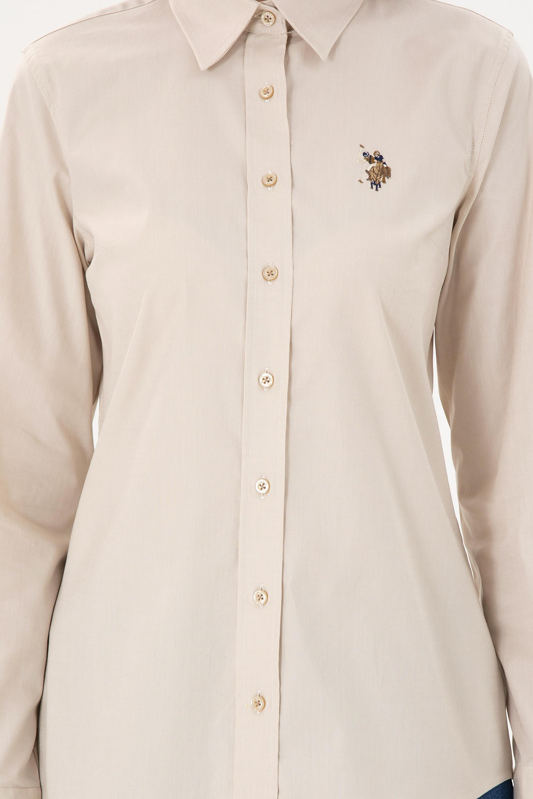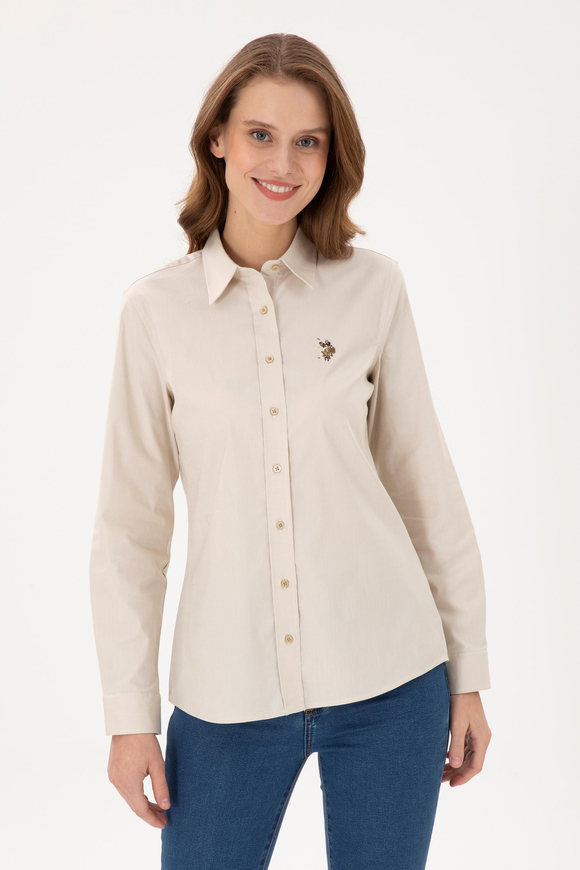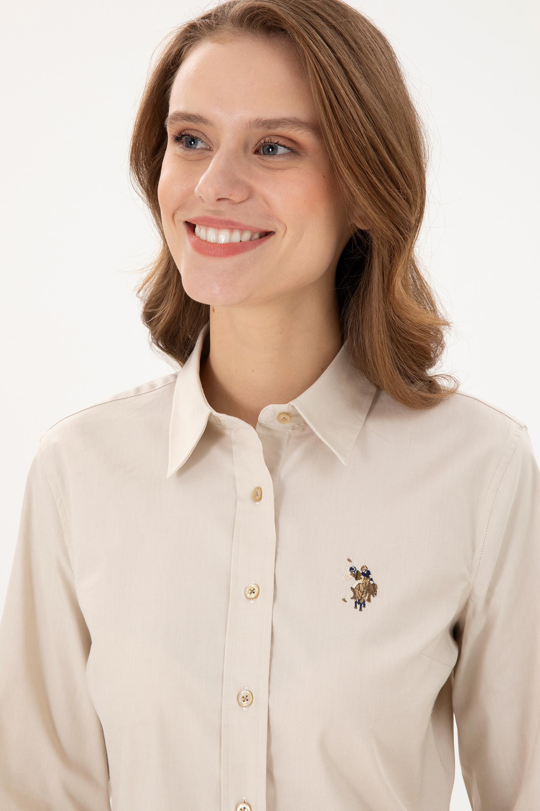 Kadın Açık Haki Uzun Kollu Basic Gömlek