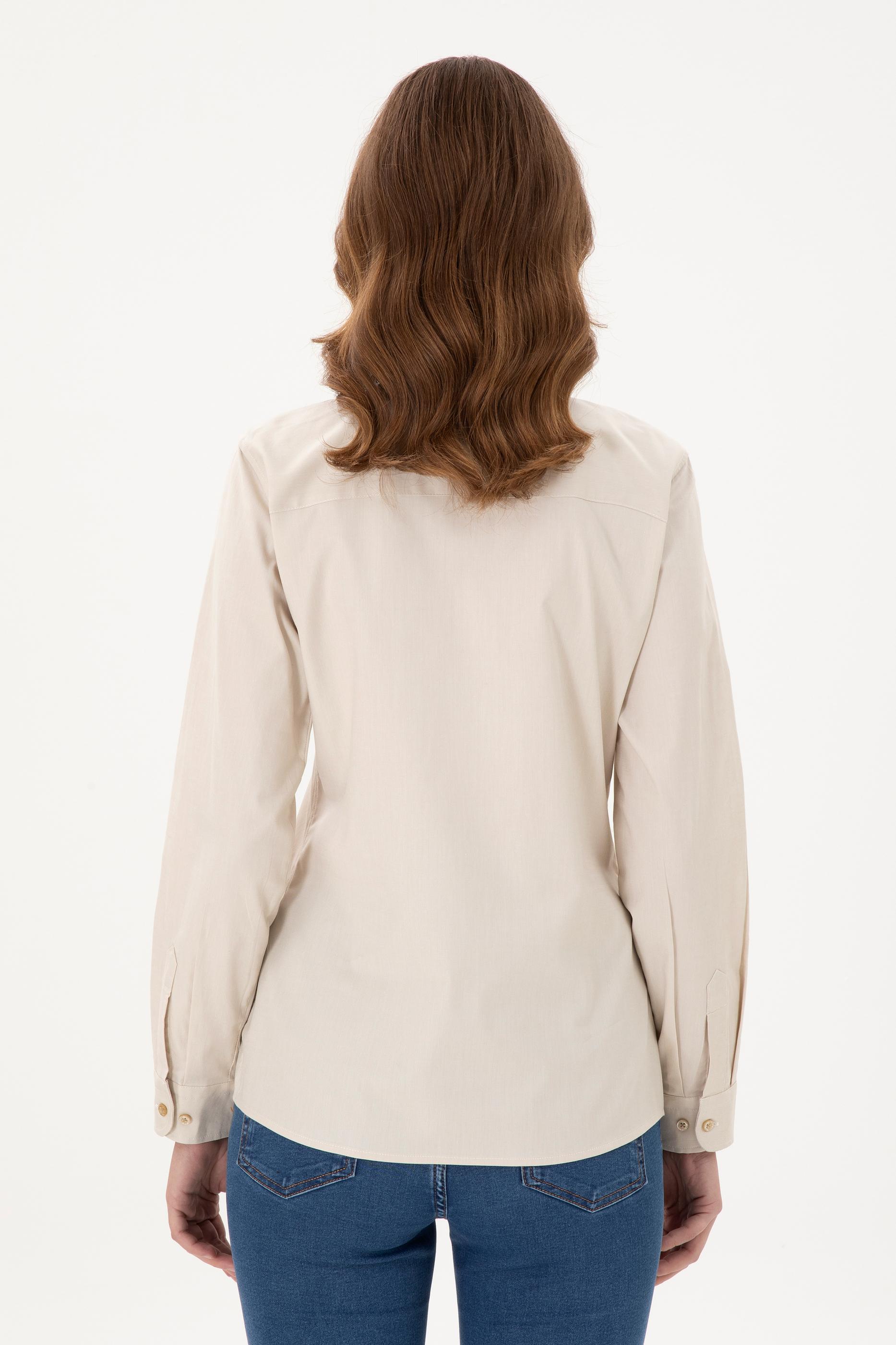 Kadın Açık Haki Uzun Kollu Basic Gömlek - 50295710062