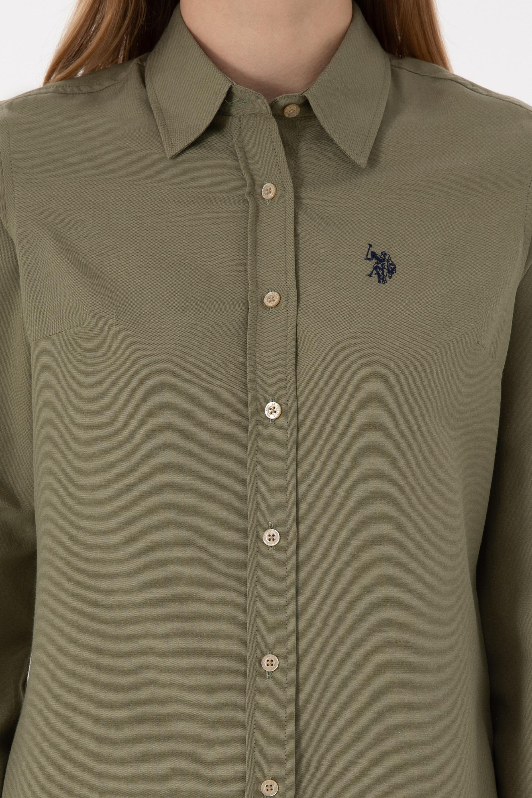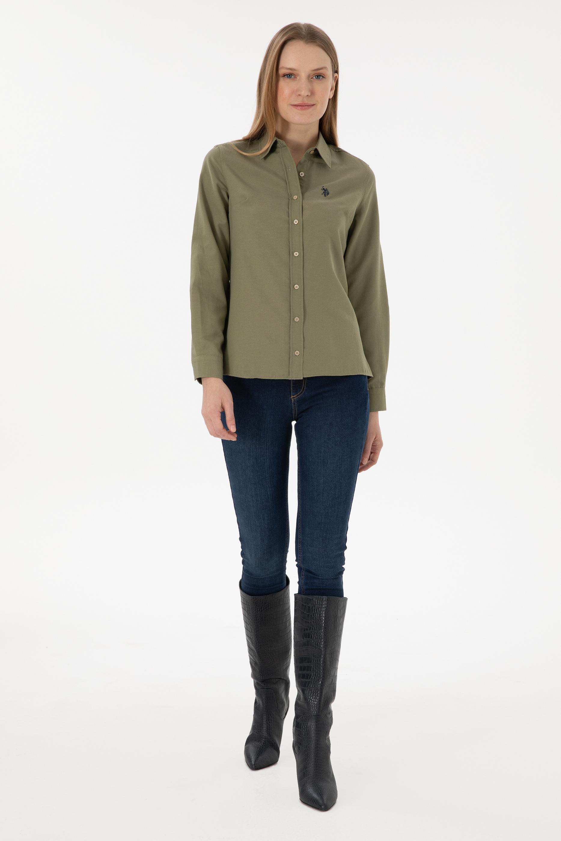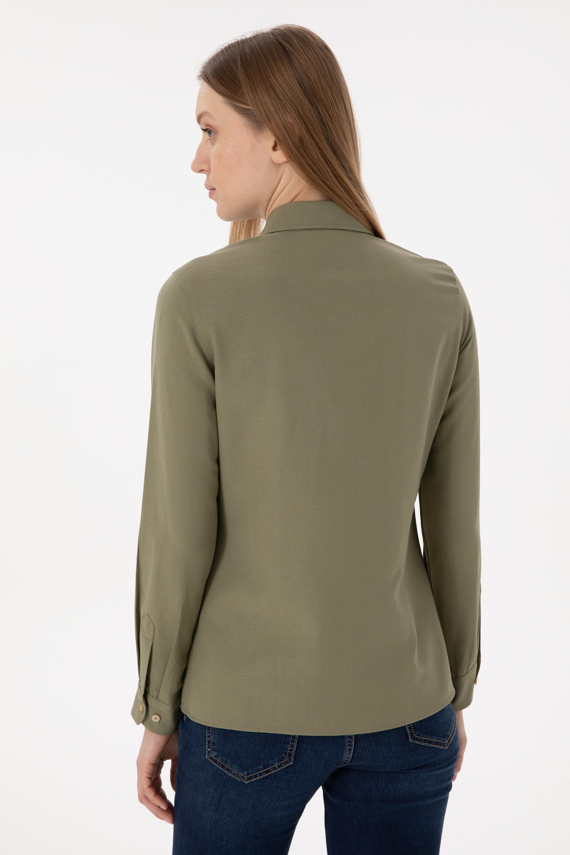 Kadın Açık Haki Uzun Kollu Basic Gömlek