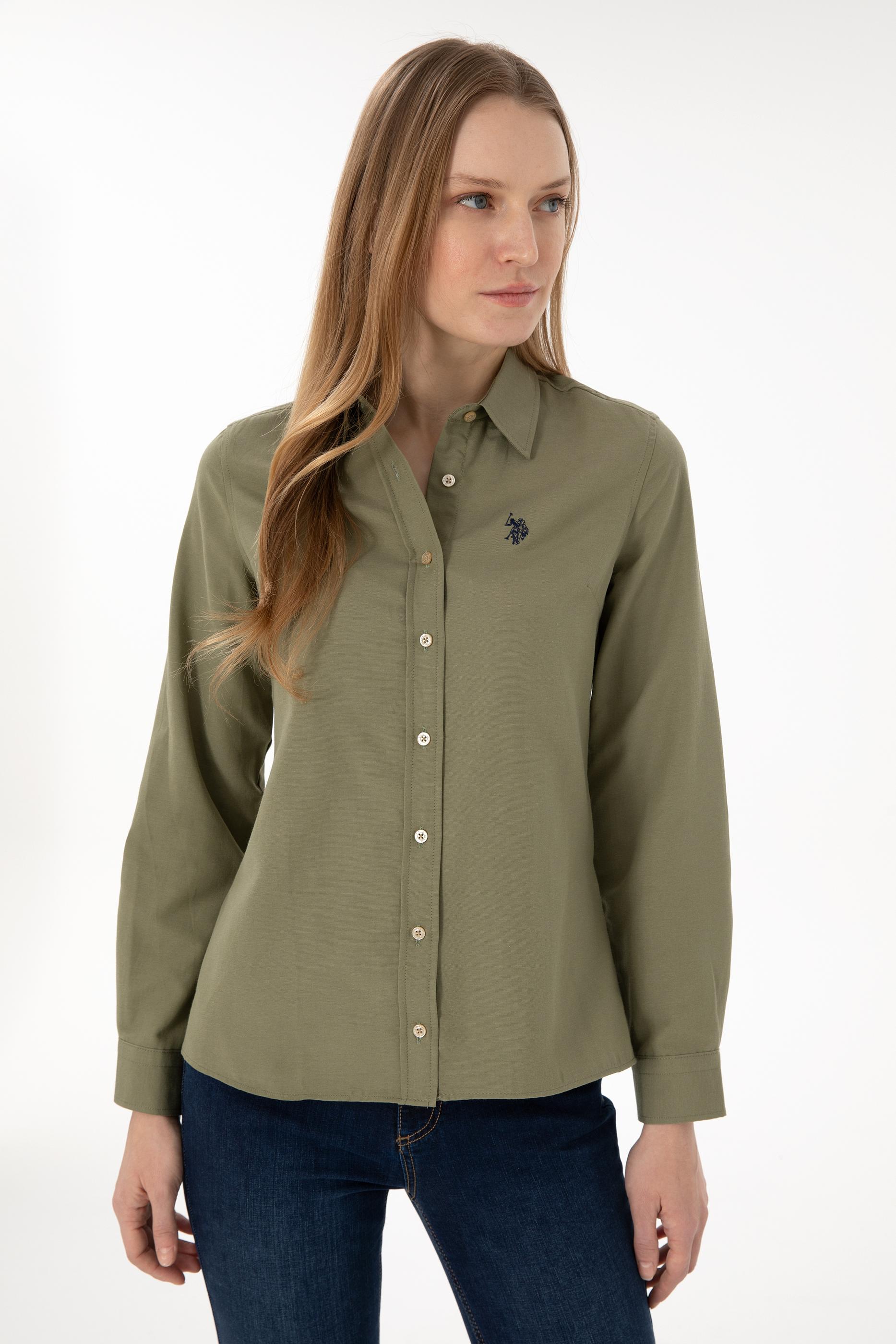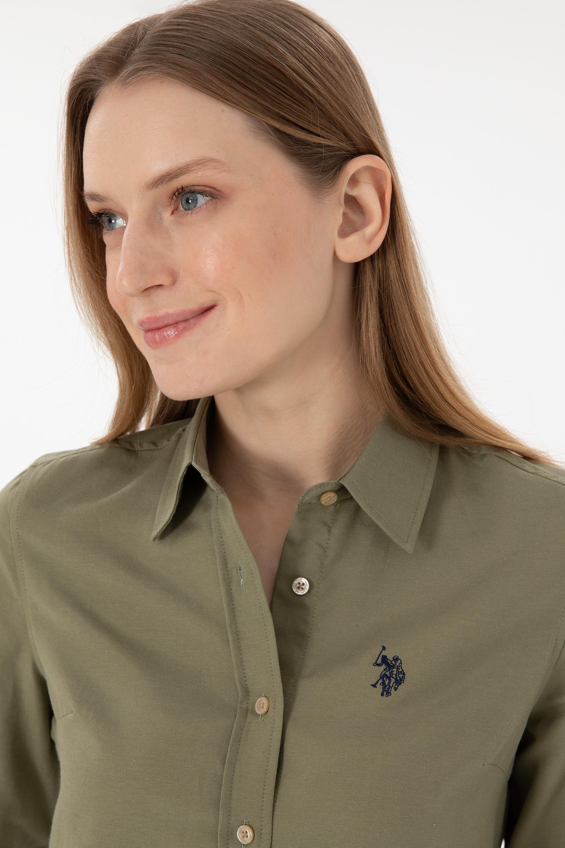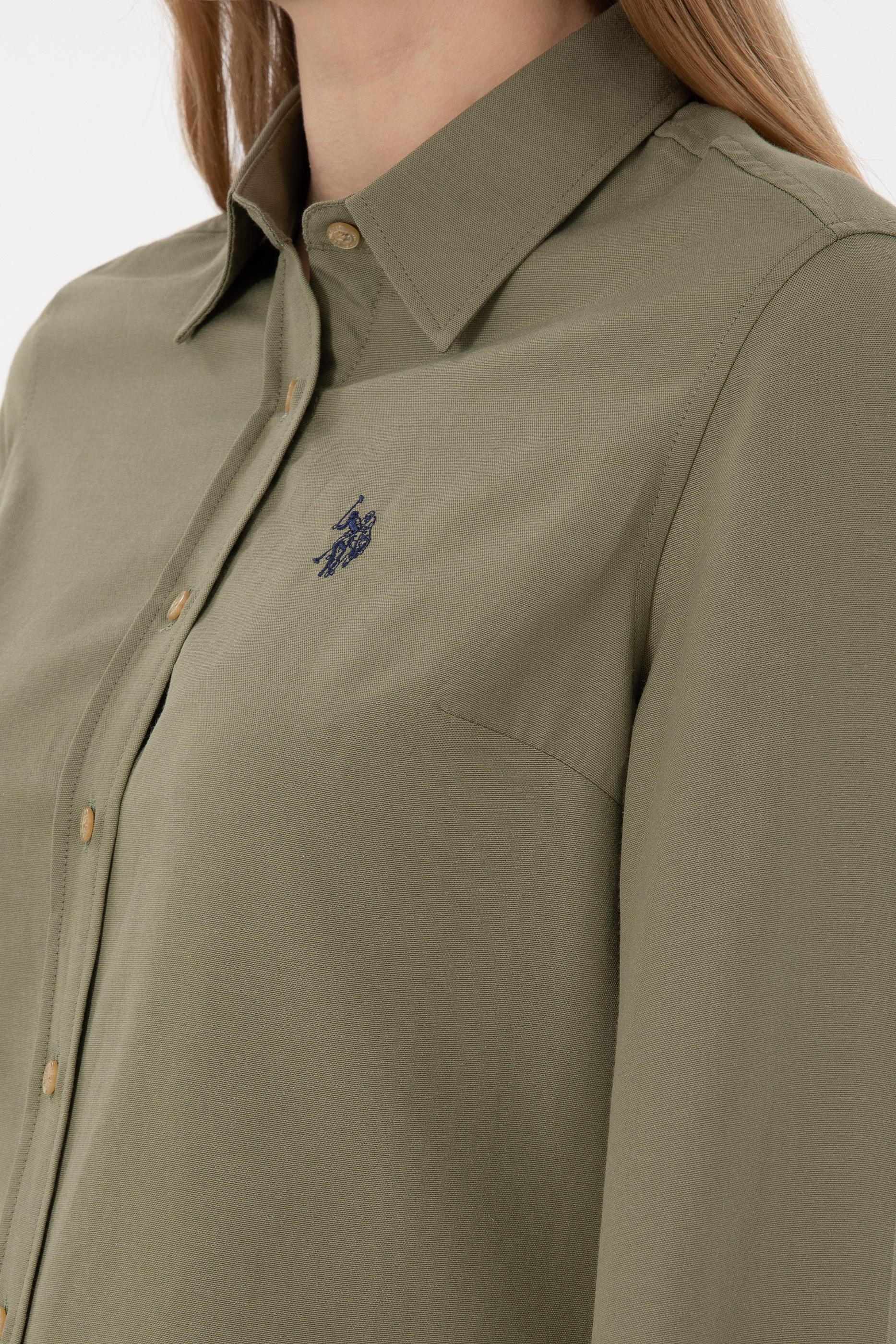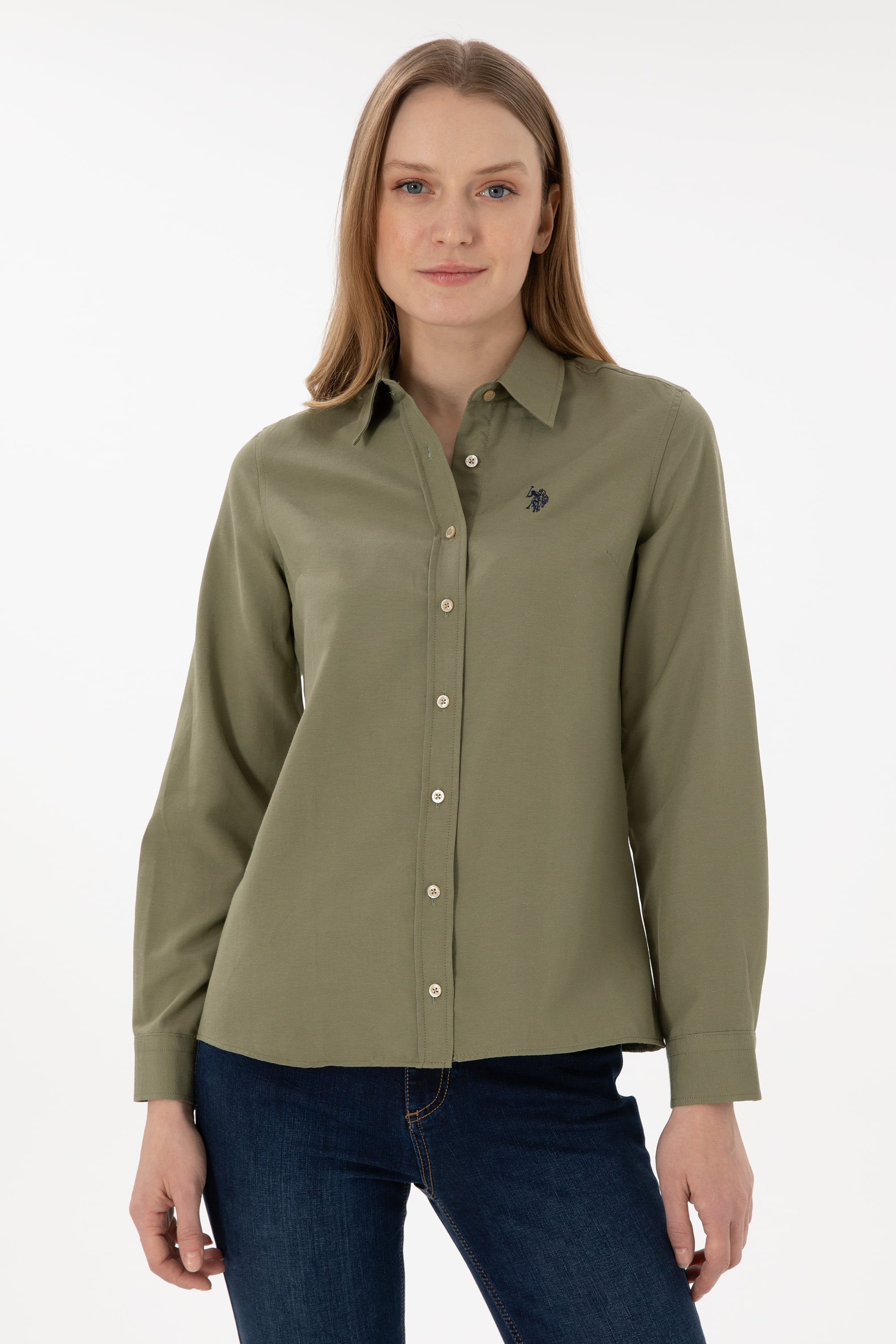 Kadın Açık Haki Uzun Kollu Basic Gömlek