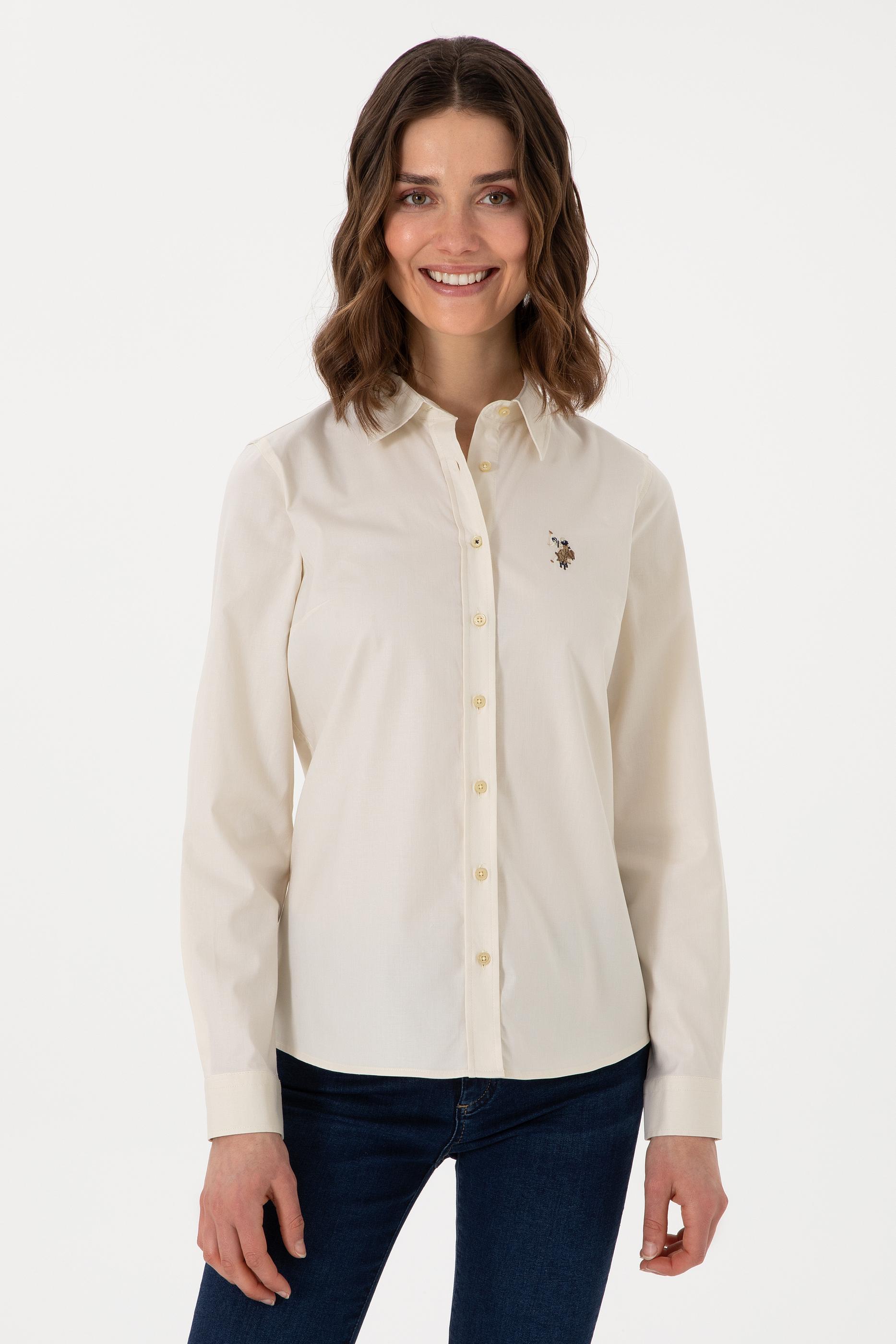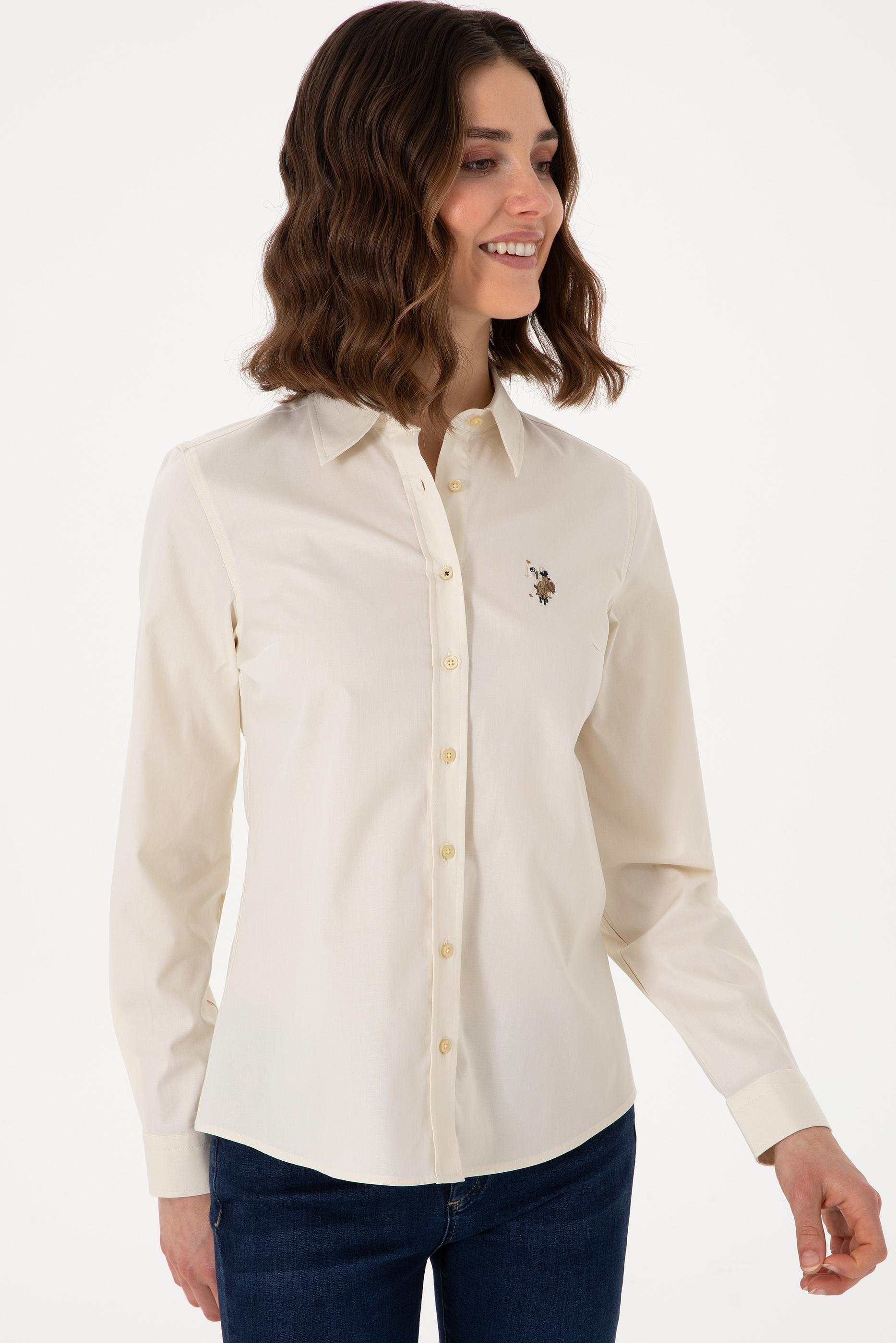 Kadın Açık Haki Uzun Kollu Basic Gömlek