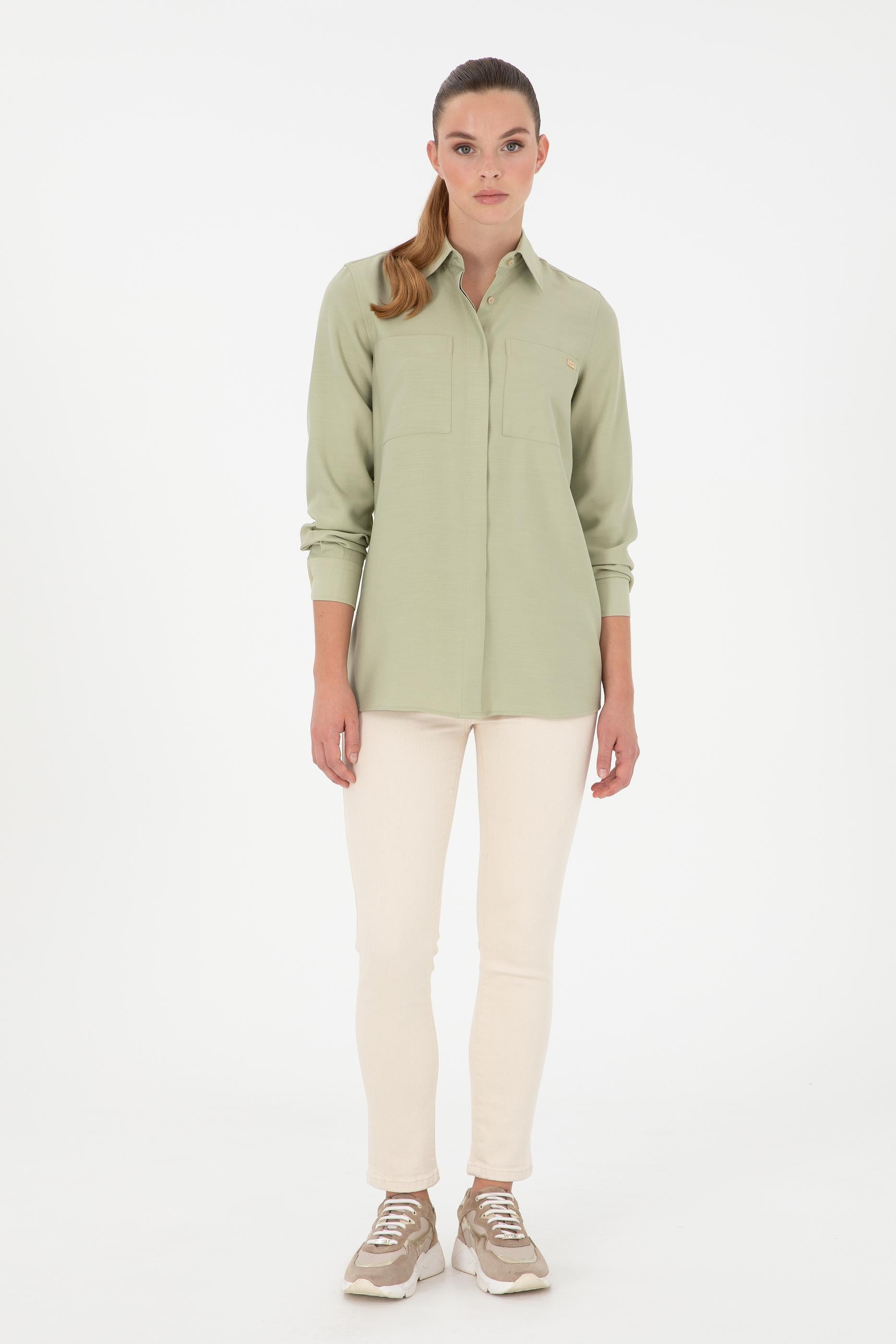 Kadın Açık Haki Uzun Kollu Tunik Gömlek - 50293568002