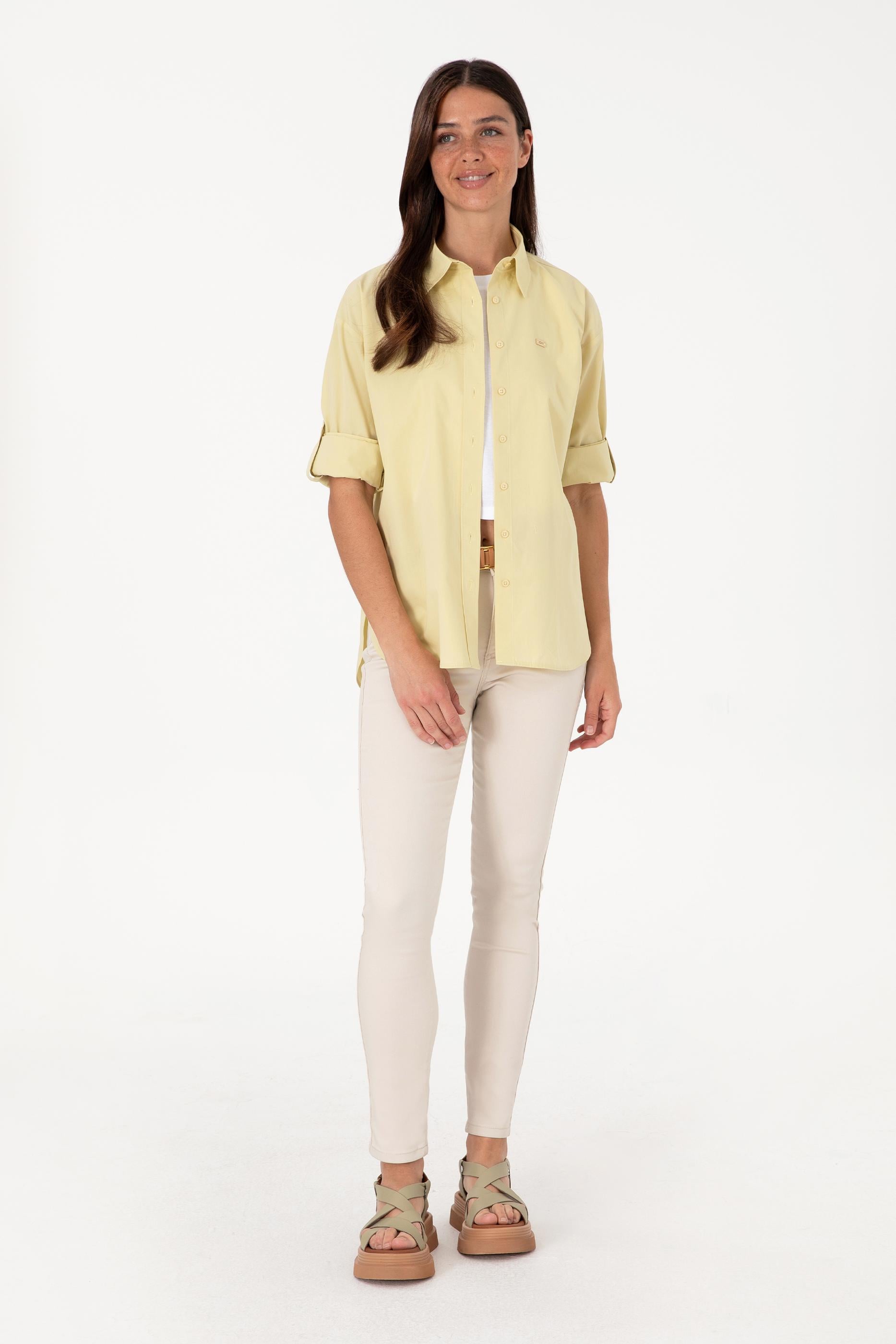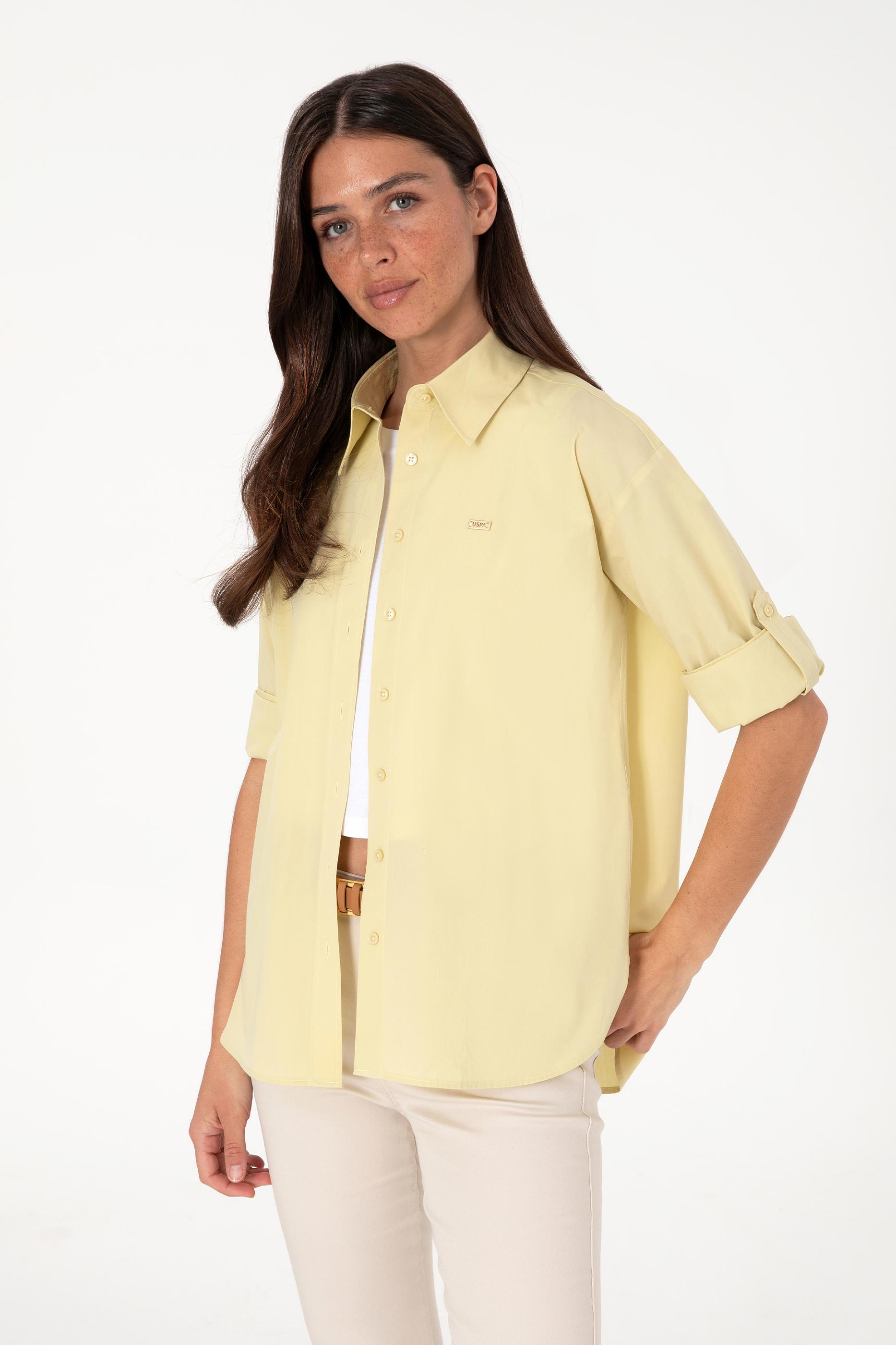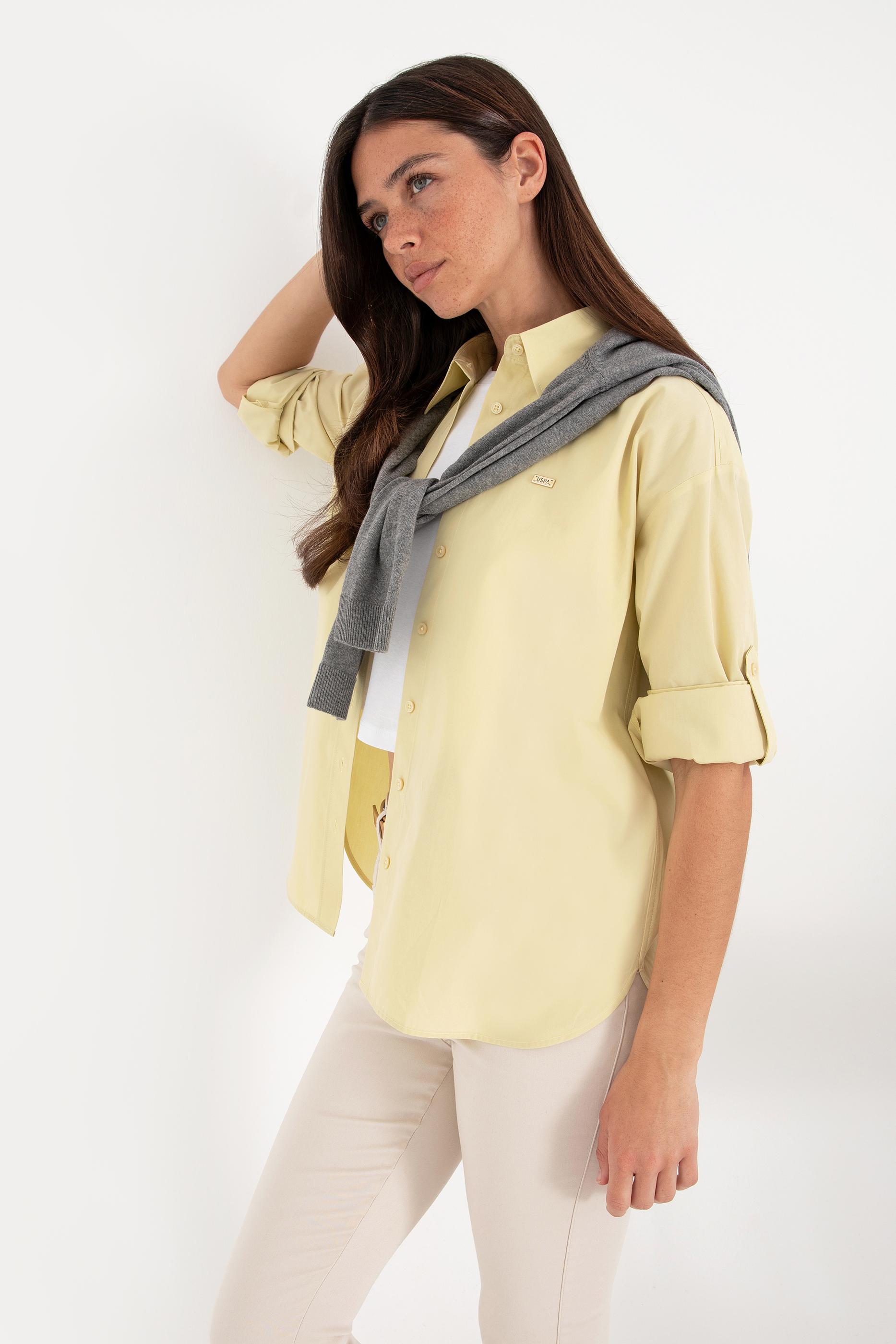 Kadın Açık Haki Uzun Kollu Tunik Gömlek
