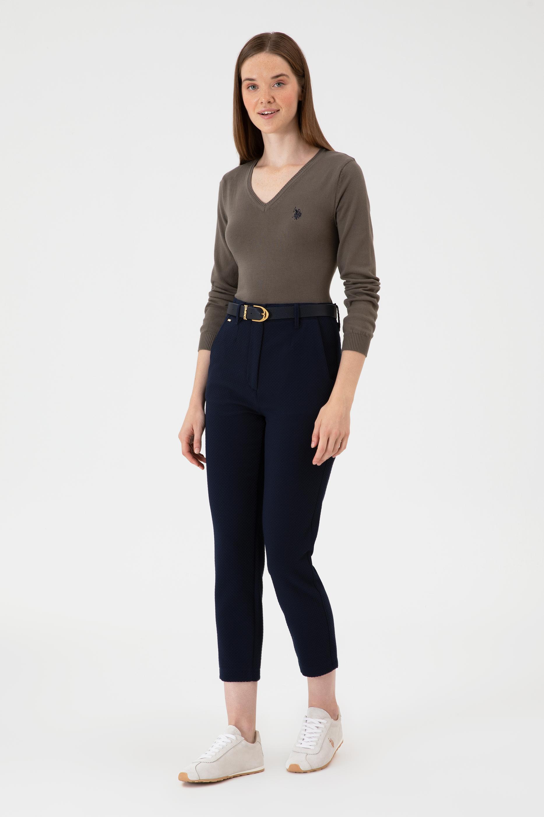 - Kadın Açık Lacivert Carrot High Waist Fit Kanvas Pantolon