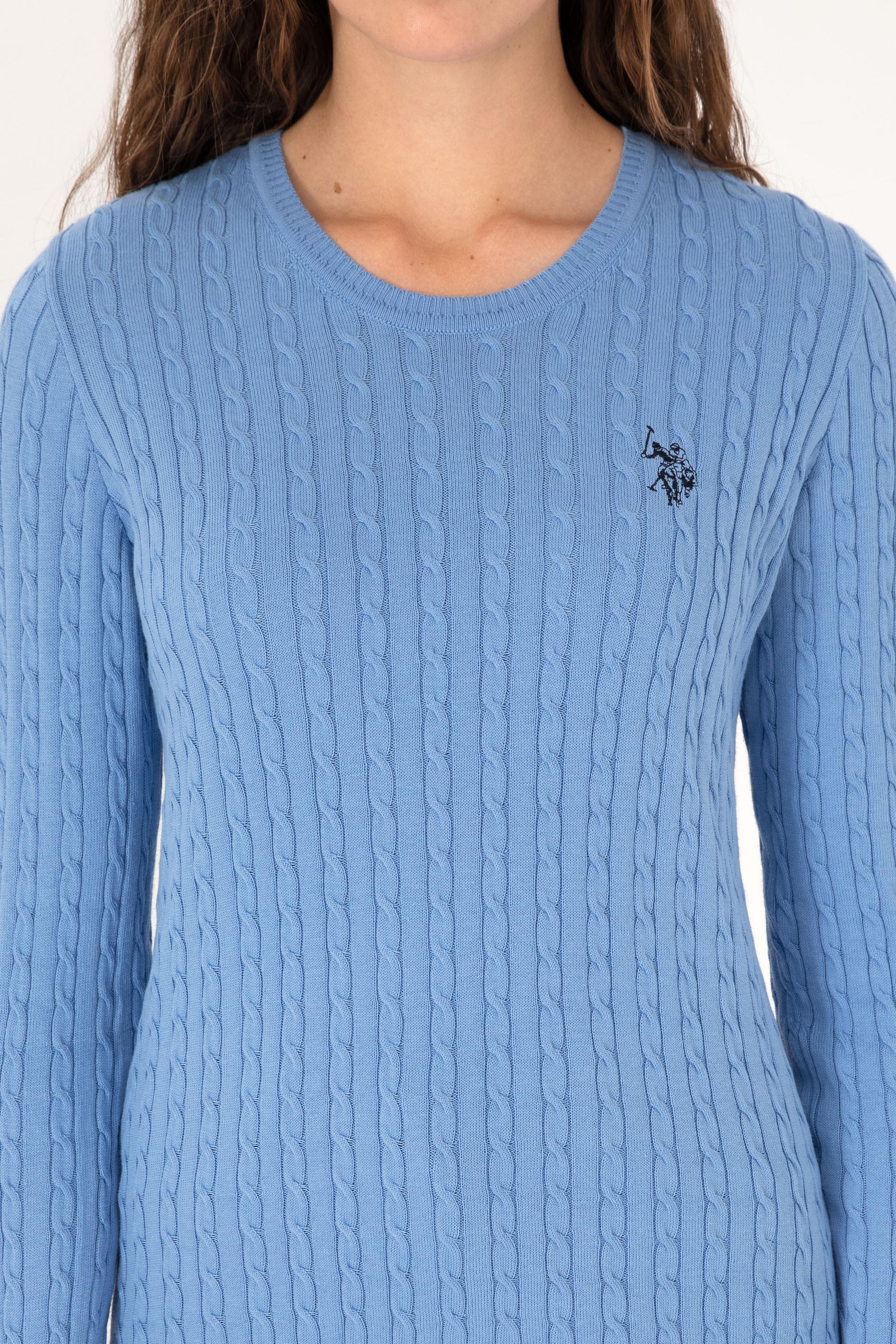 Kadın Açık Mavi Bisiklet Yaka Basic Kazak