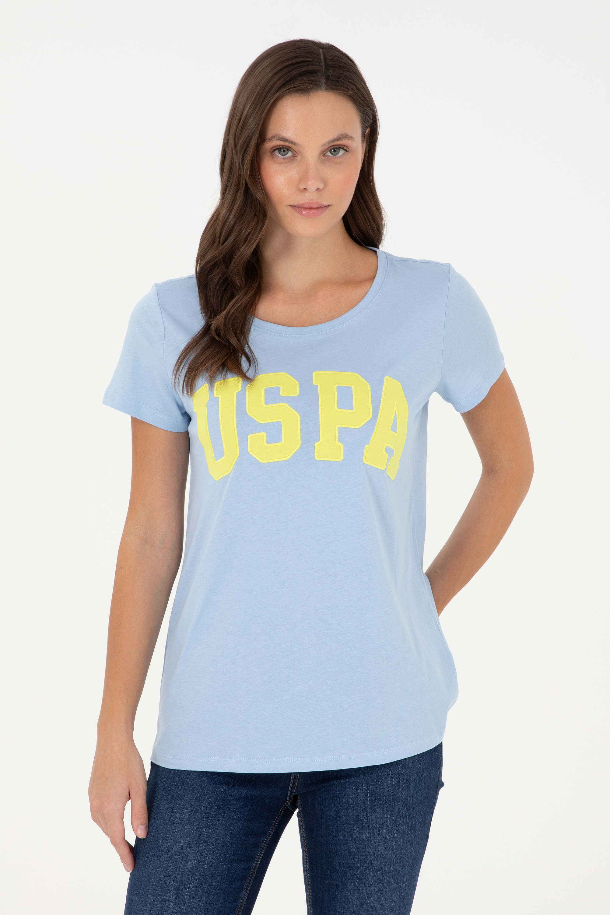 - Kadın Açık Mavi Bisiklet Yaka Basic Tişört