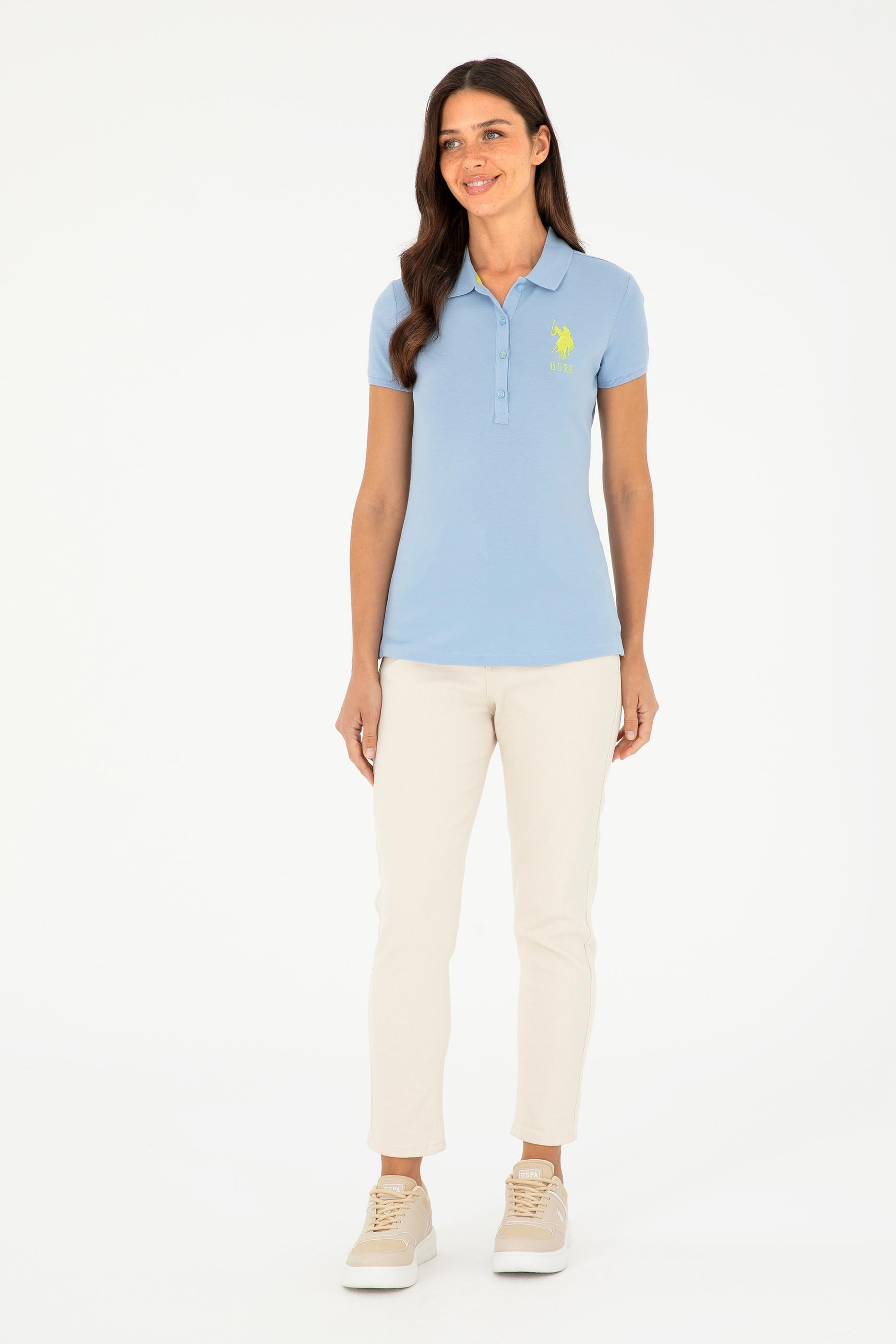 - Kadın Açık Mavi Basic Polo Yaka Tişört
