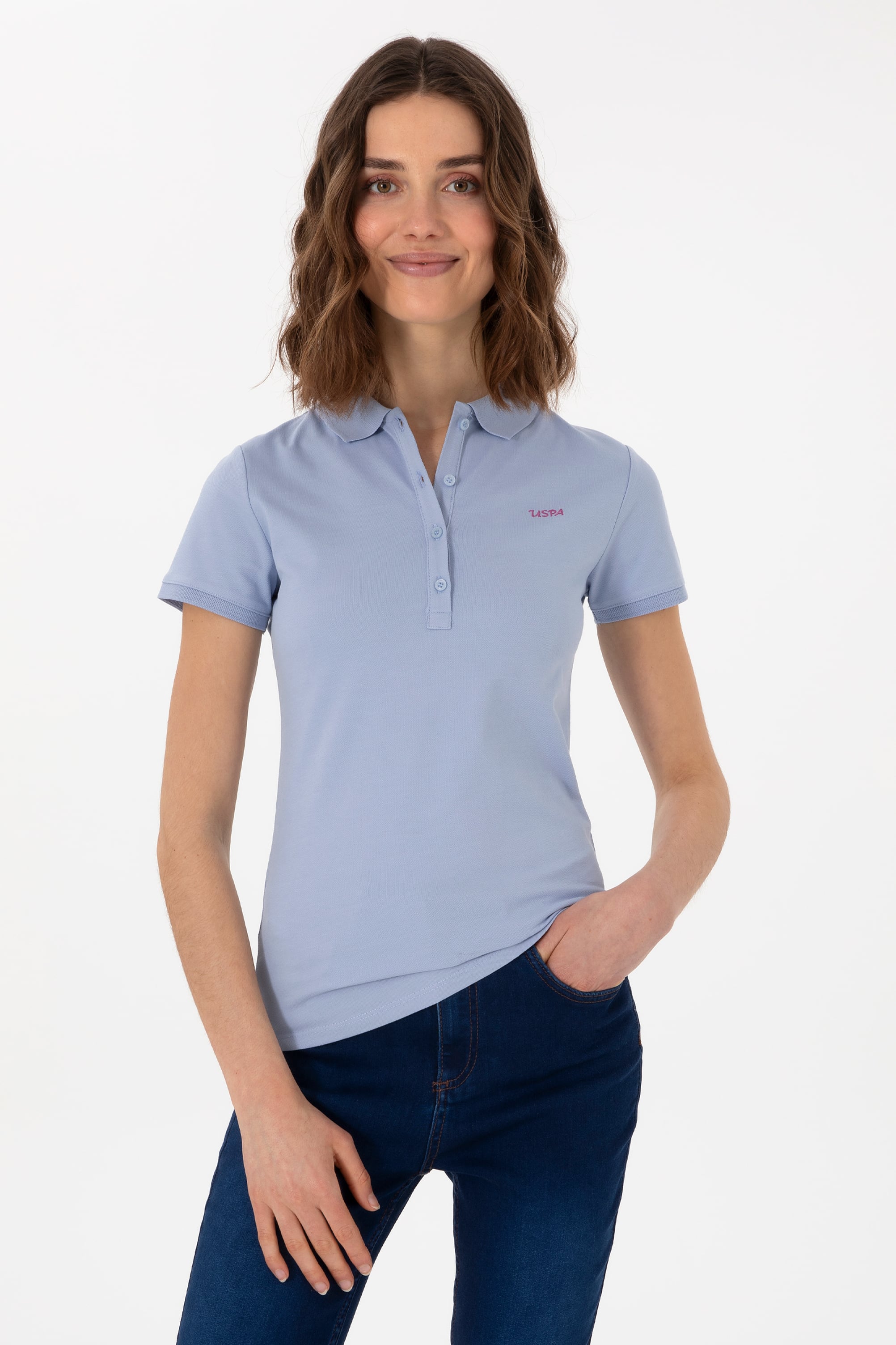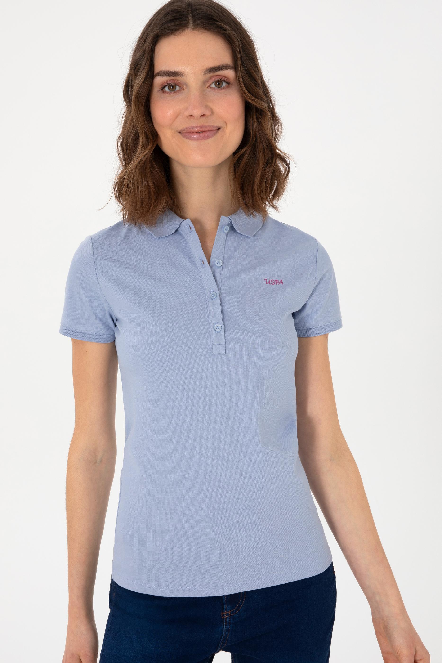 - Kadın Açık Mavi Basic Polo Yaka Tişört