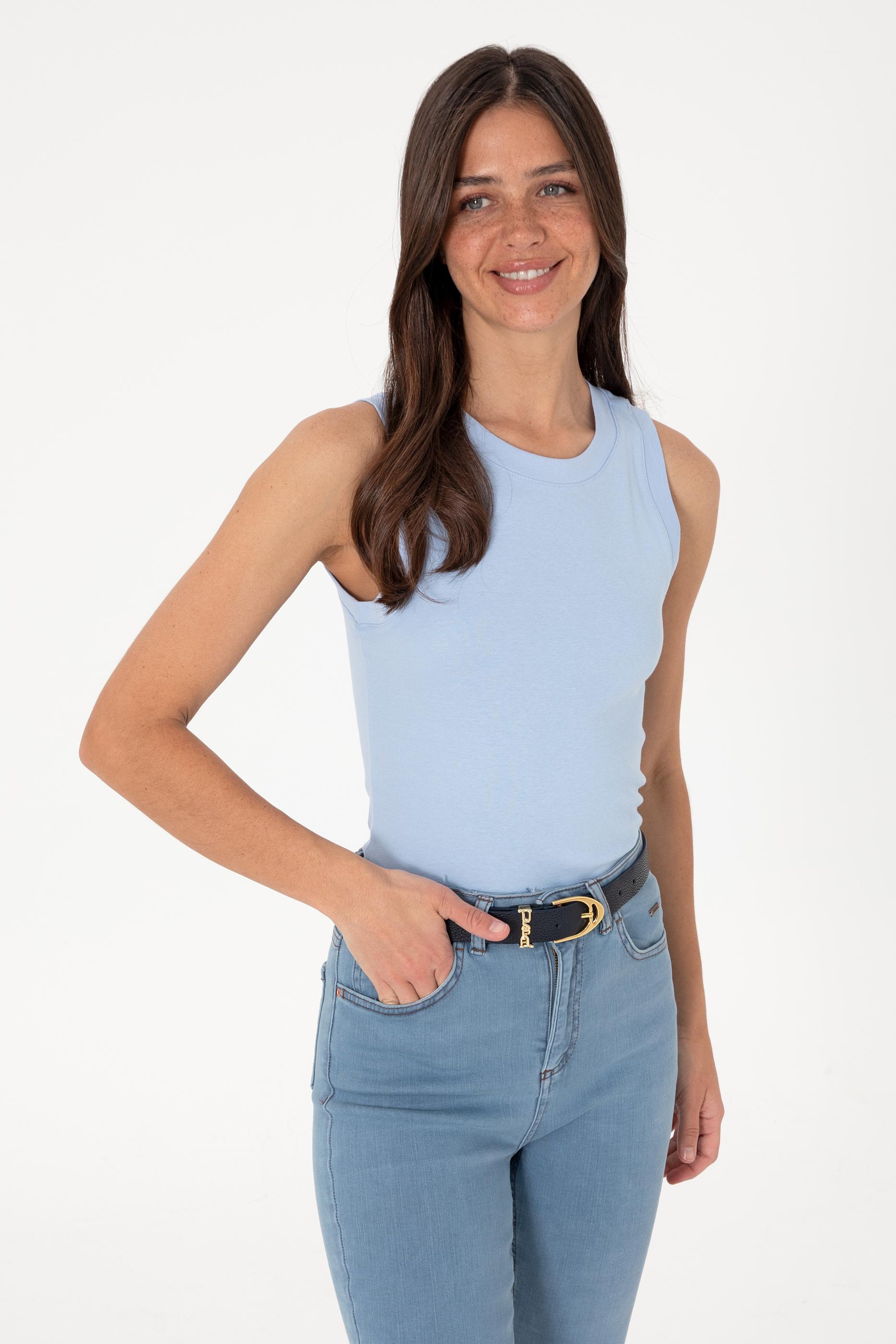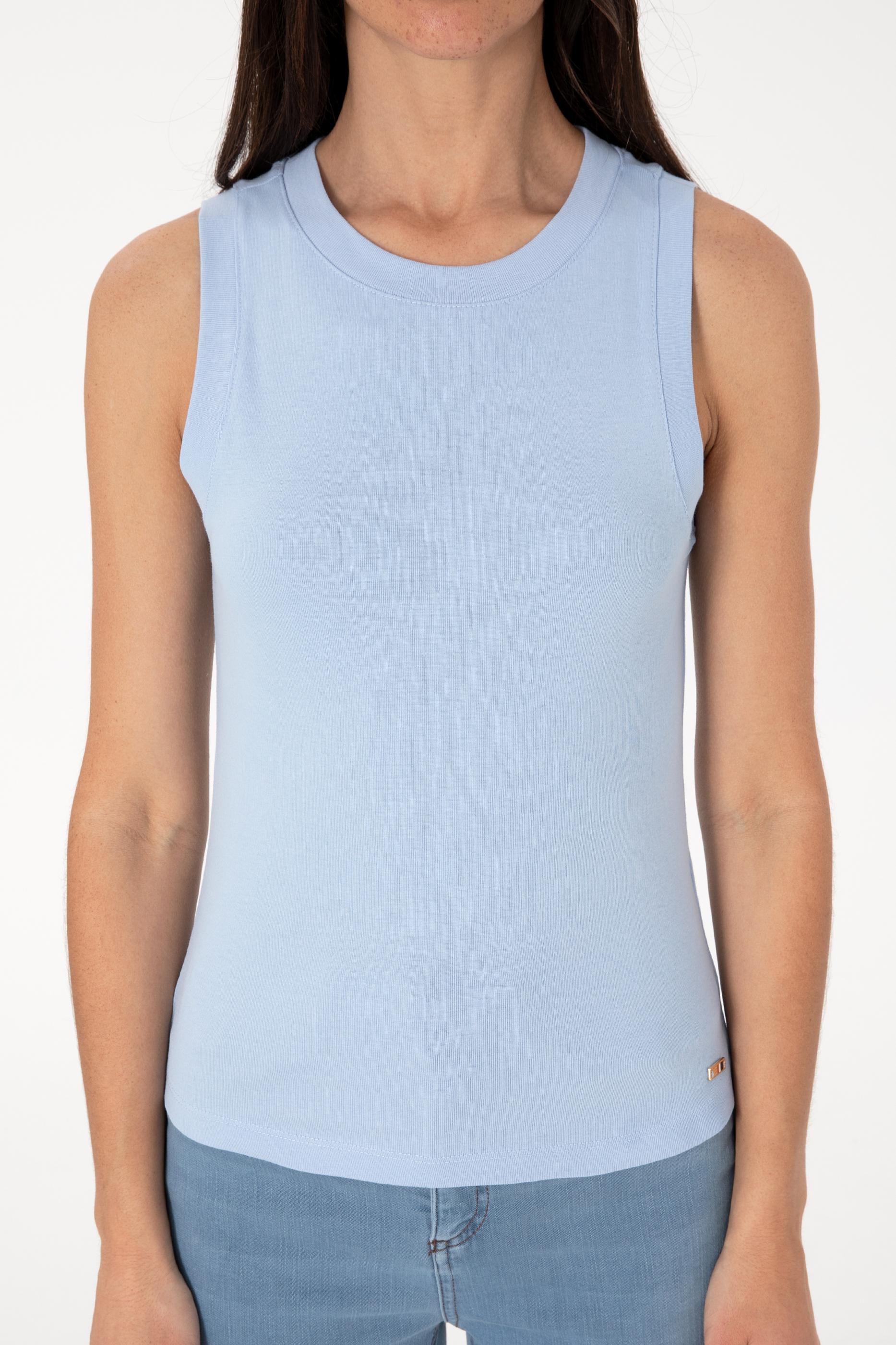 - Kadın Açık Mavi Kolsuz Bisiklet Yaka Basic Tişört
