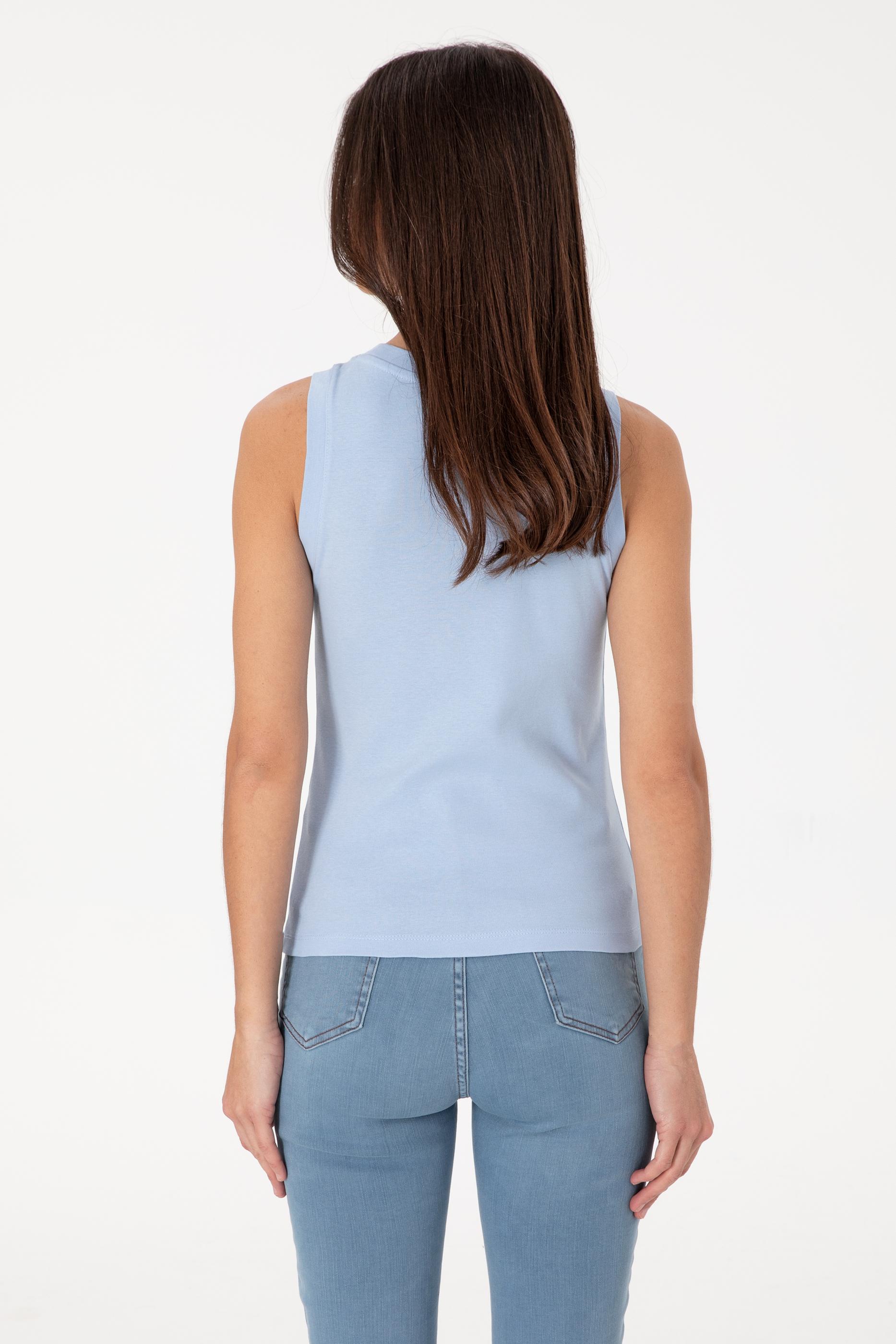 Kadın Açık Mavi Kolsuz Bisiklet Yaka Basic Tişört