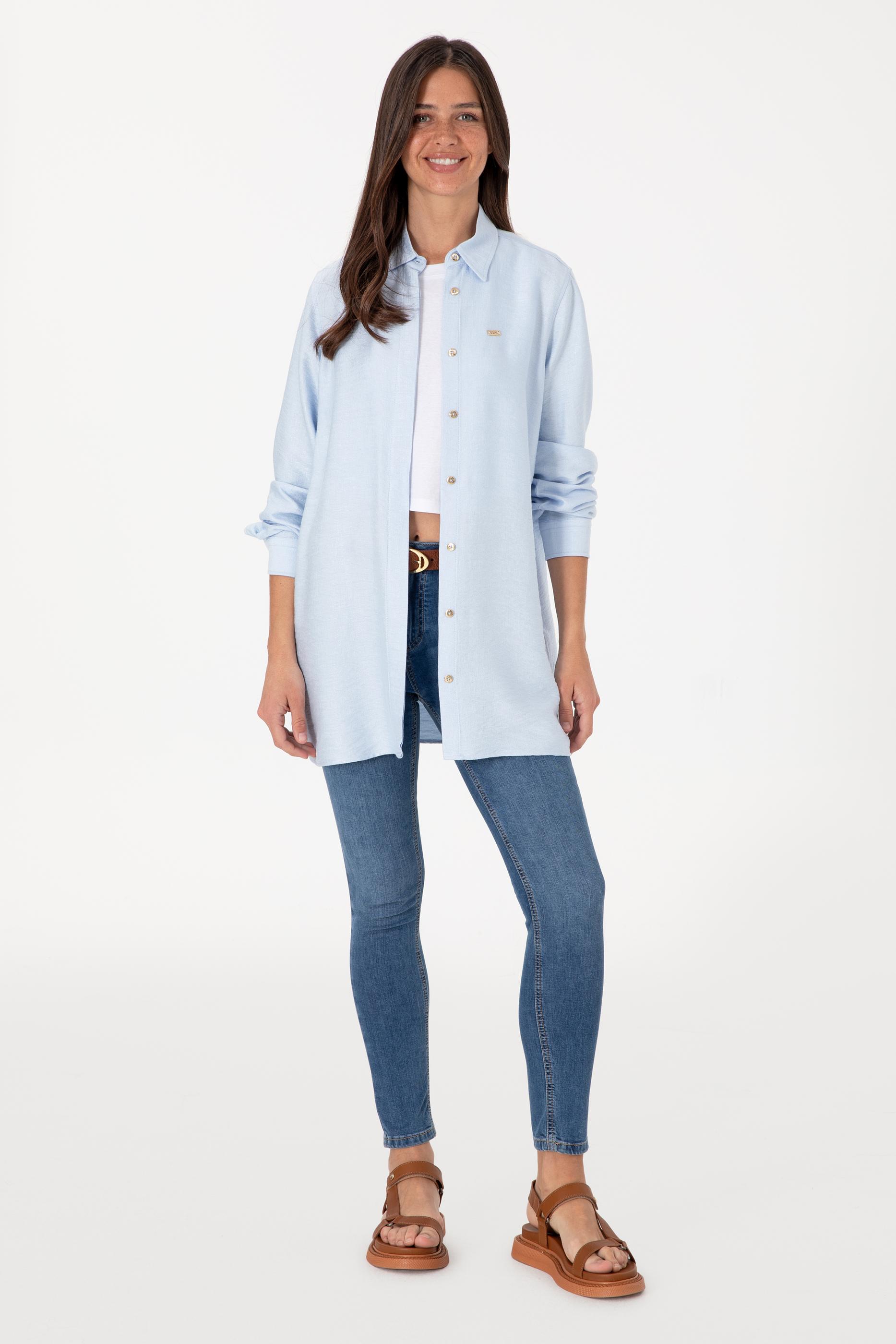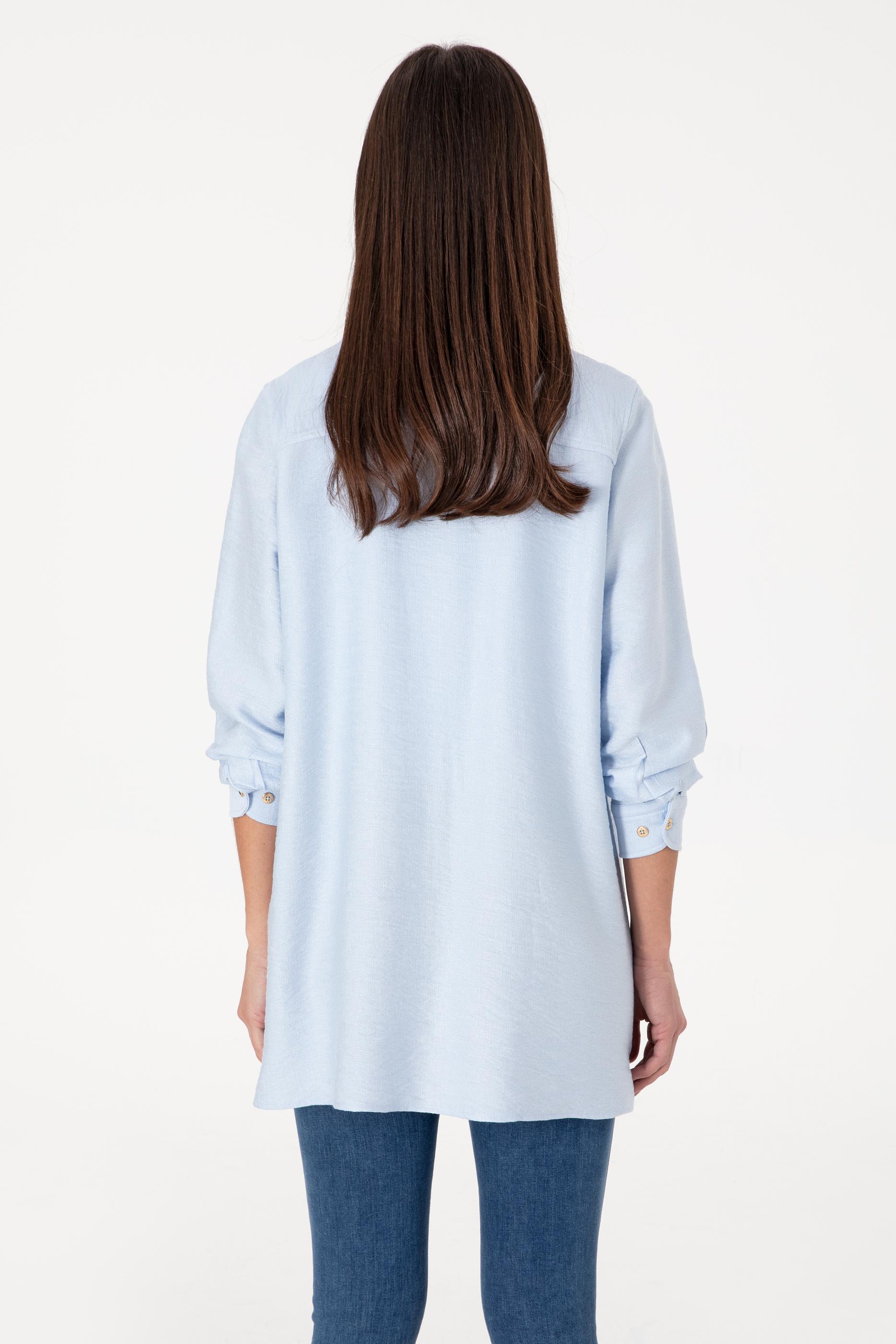 Kadın Açık Mavi Dokuma Tunik Gömlek - 50306411027