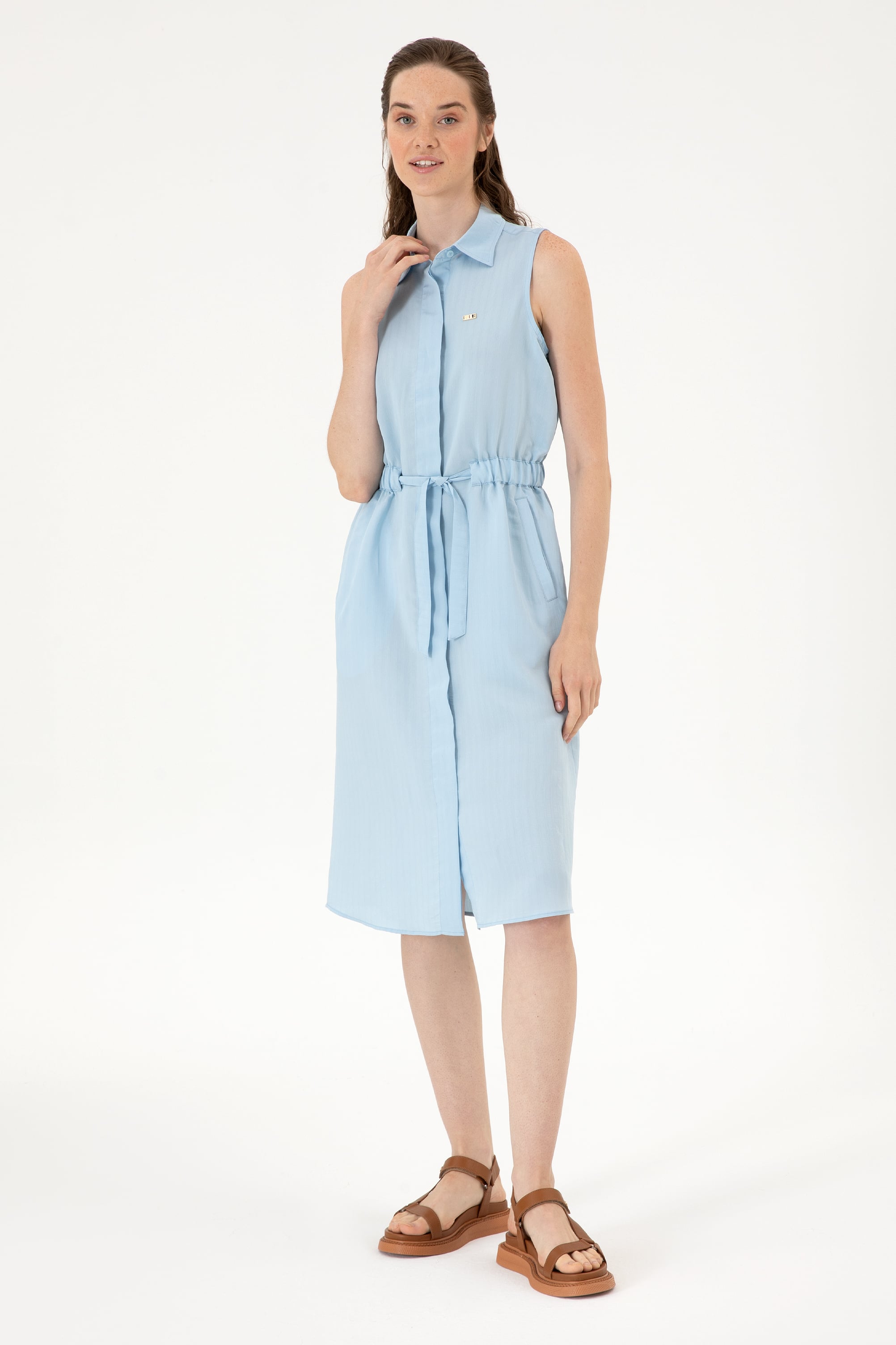 Kadın Açık Mavi Dokuma Elbise