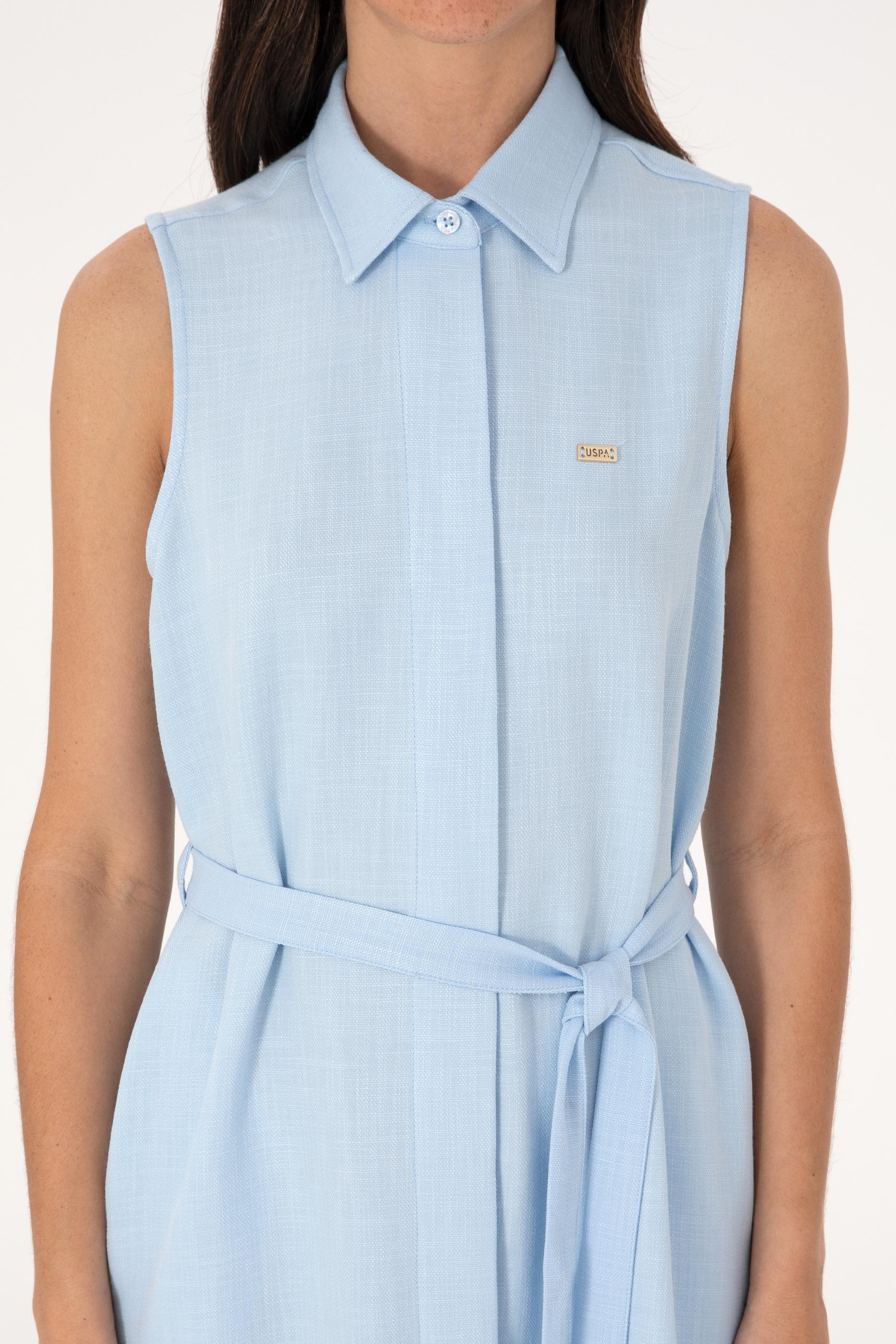 Kadın Açık Mavi Kemerli Mini Boy Dokuma Elbise