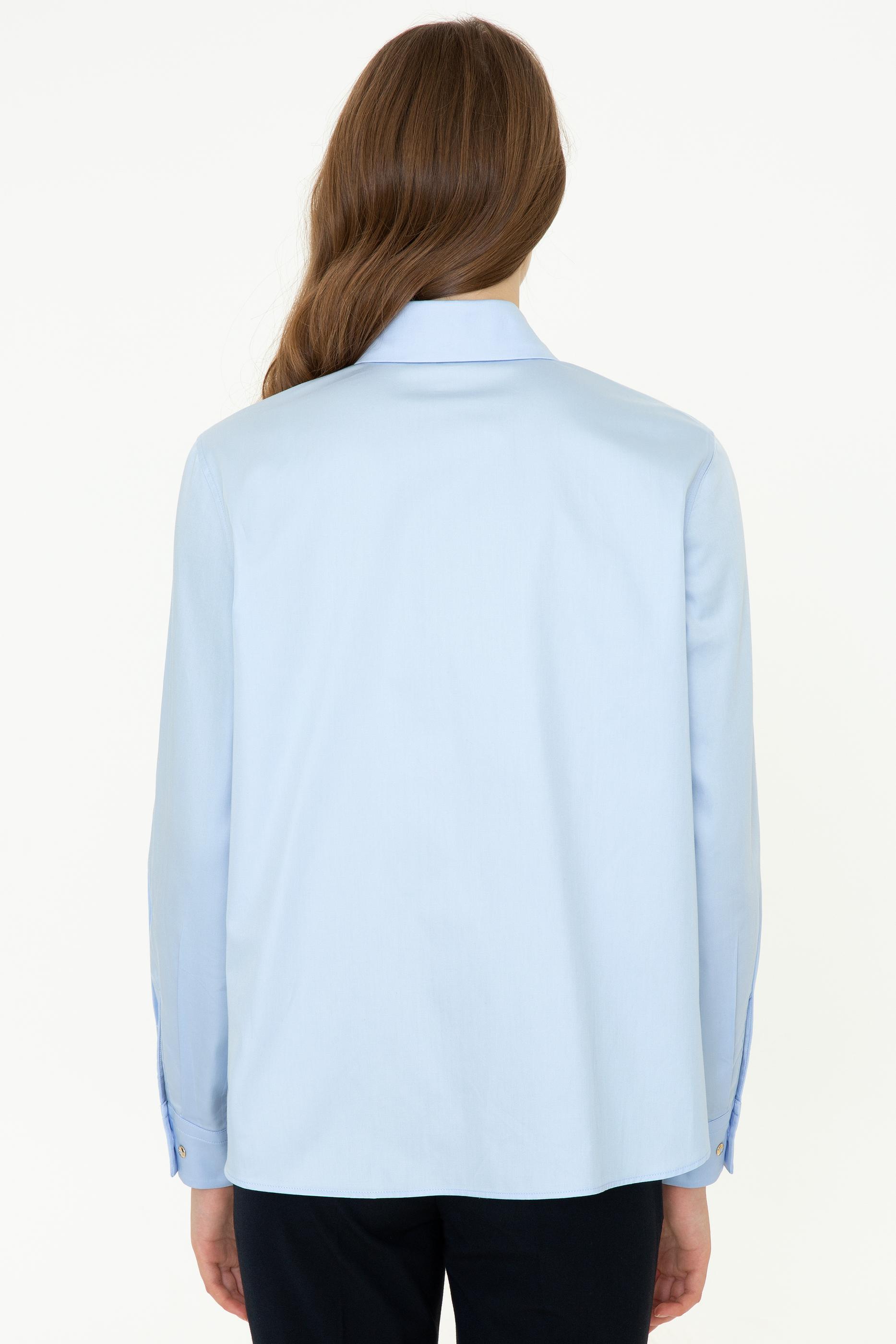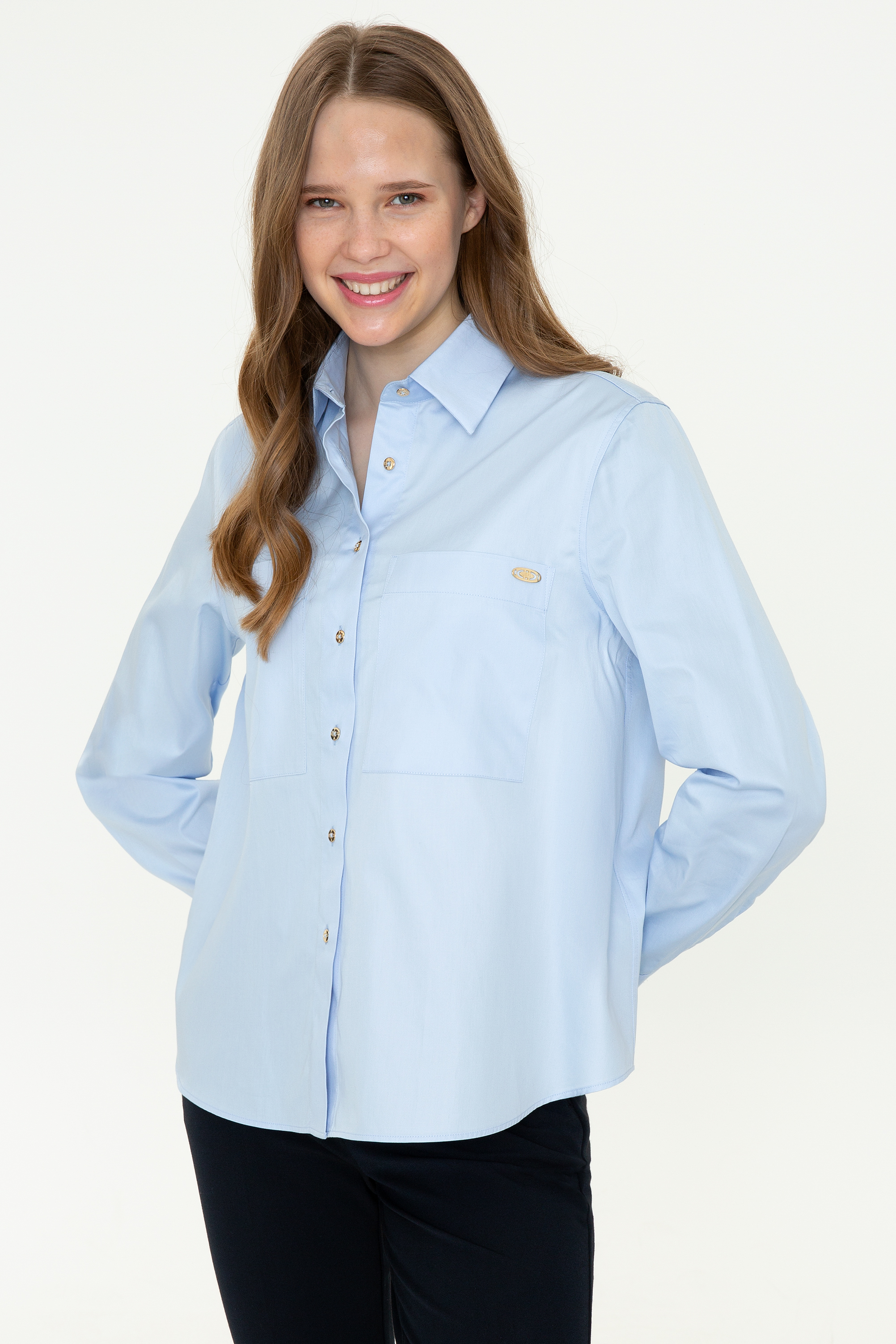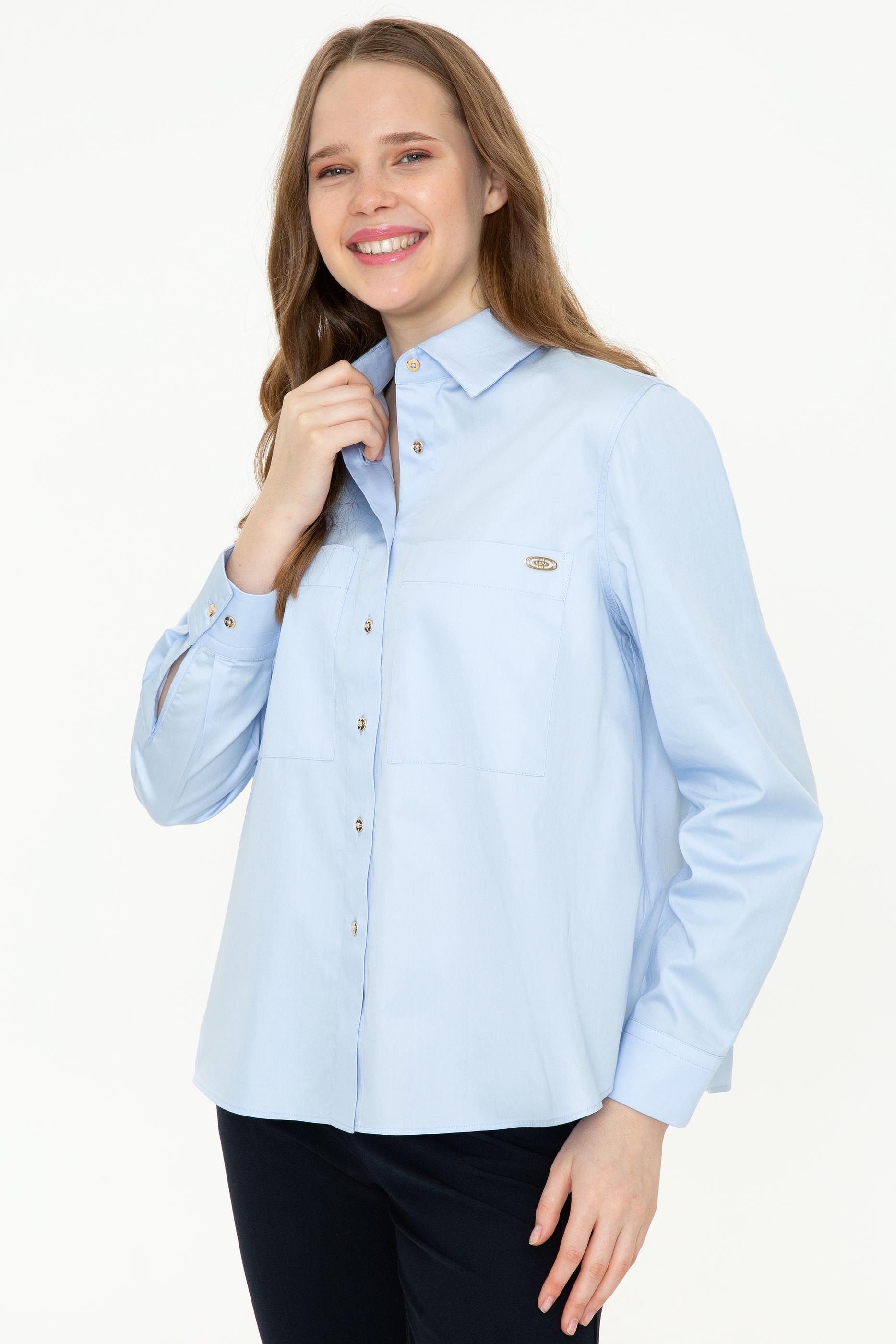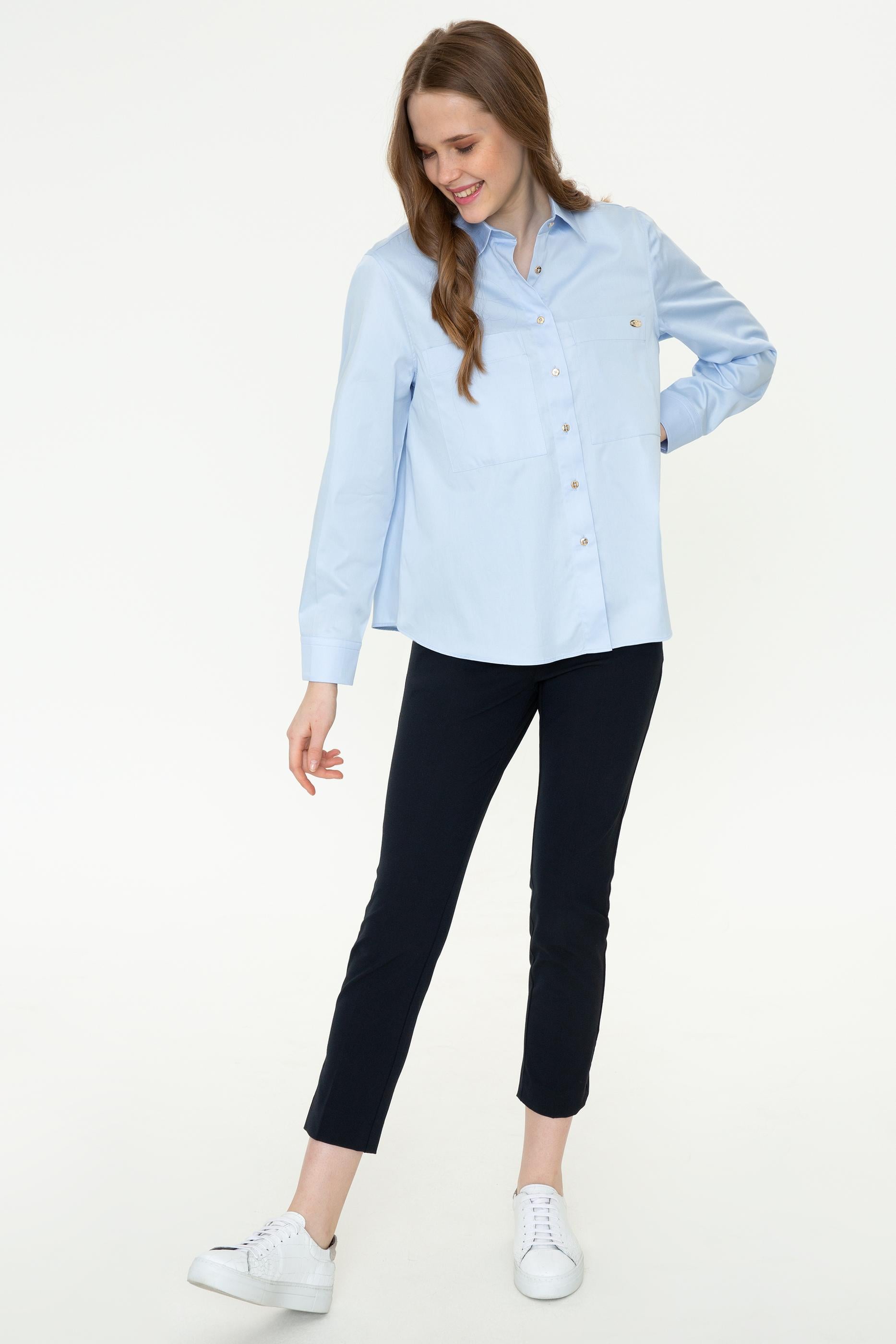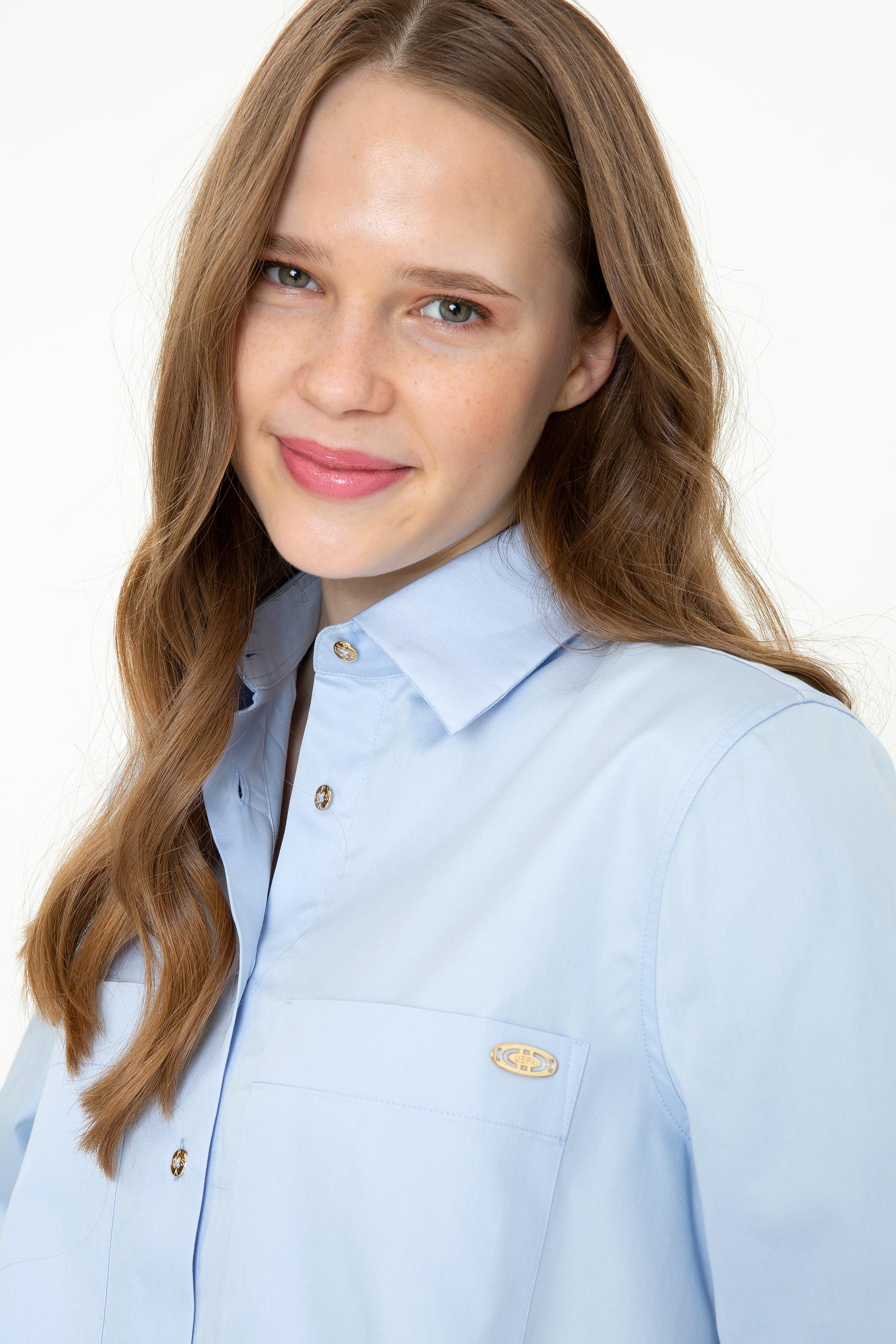 %100 pamuk kumaşı cildinizin hava almasına olanak verirken, comfort fit kesimi sayesinde kadın cepli gömlek modelimizi gün boyu konforlu bir şekilde kullanabilirsiniz.