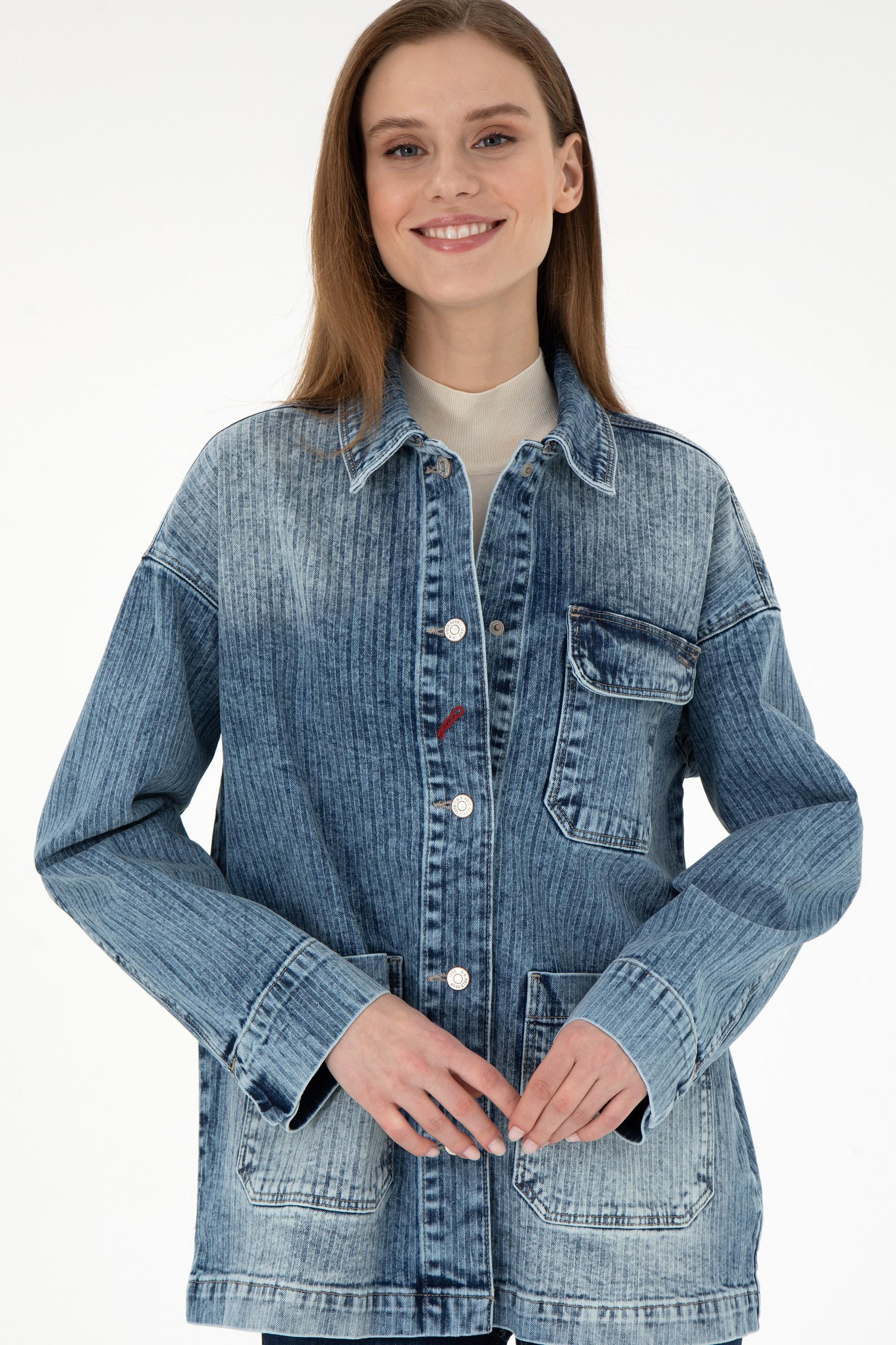 Kadın Açık Mavi Jean Tunik Gömlek - 50291134005