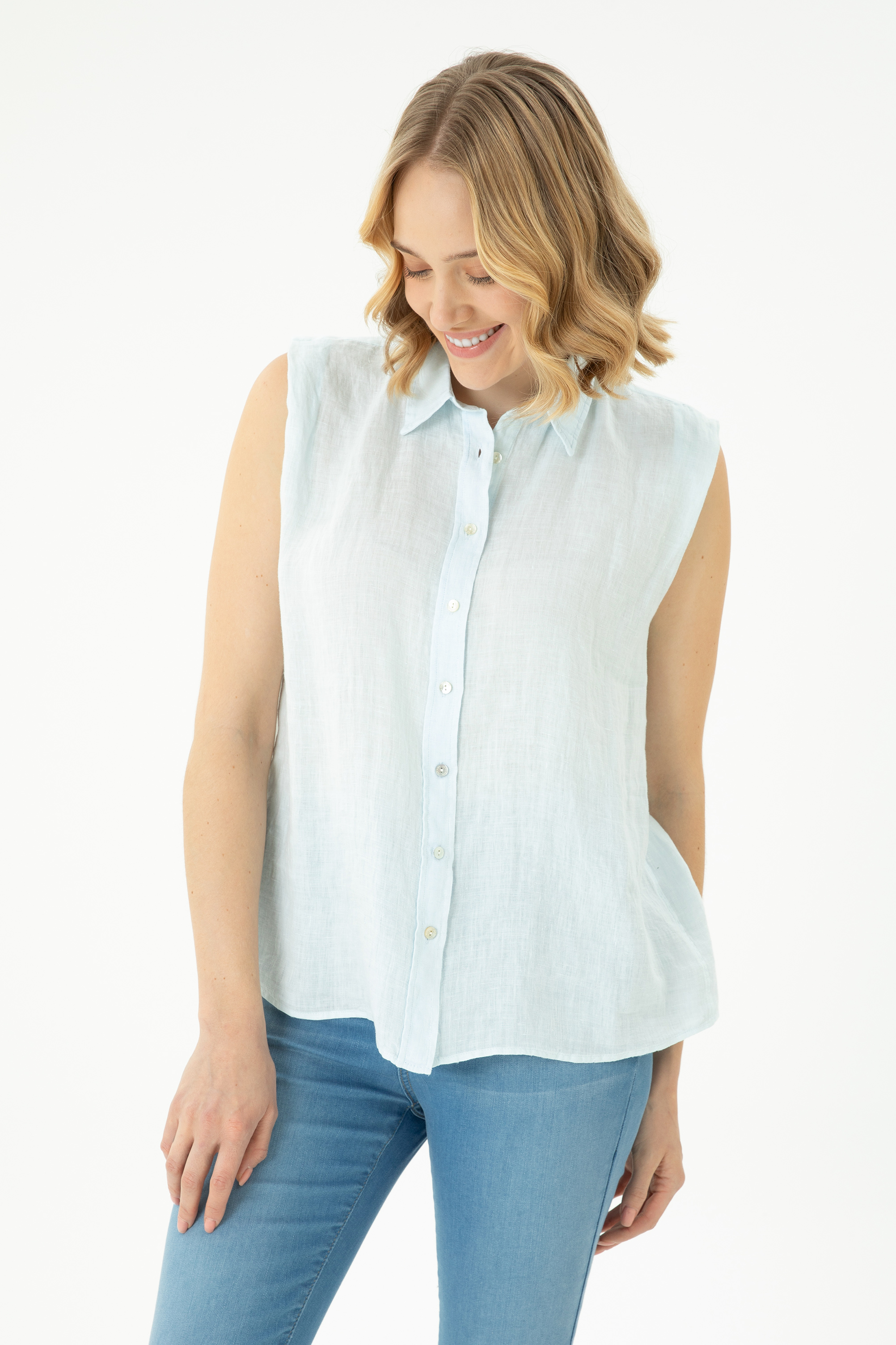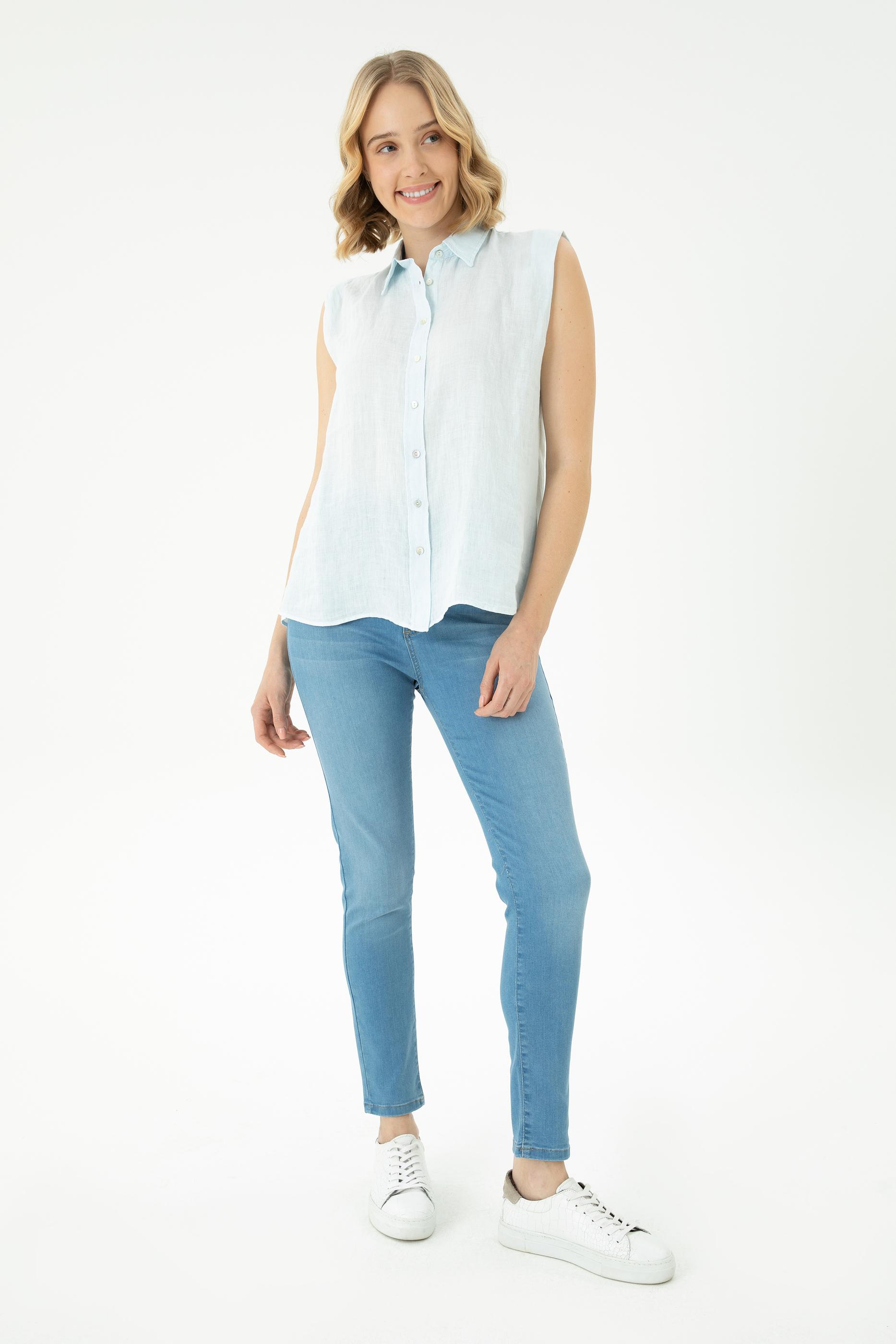 - Kadın Açık Mavi Kısa Kollu Gömlek