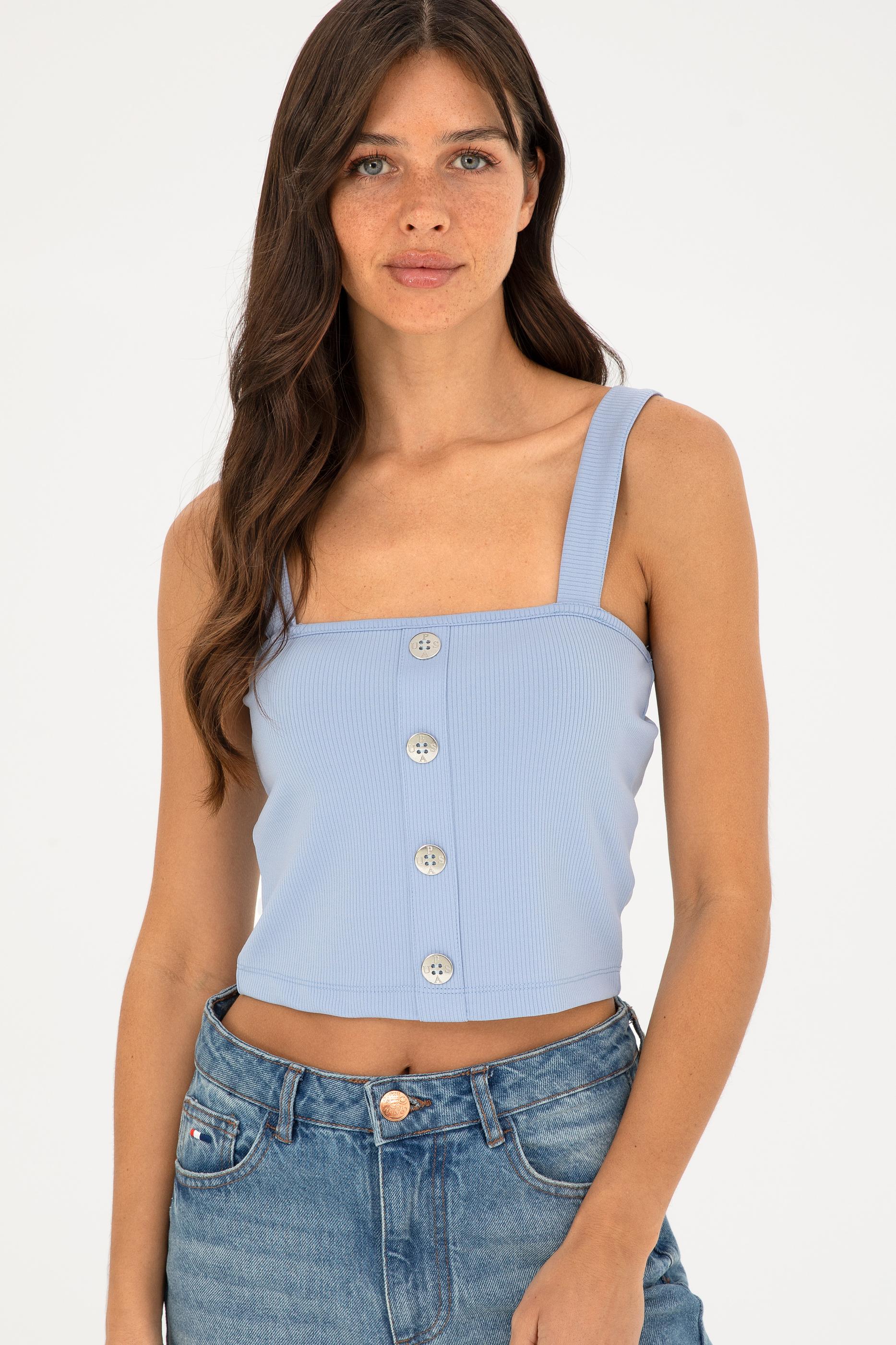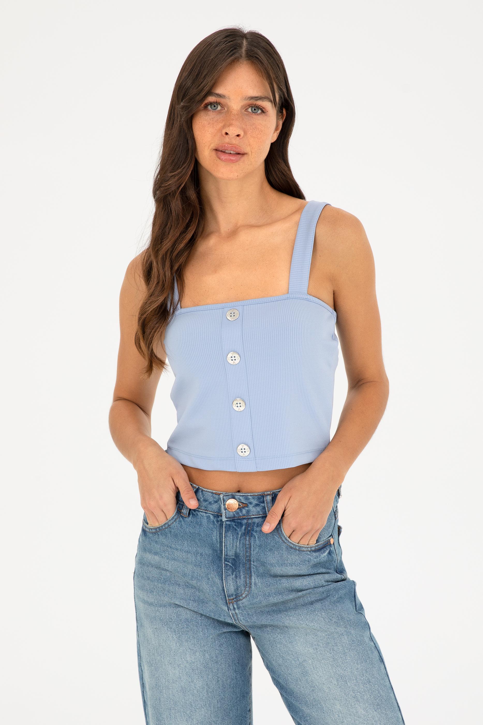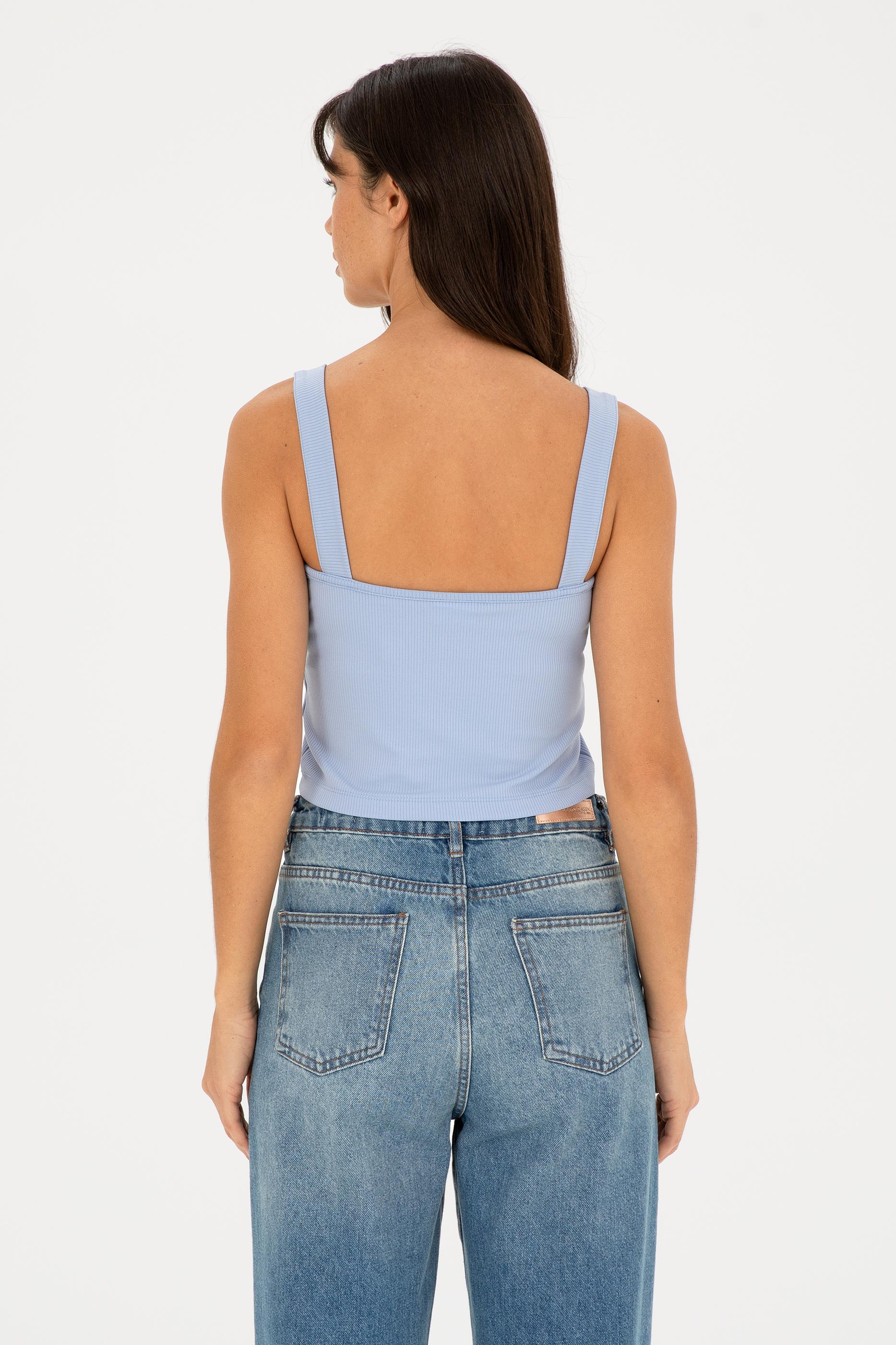 Kadın Açık Mavi Kolsuz Tişört