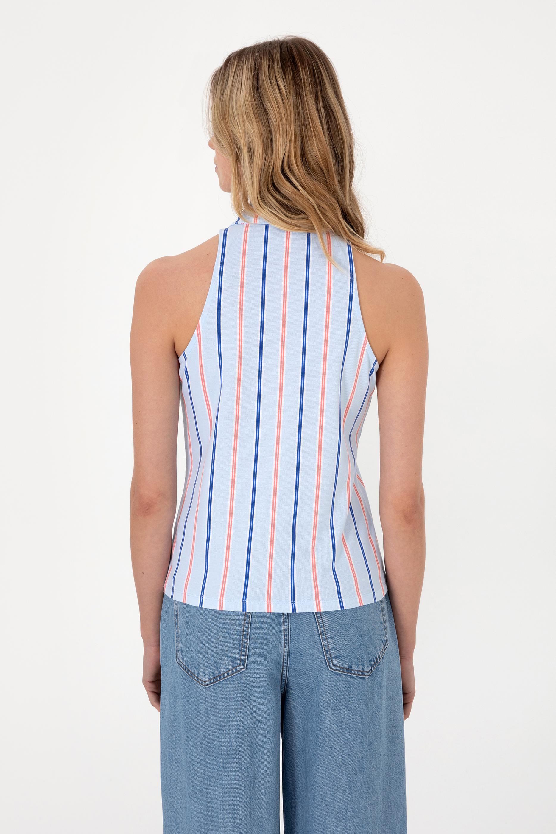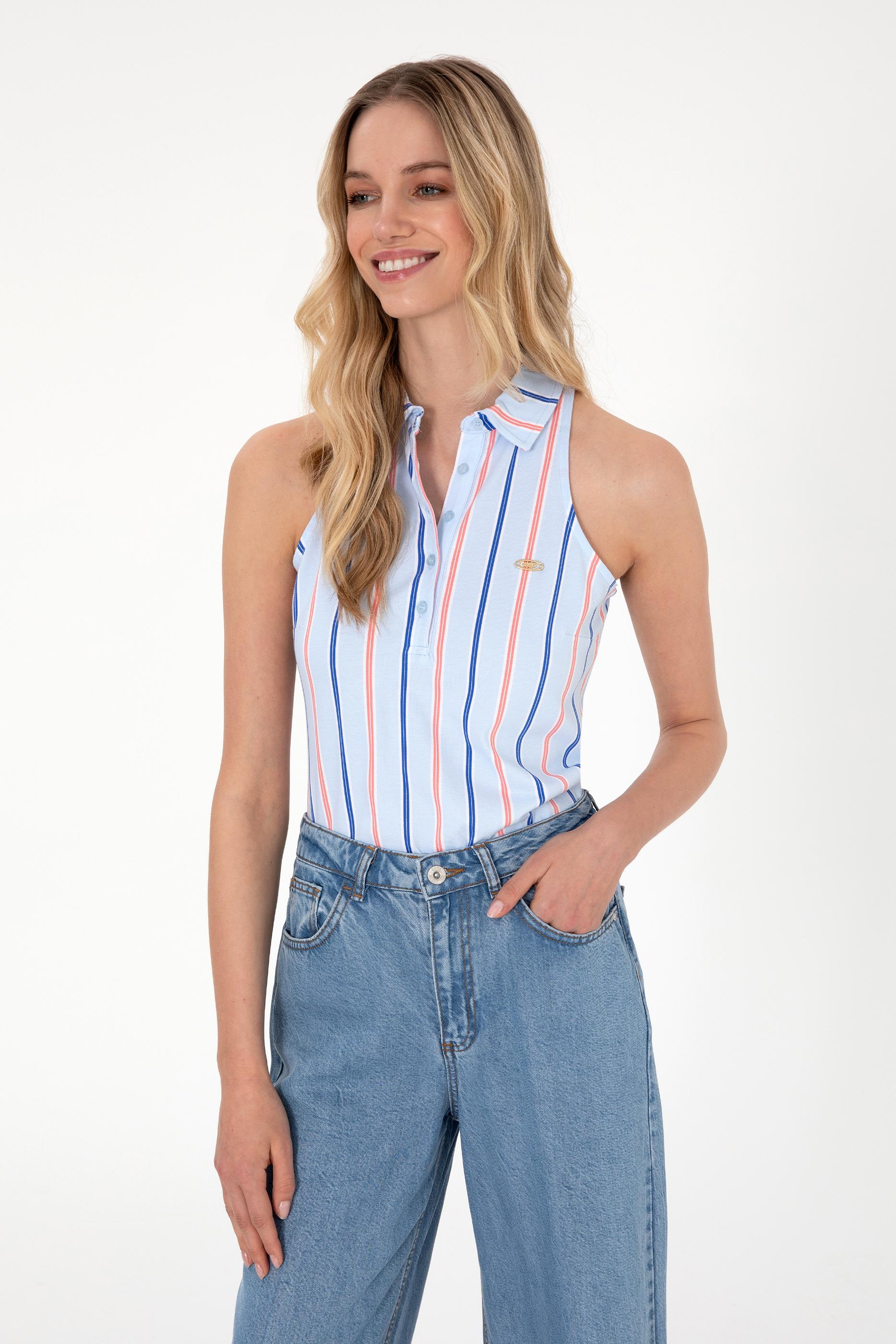 Kadın Açık Mavi Kolsuz Polo Yaka Tişört