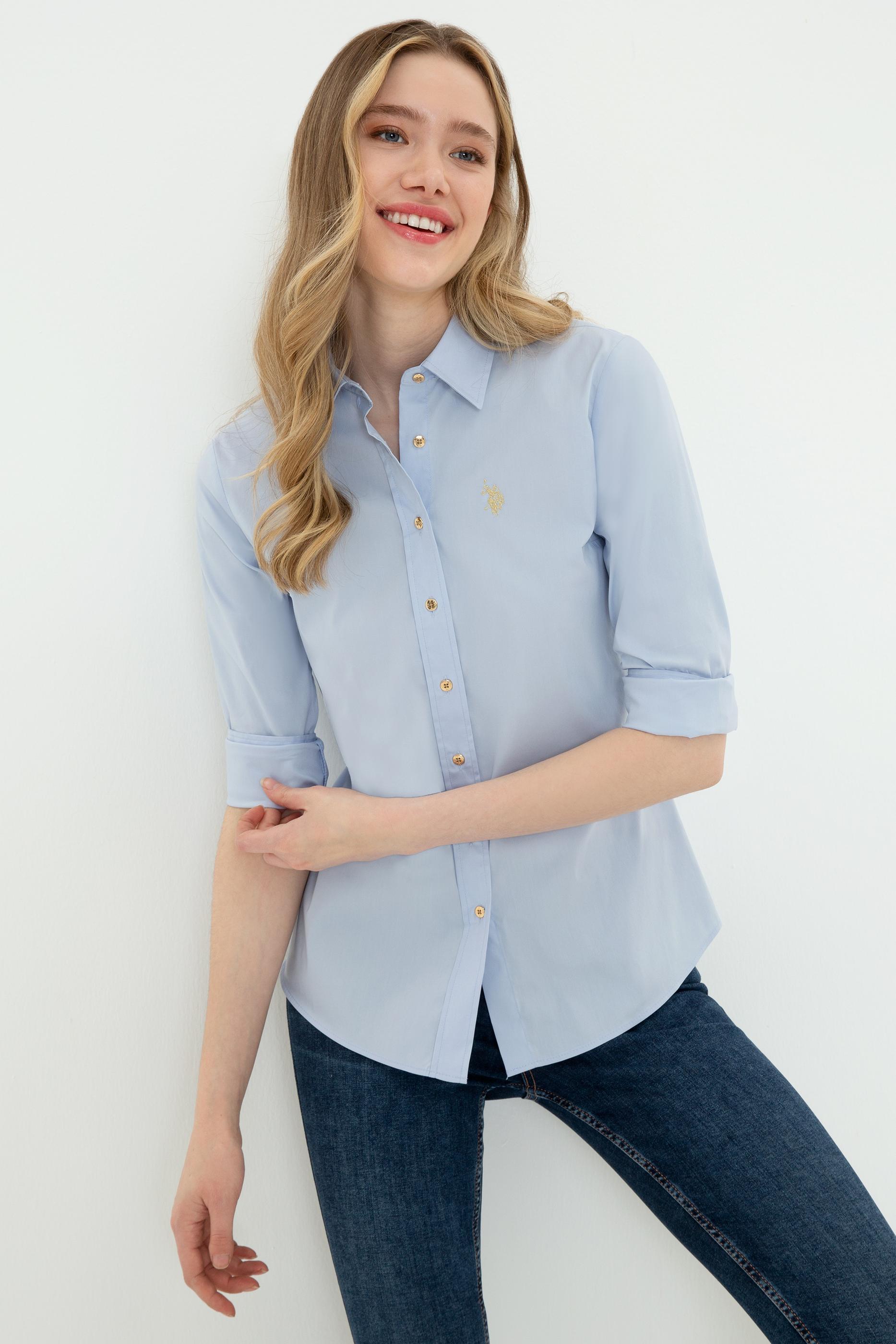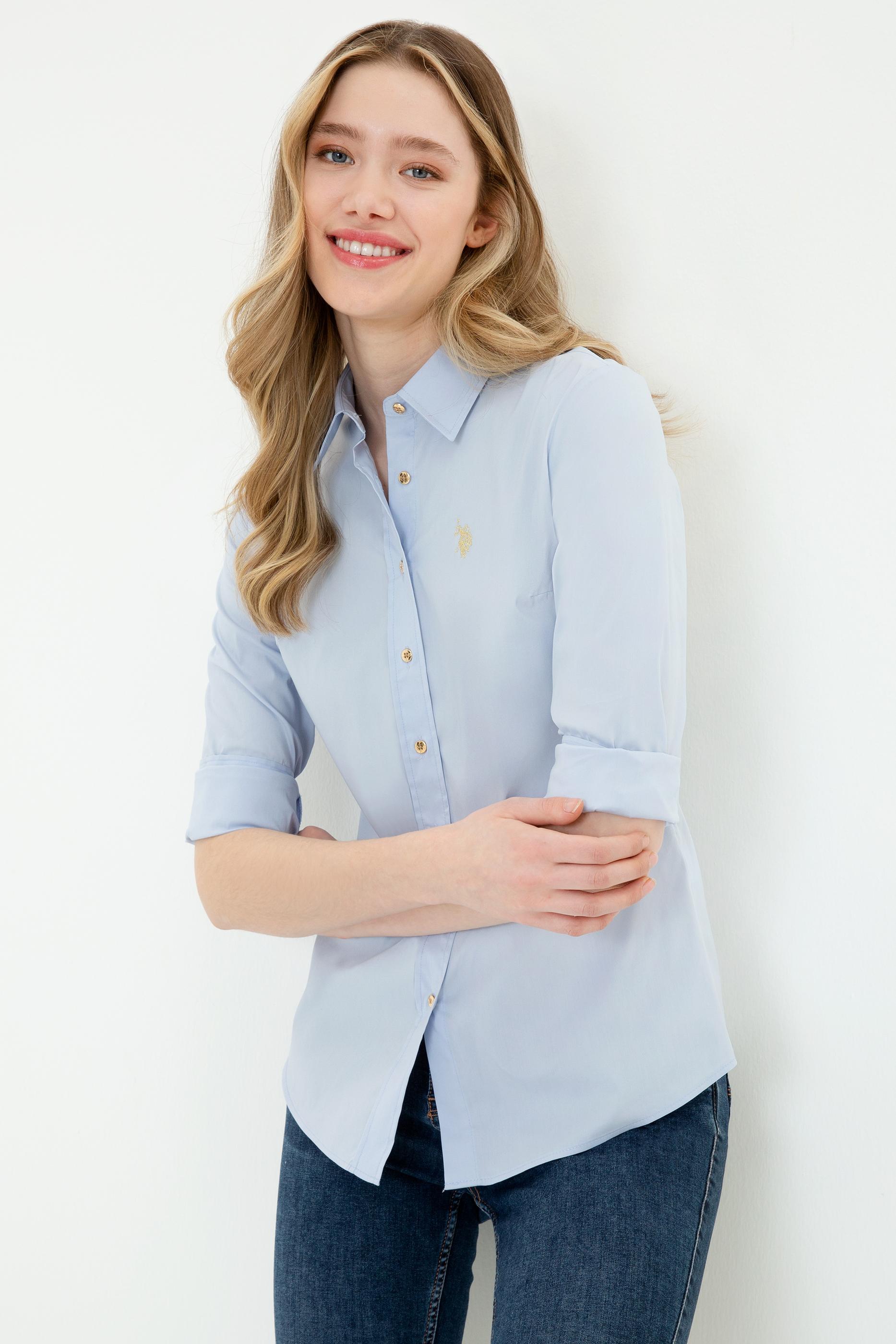 - Kadın Açık Mavi Uzun Kollu Basic Gömlek