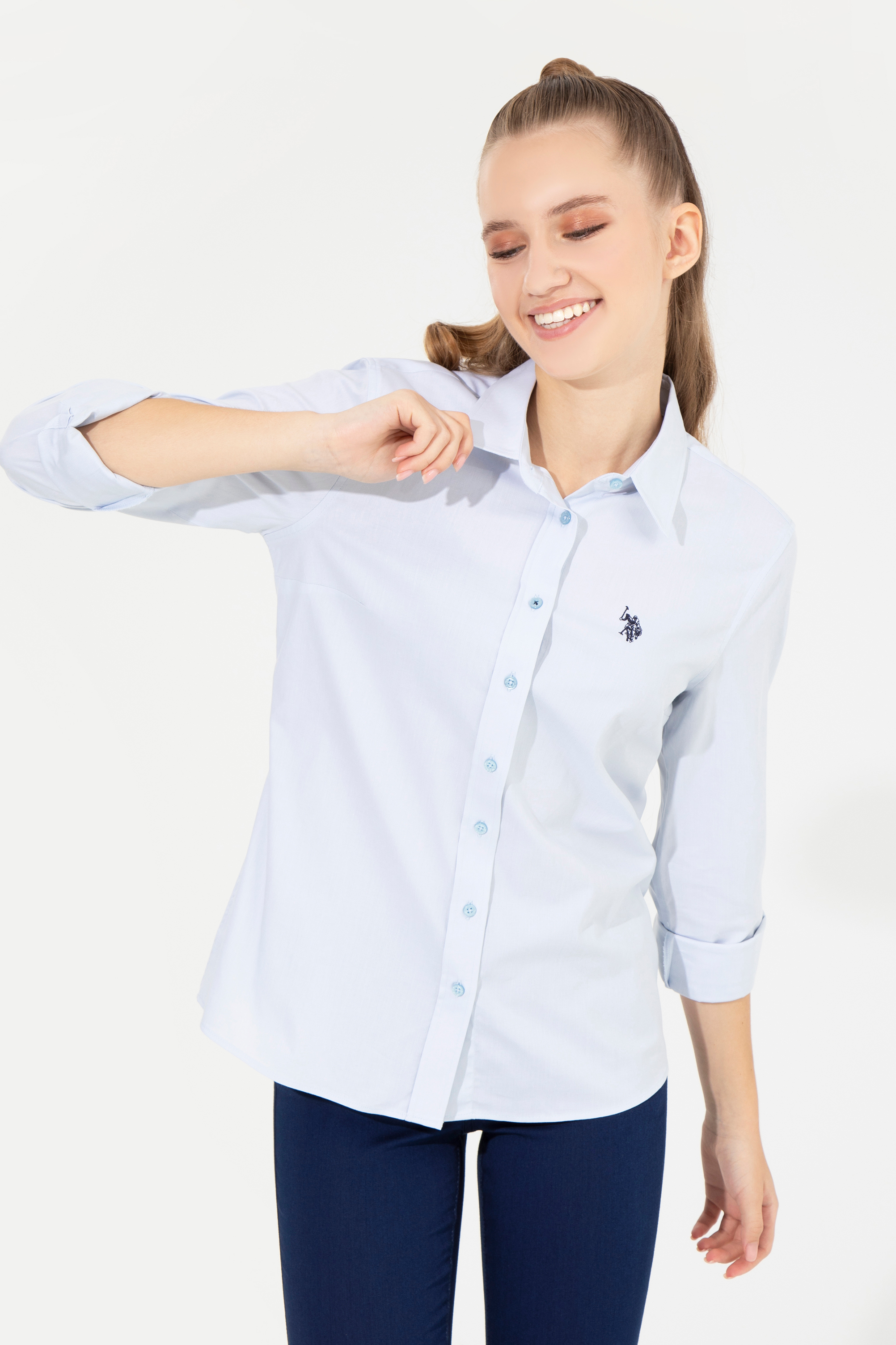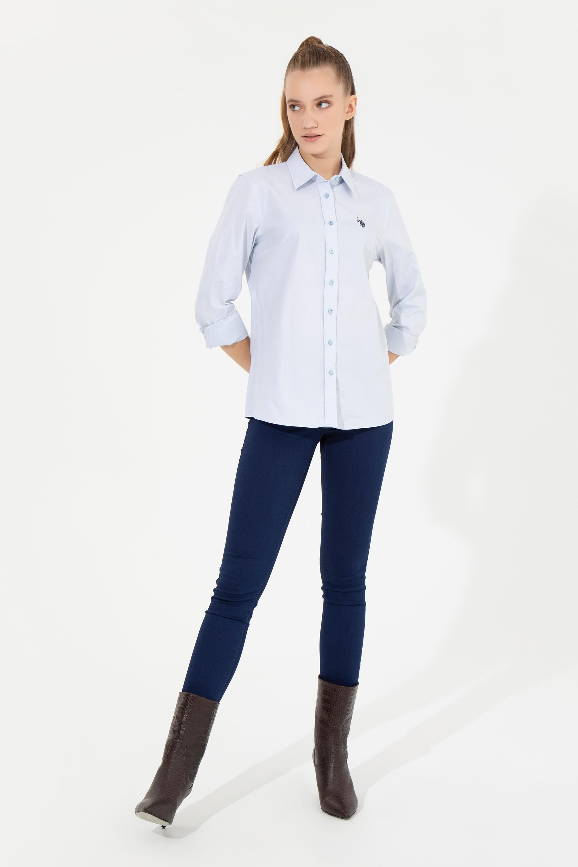 - Kadın Açık Mavi Uzun Kollu Basic Gömlek
