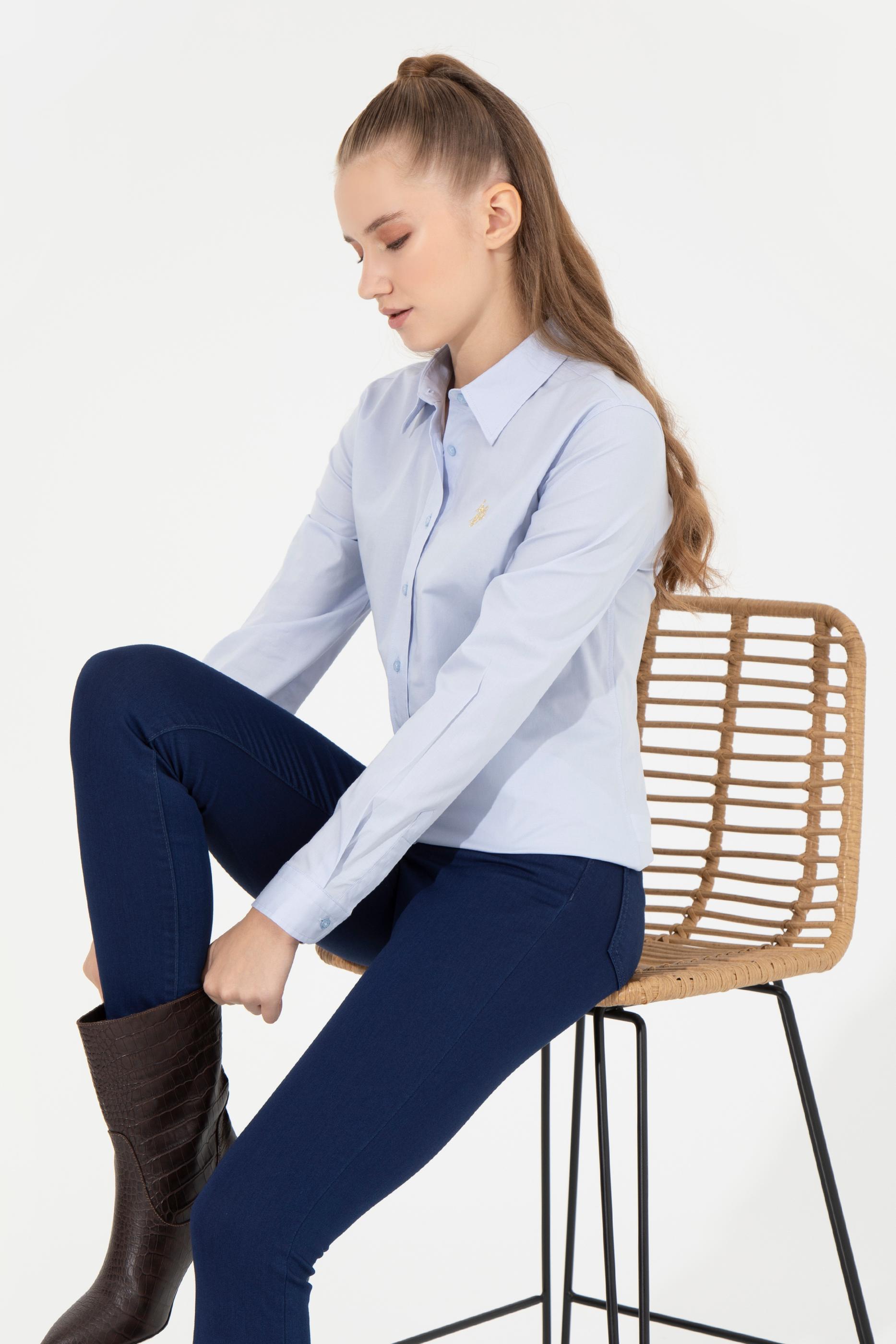 - Kadın Açık Mavi Uzun Kollu Basic Gömlek