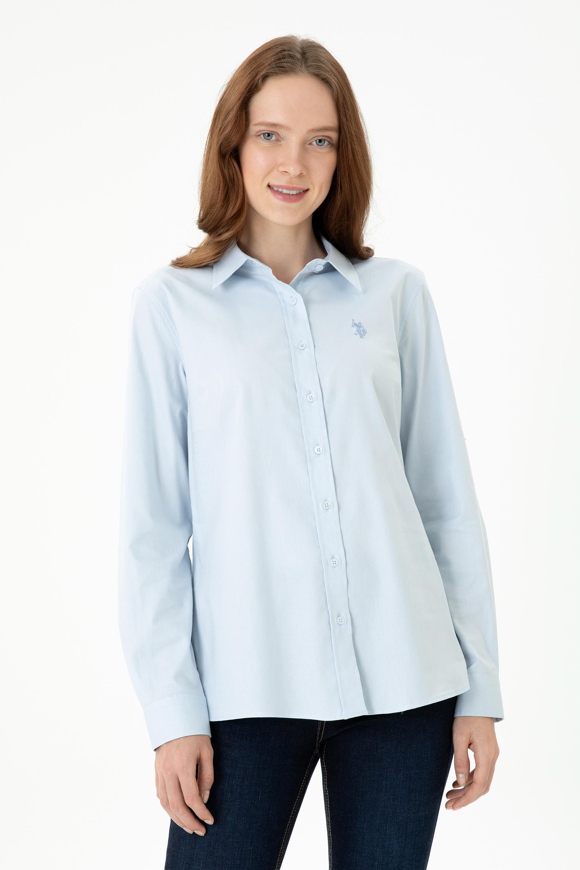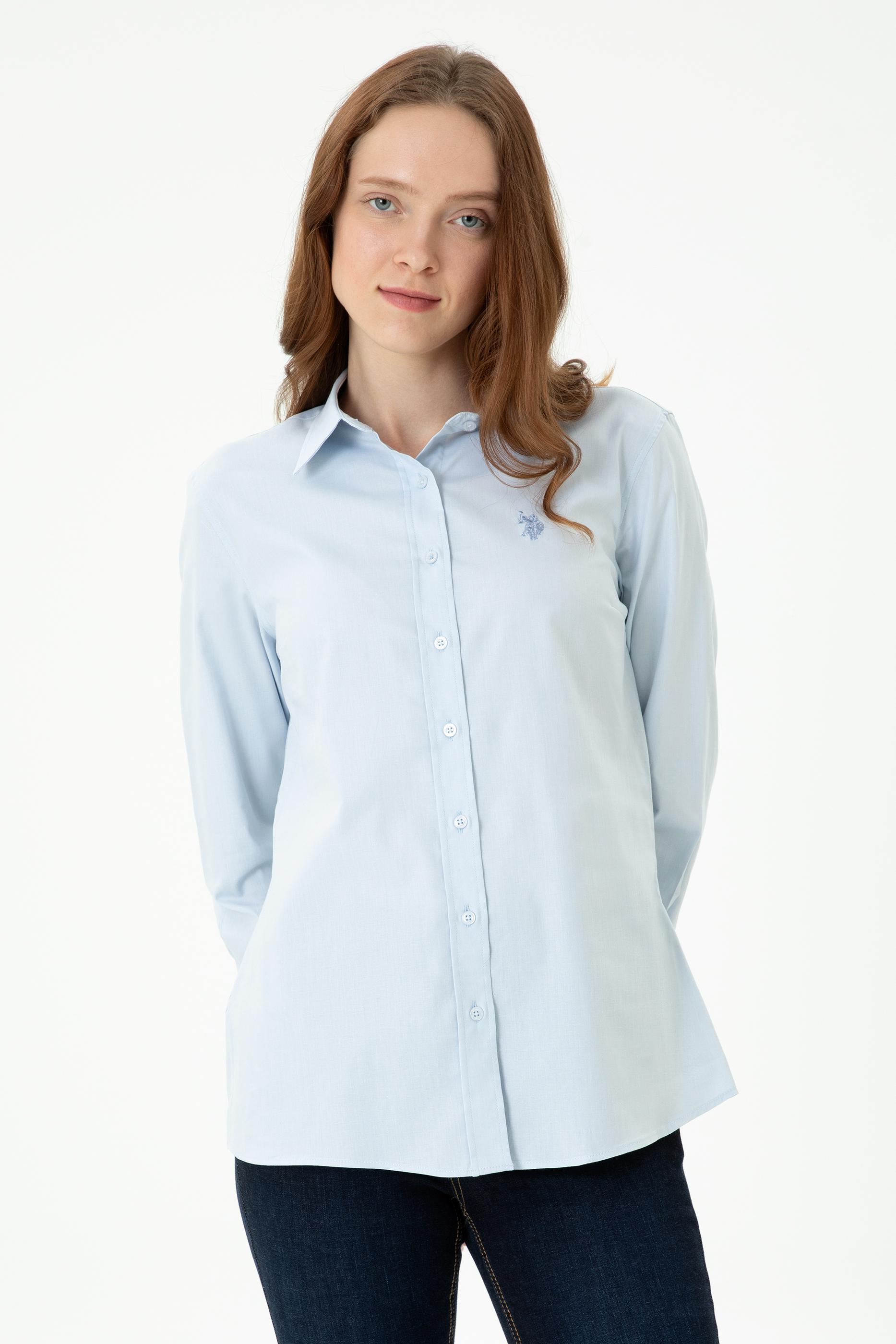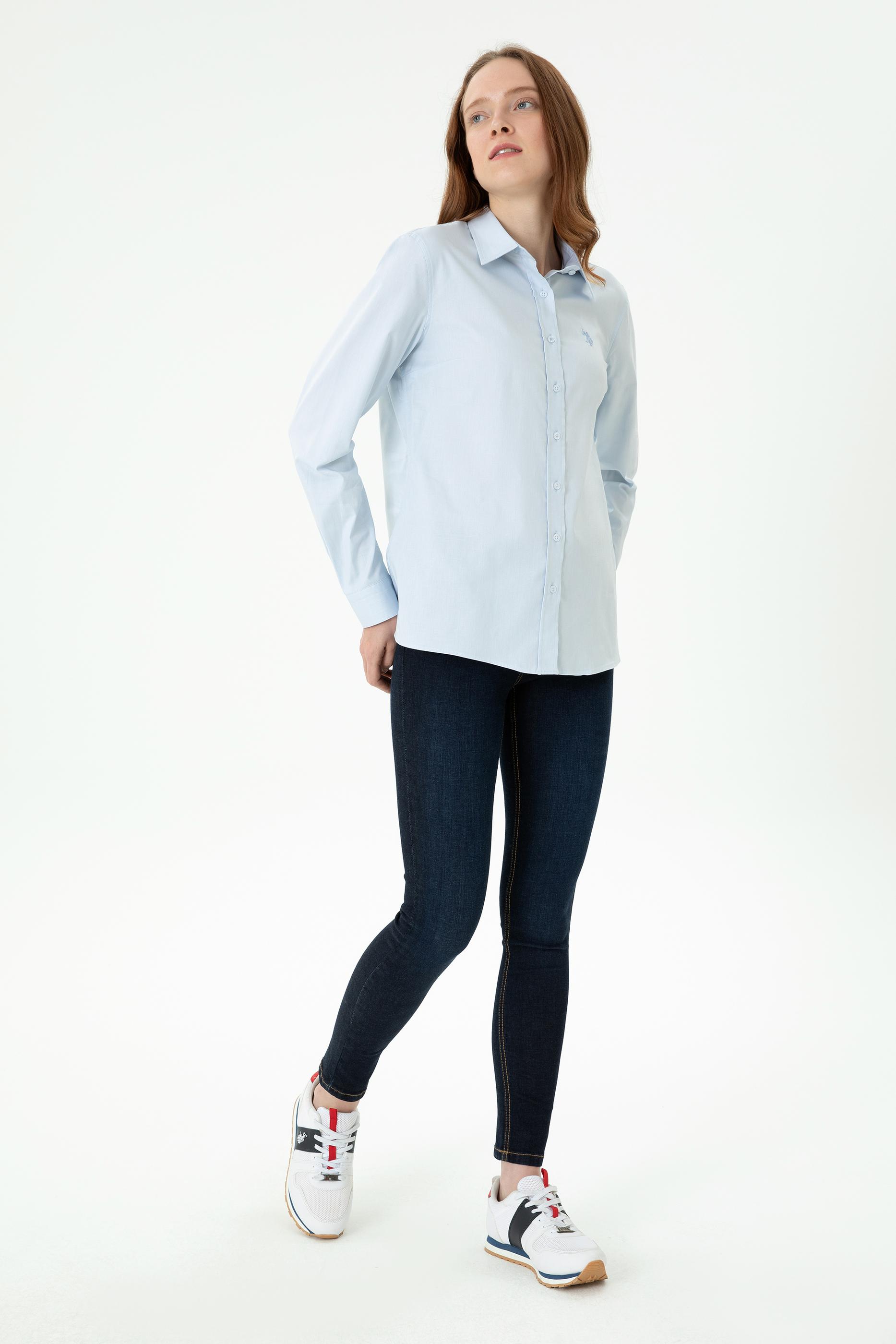 - Kadın Açık Mavi Uzun Kollu Basic Gömlek