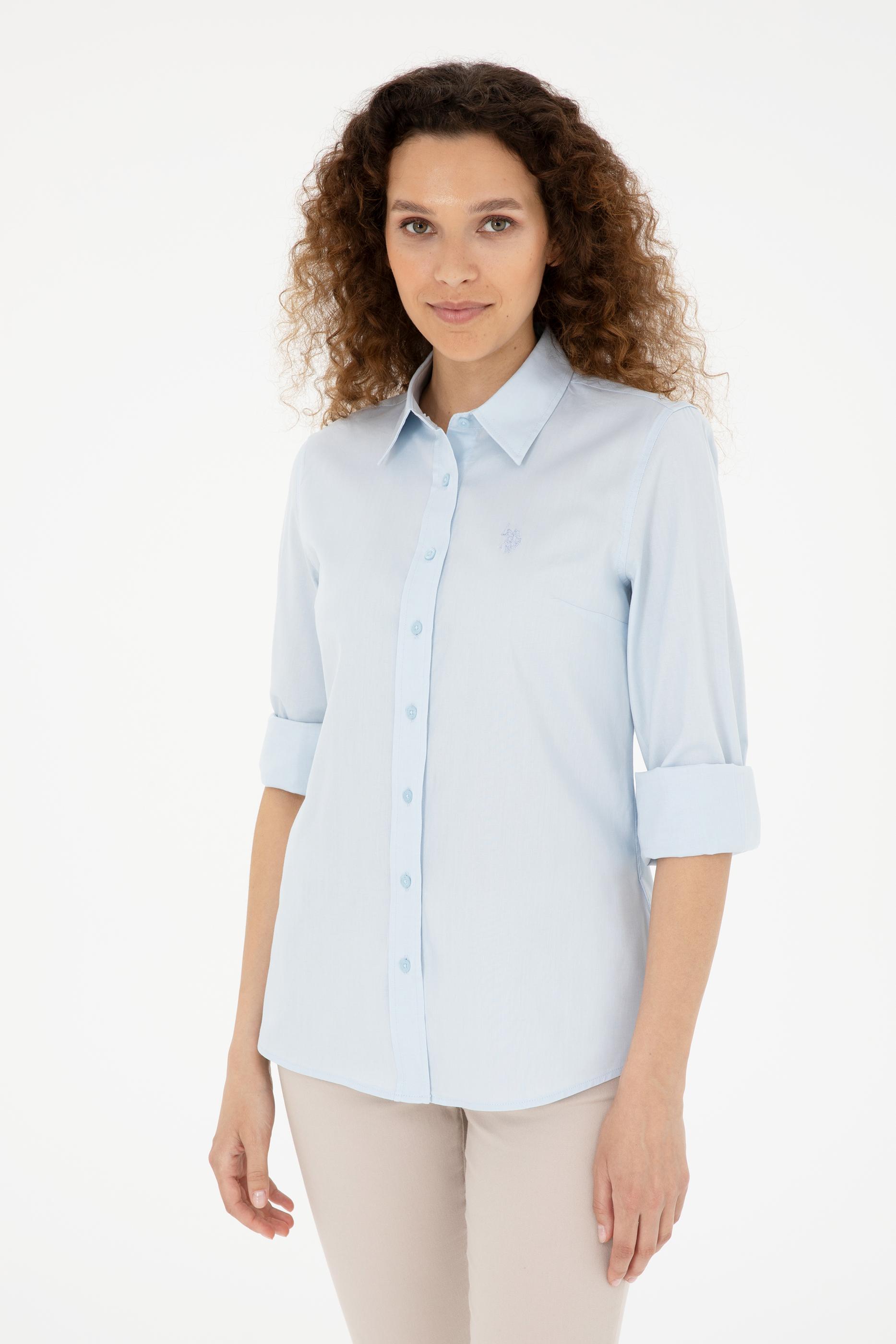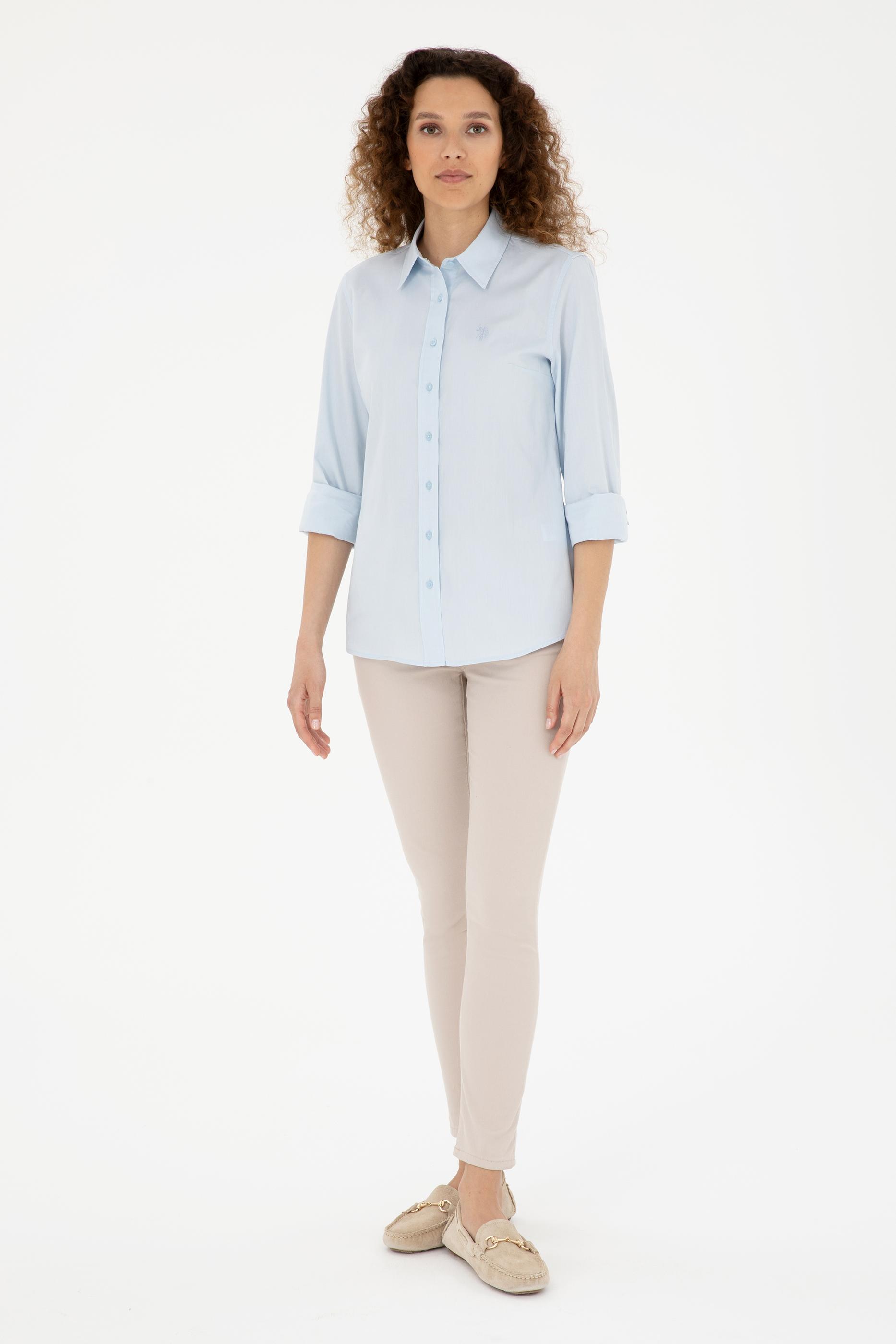 - Kadın Açık Mavi Uzun Kollu Basic Gömlek
