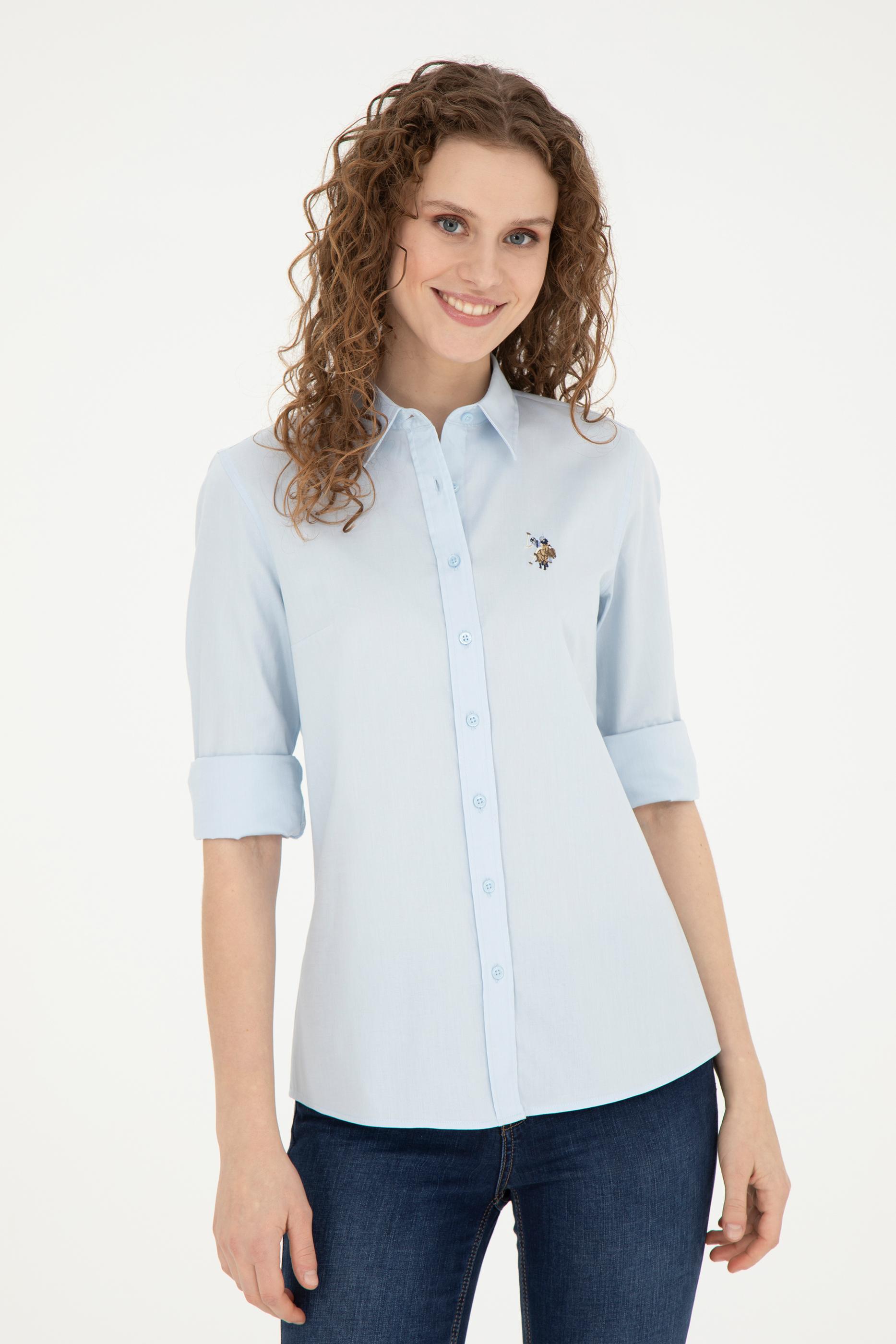 - Kadın Açık Mavi Uzun Kollu Basic Gömlek
