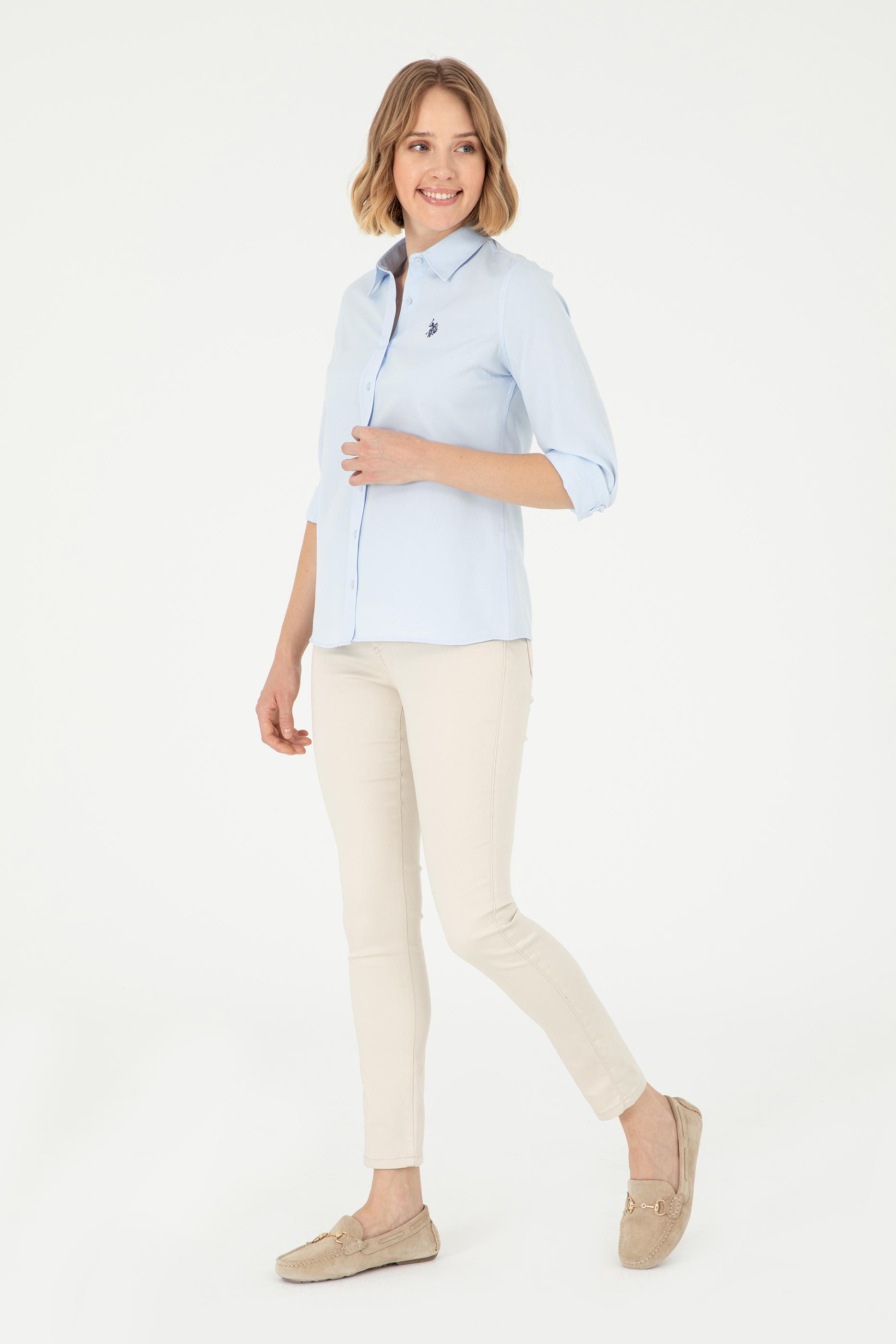 Kadın Açık Mavi Uzun Kollu Basic Gömlek