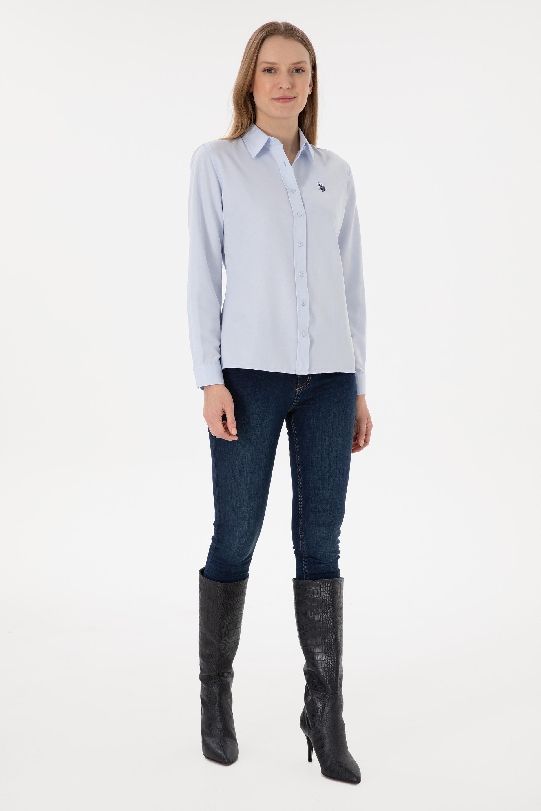 - Kadın Açık Mavi Uzun Kollu Basic Gömlek