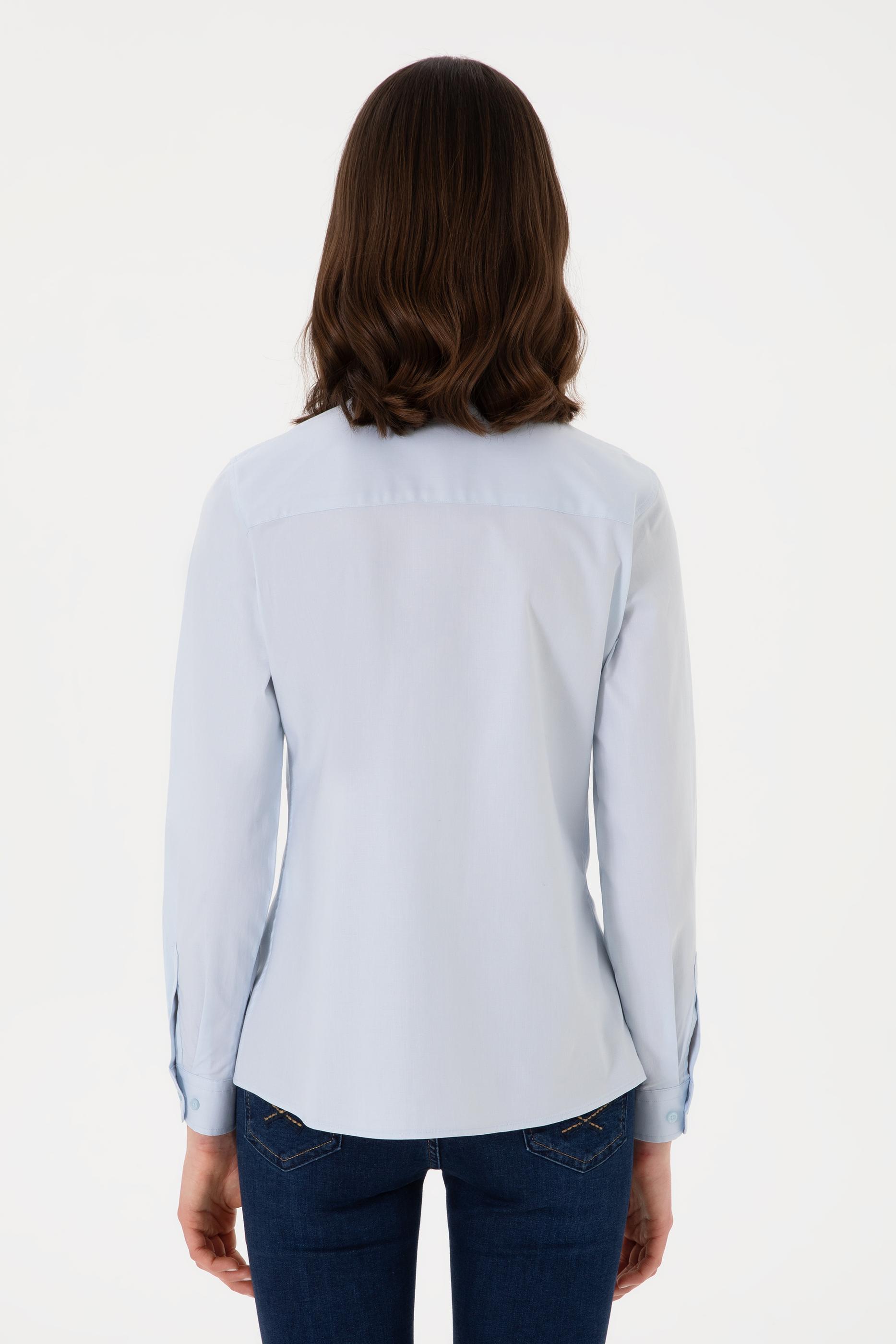 - Kadın Açık Mavi Uzun Kollu Basic Gömlek