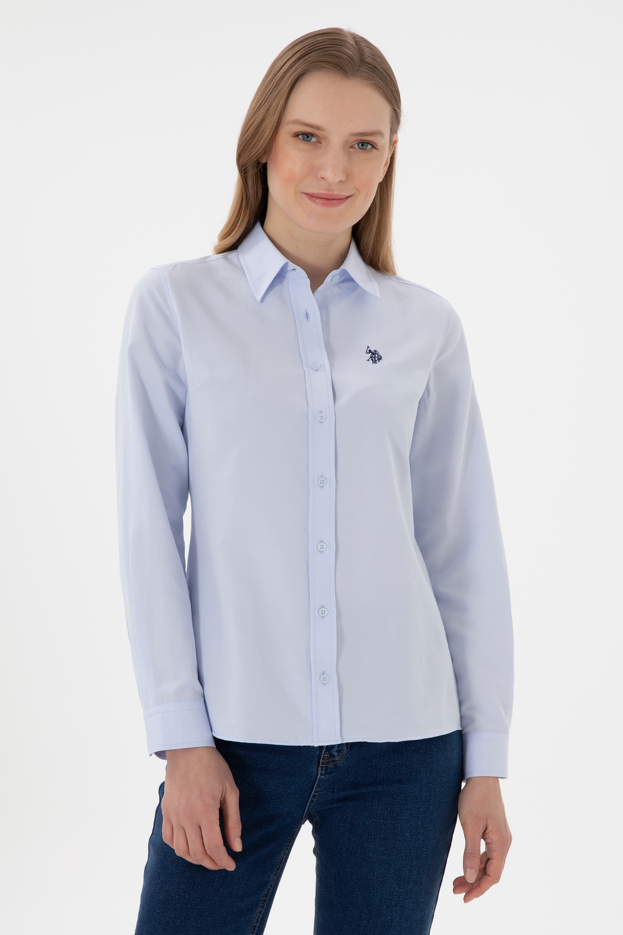 - Kadın Açık Mavi Uzun Kollu Basic Gömlek