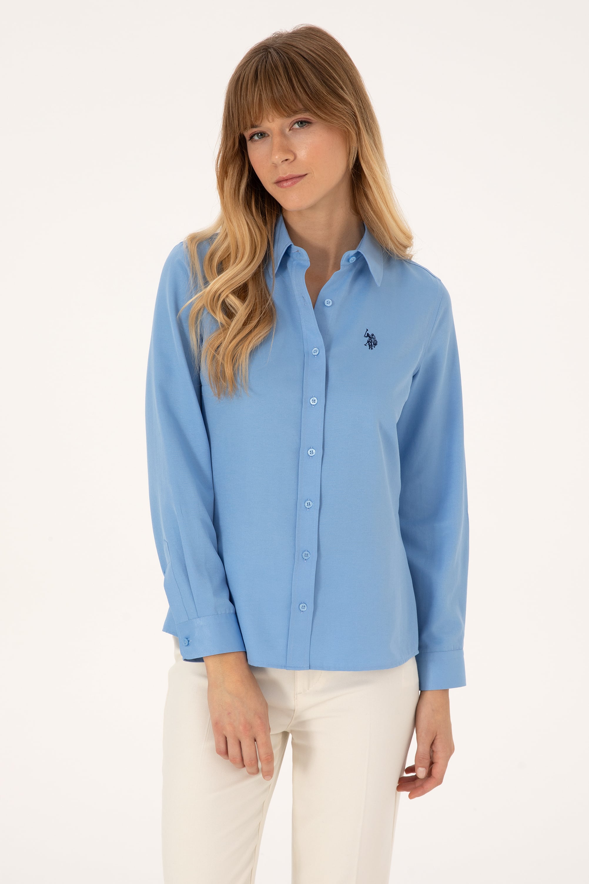 - Kadın Açık Mavi Uzun Kollu Basic Gömlek