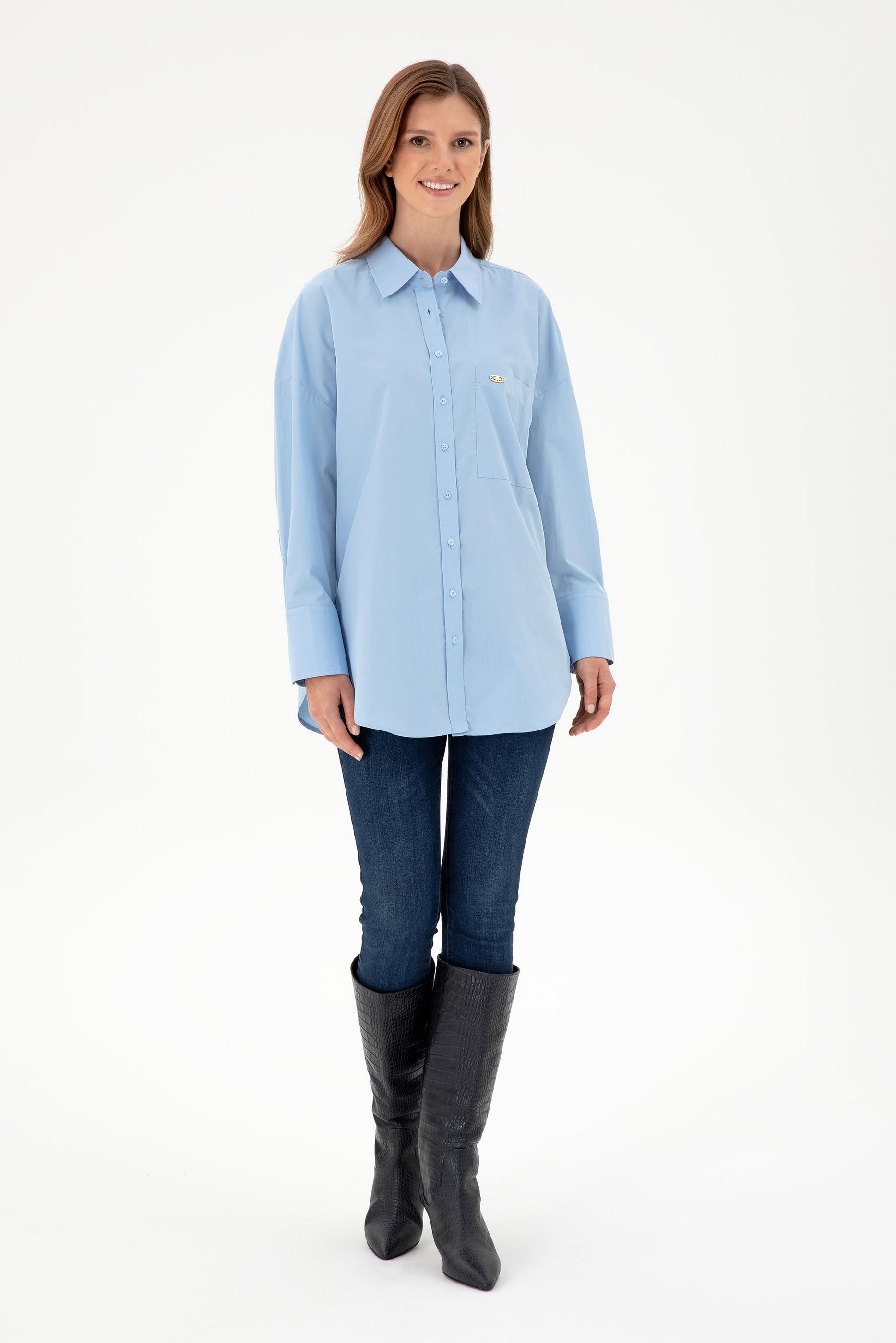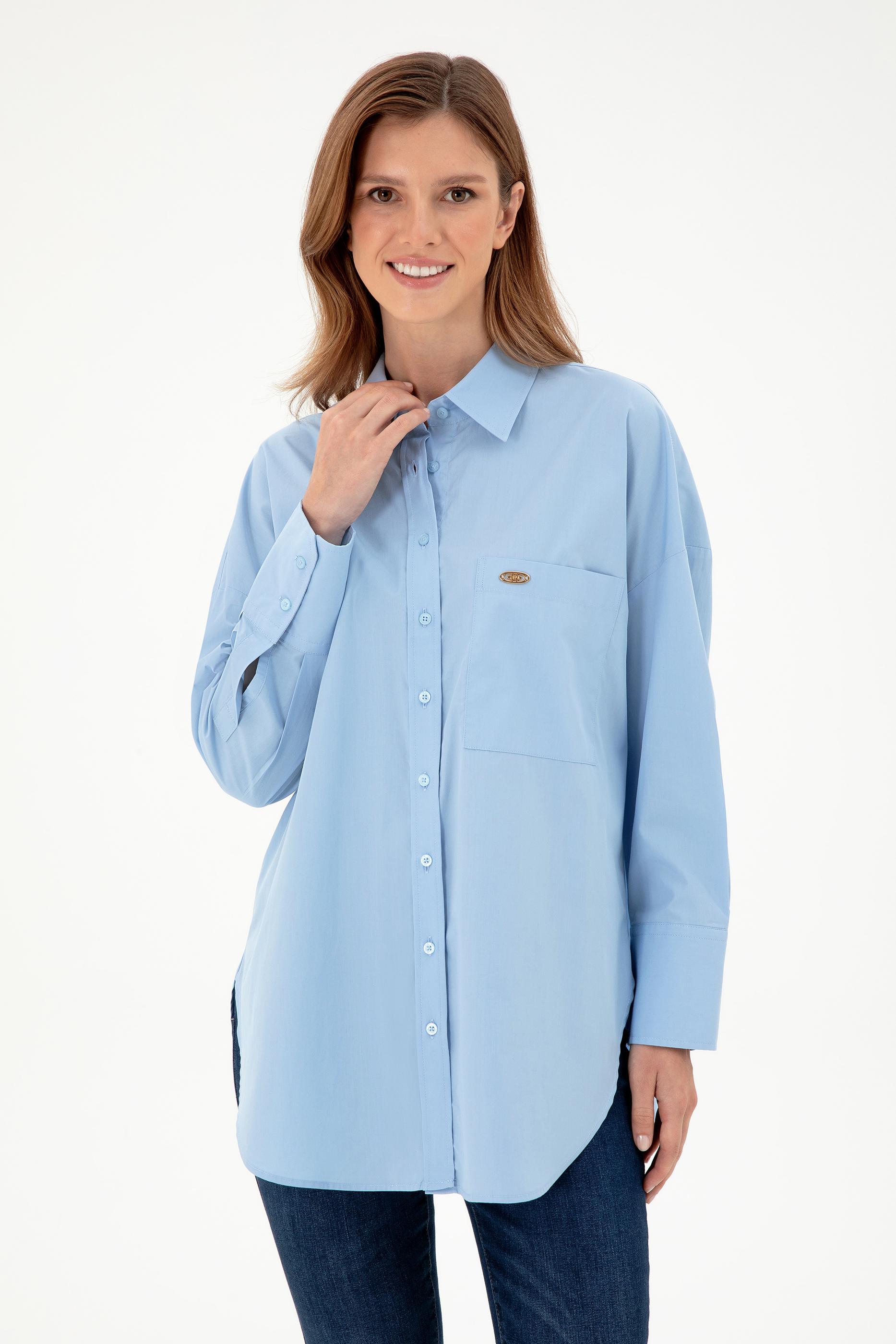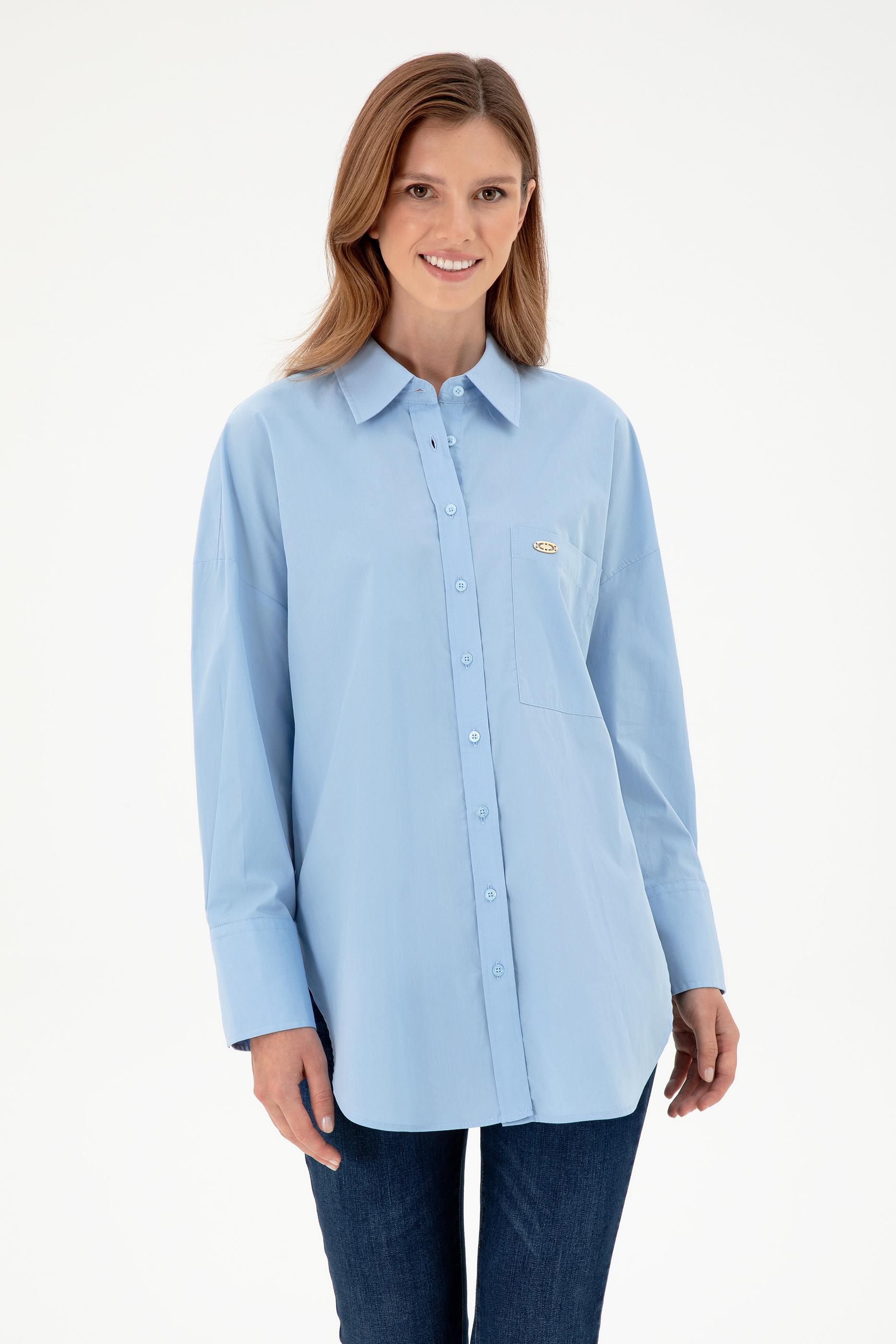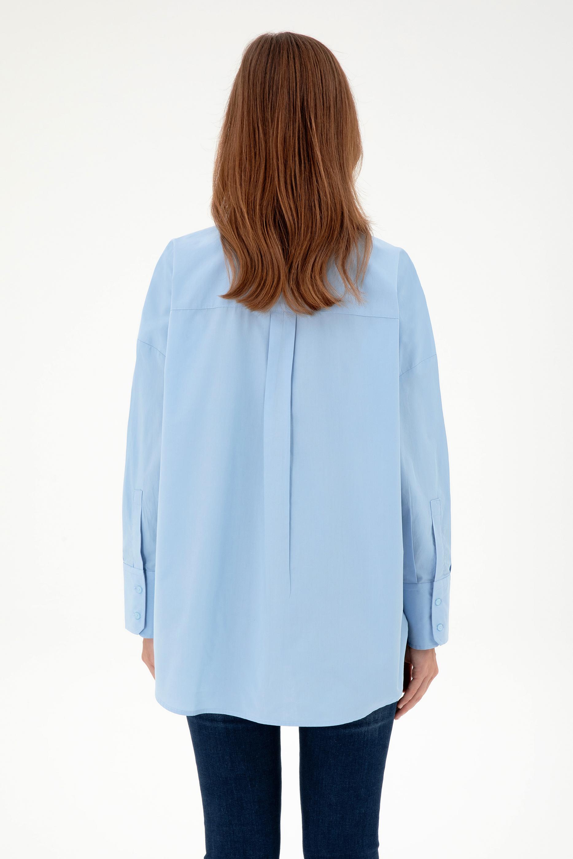 Kadın Açık Mavi Uzun Kollu Tunik Gömlek