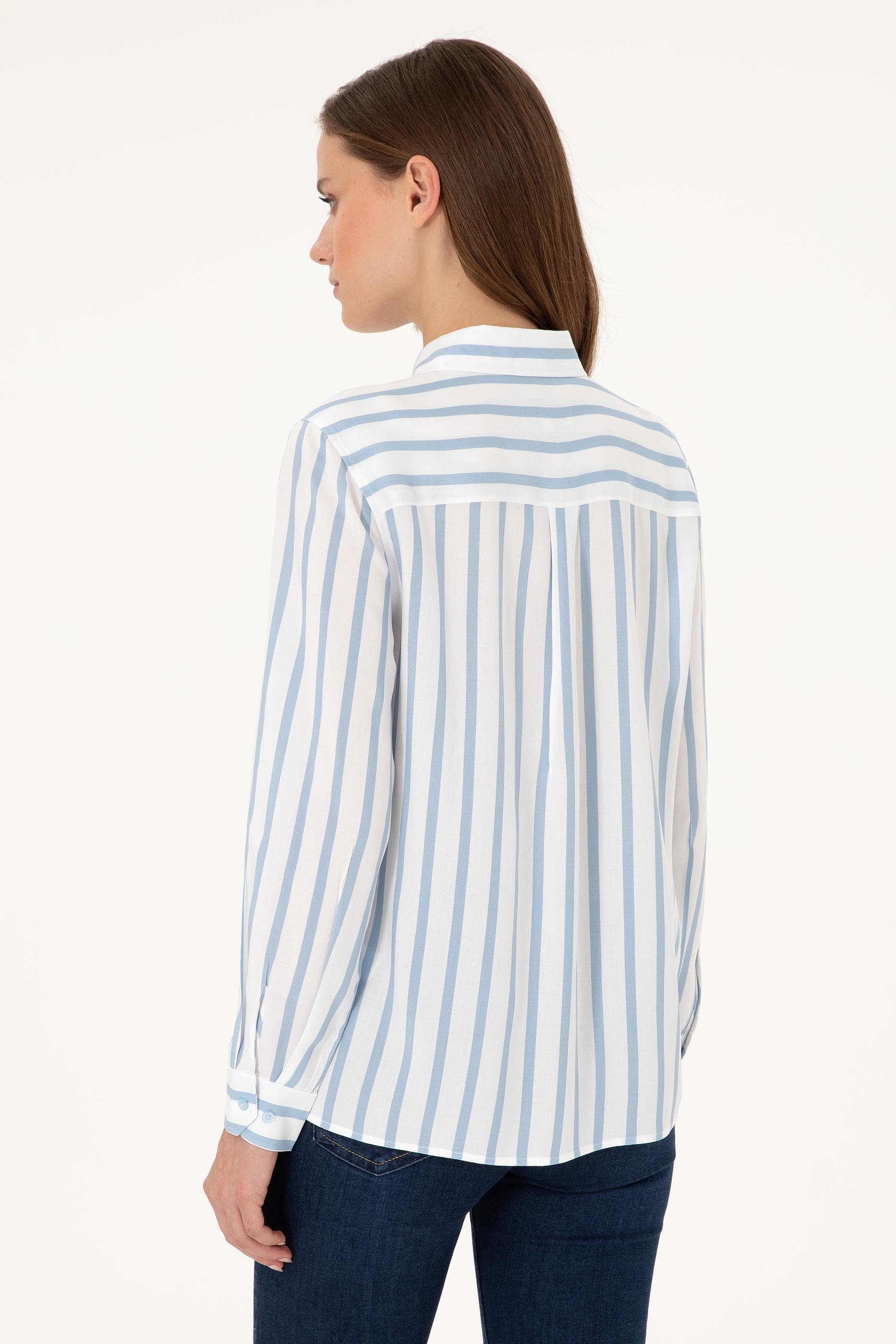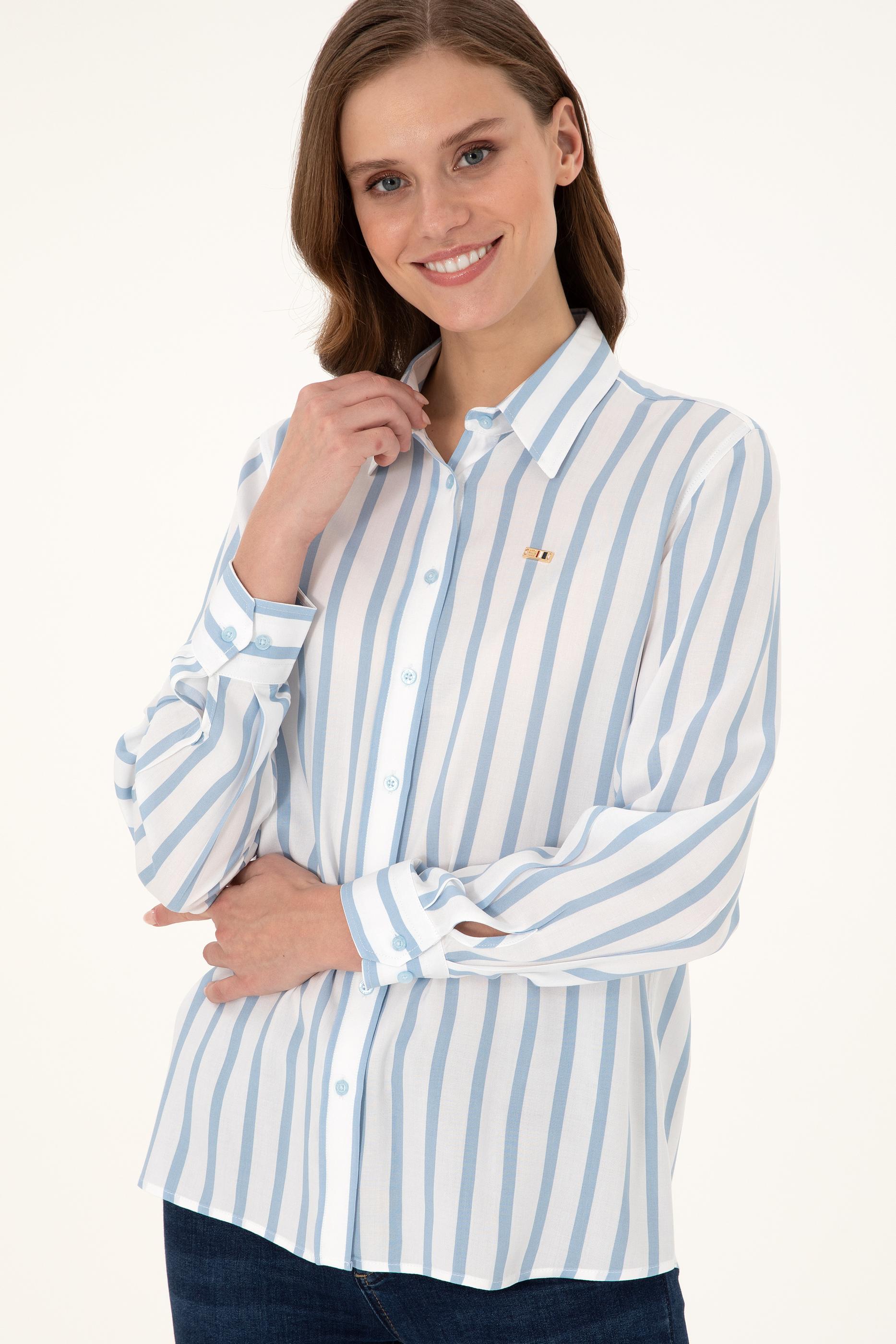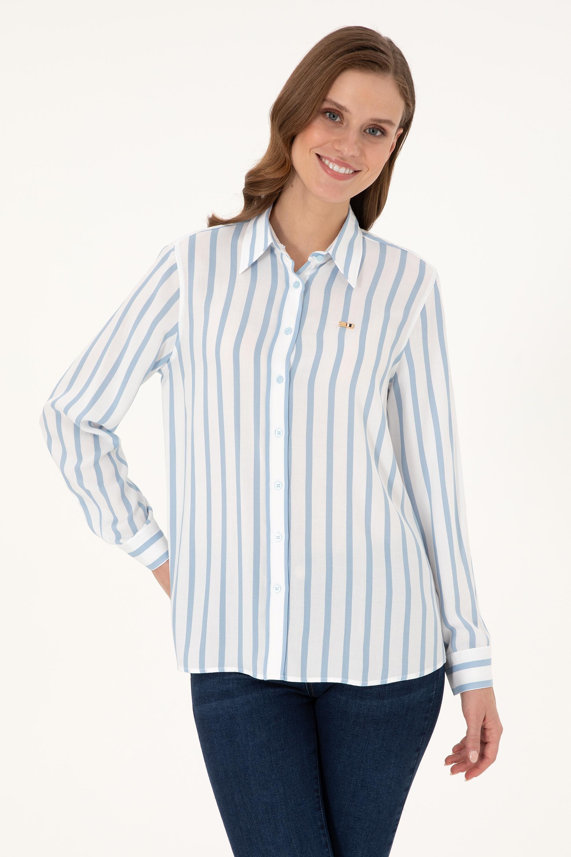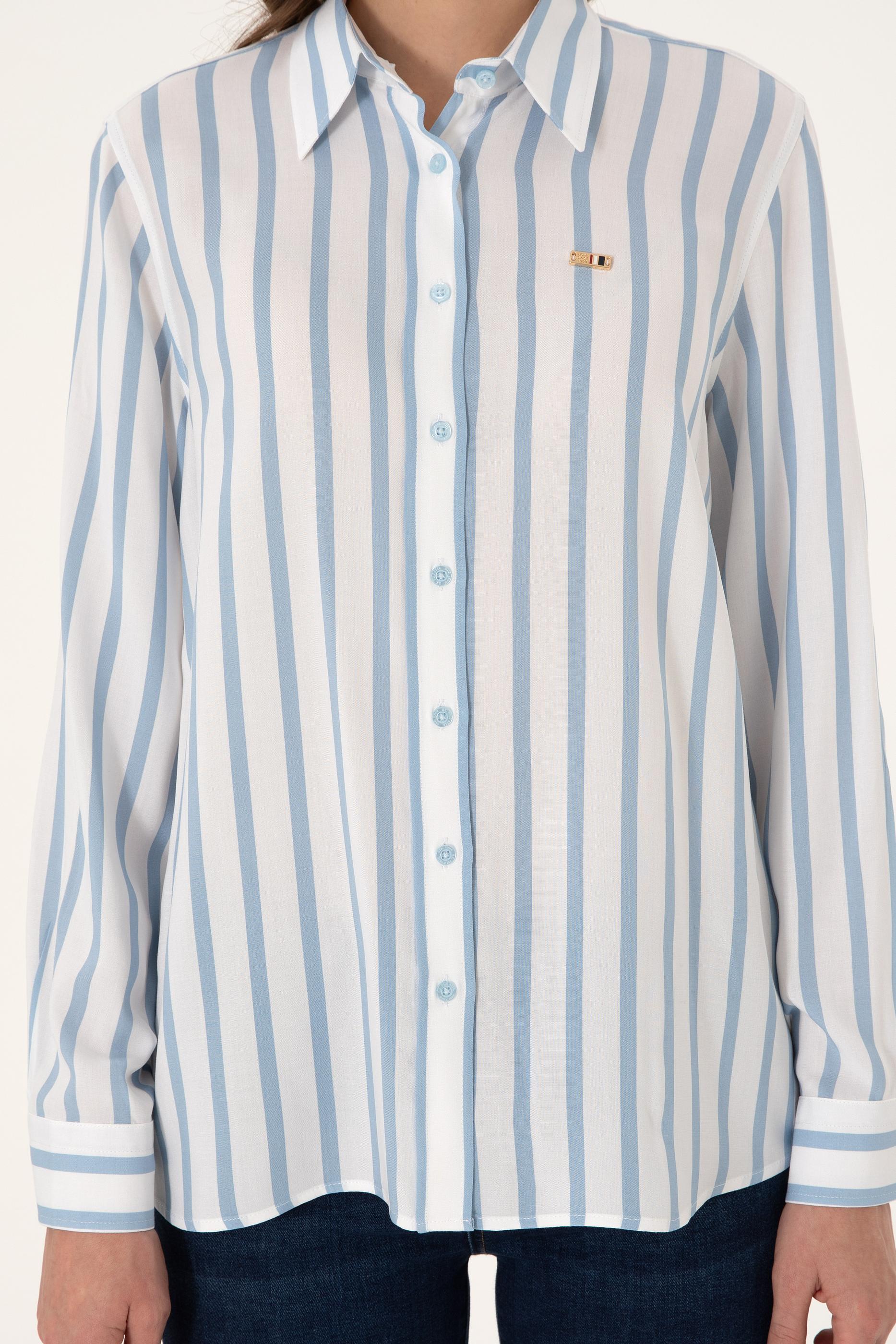 - Kadın Açık Mavi Çizgili Uzun Kollu Gömlek