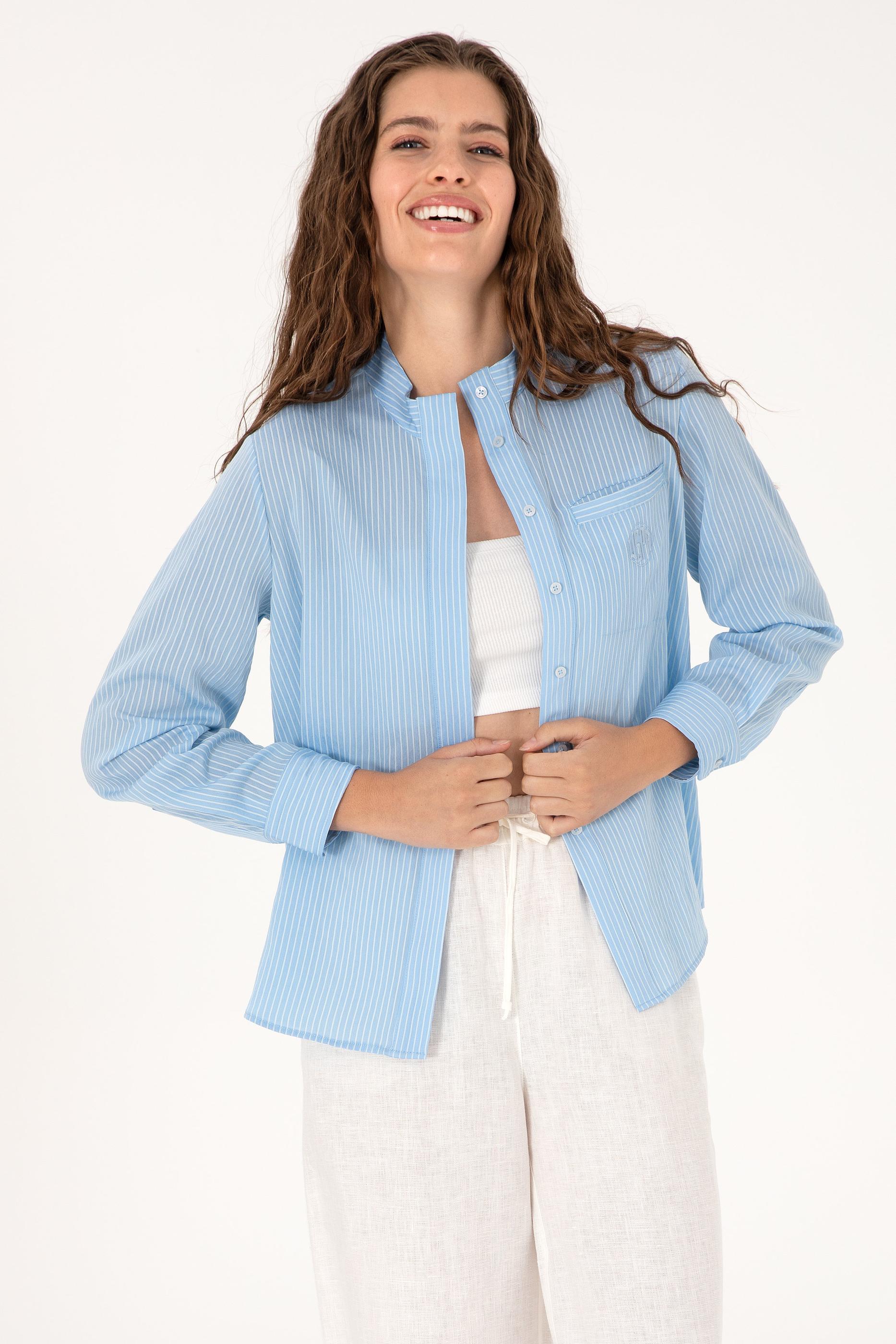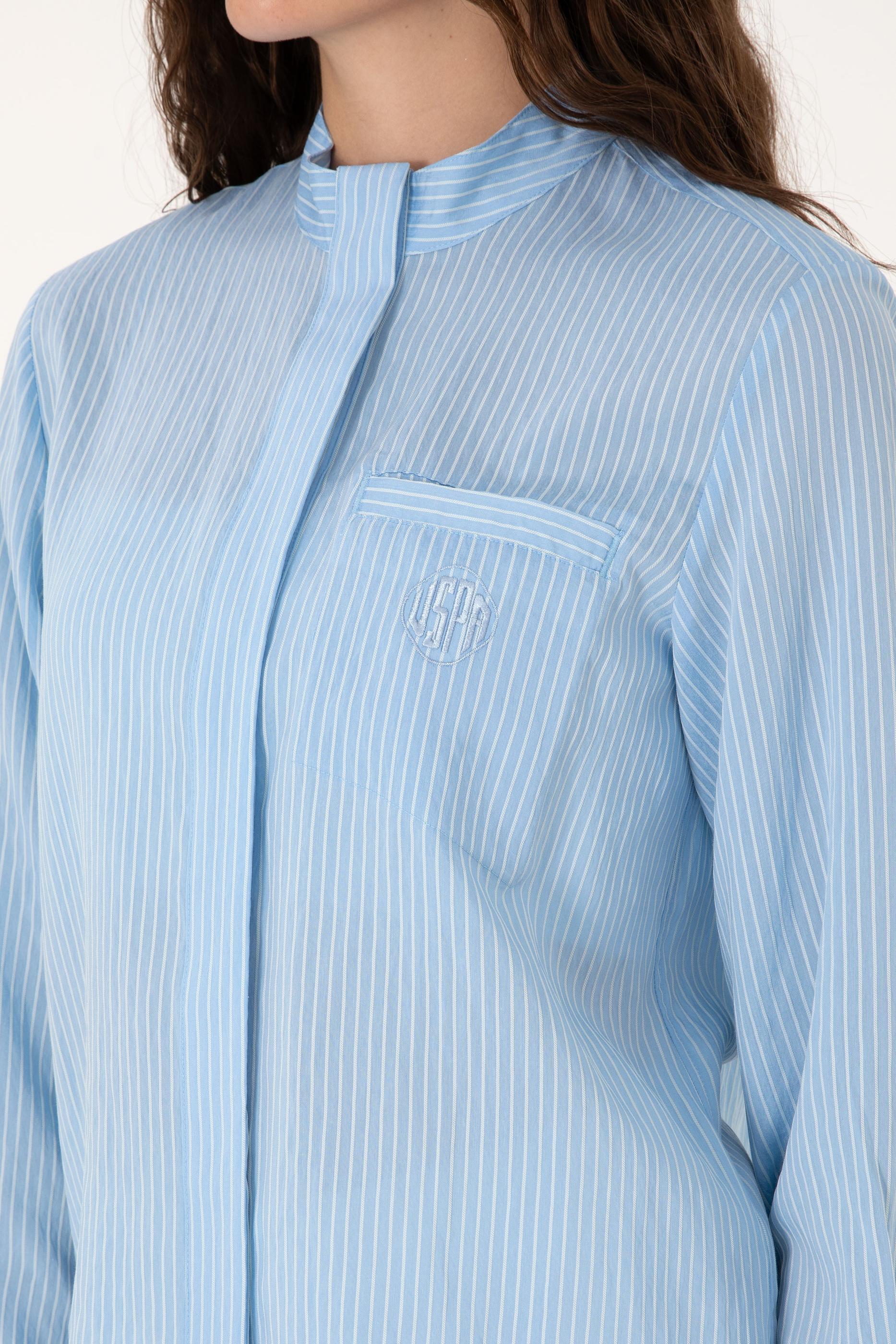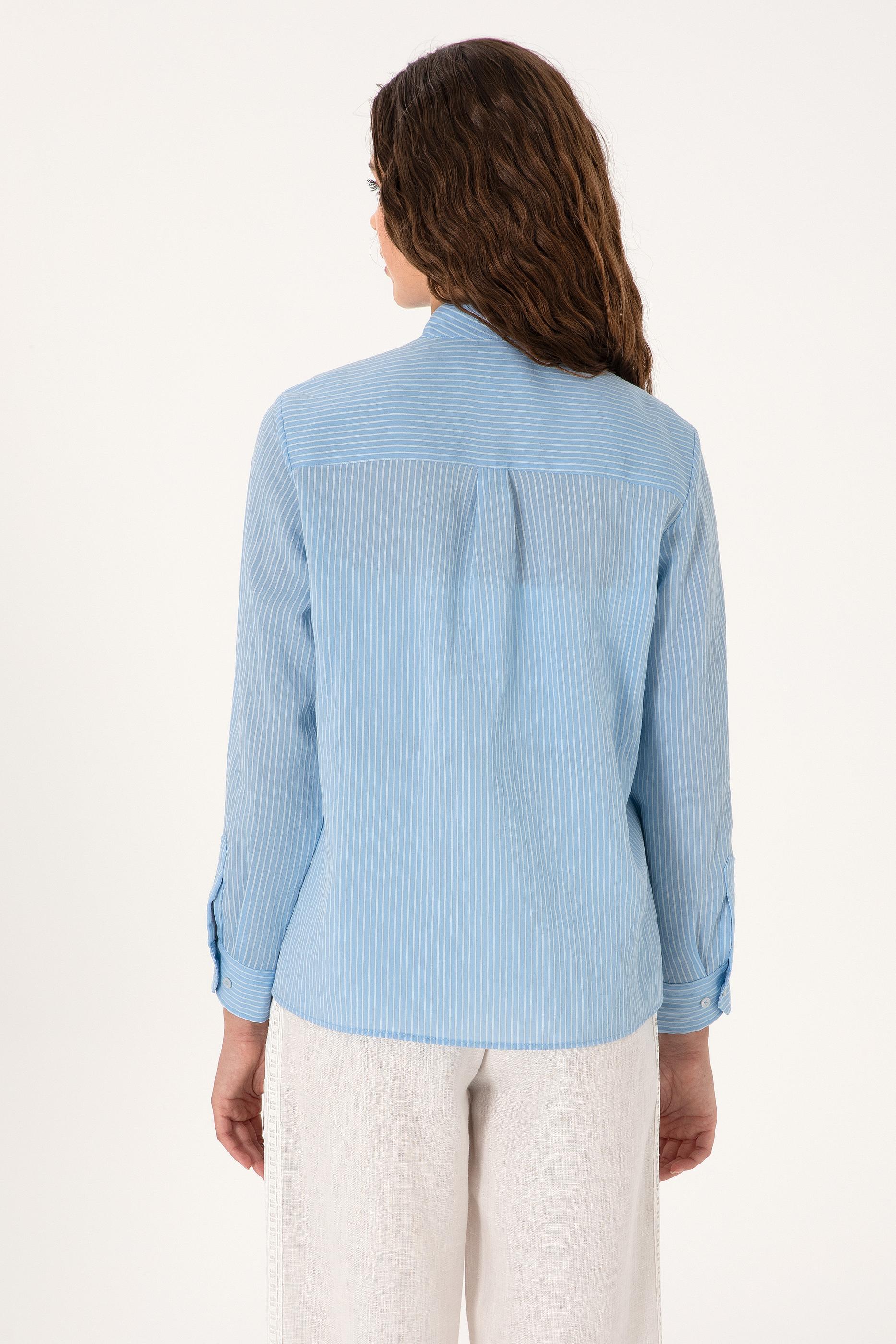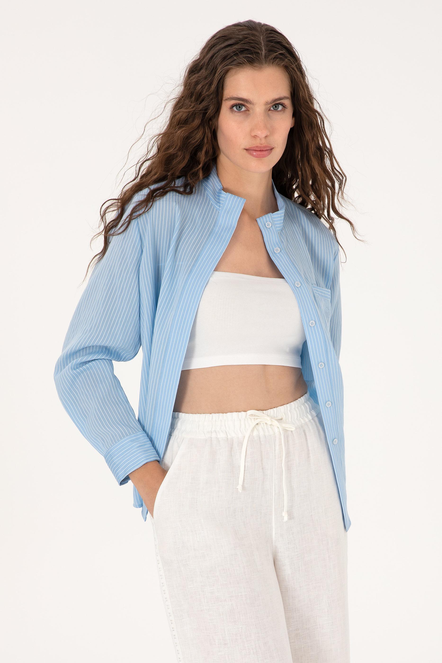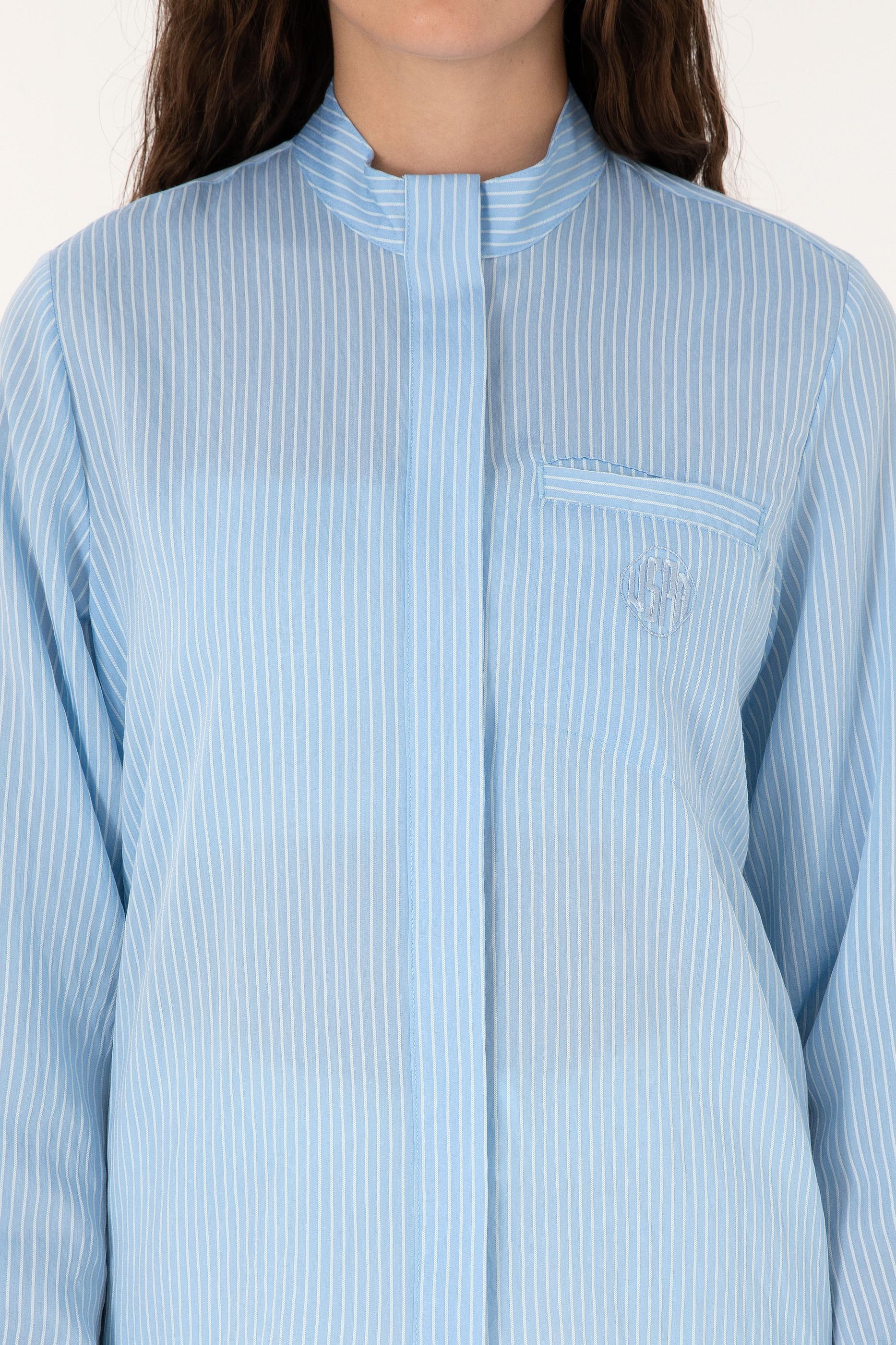 Kadın Açık Mavi Çizgili Uzun Kollu Gömlek - 50299541007