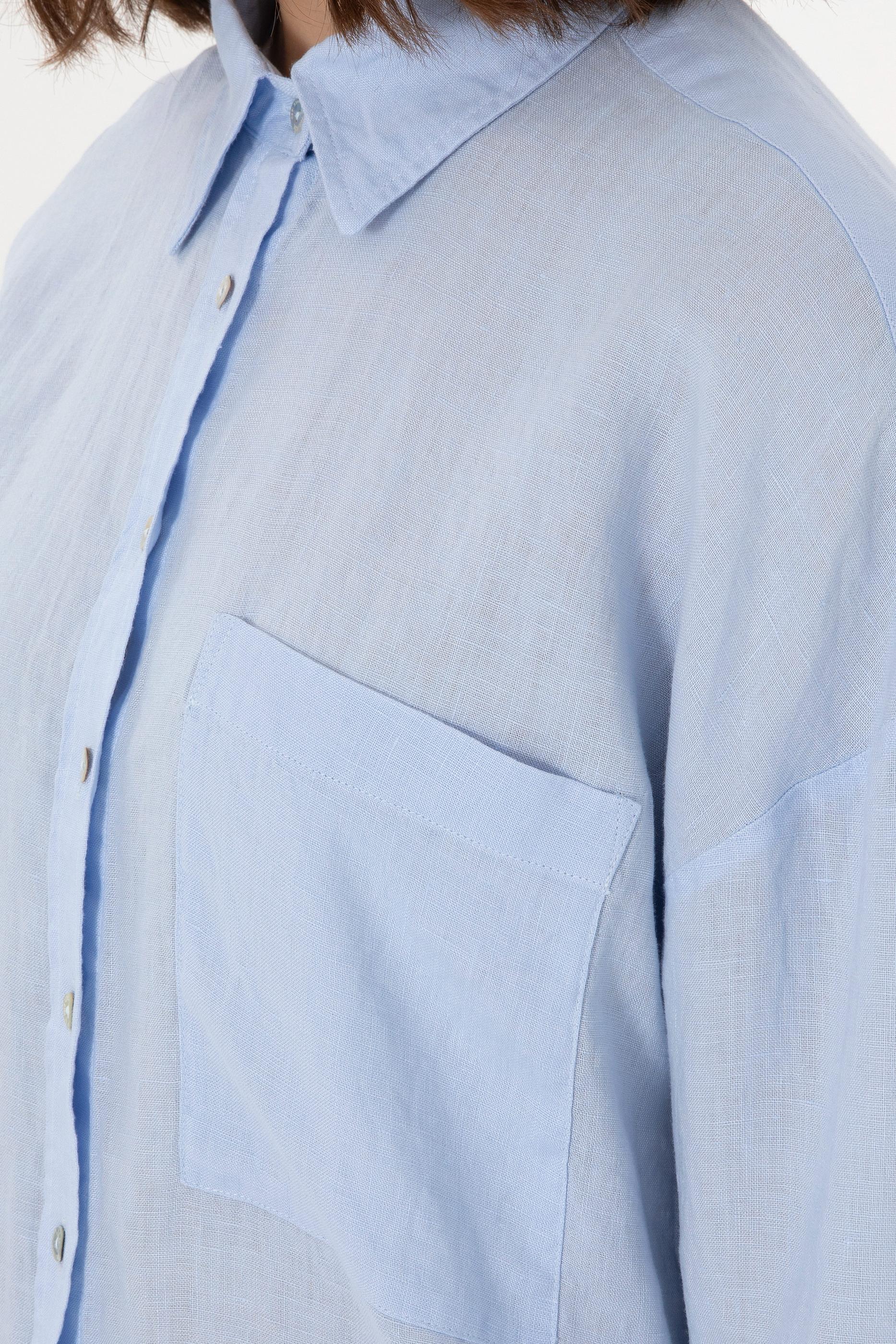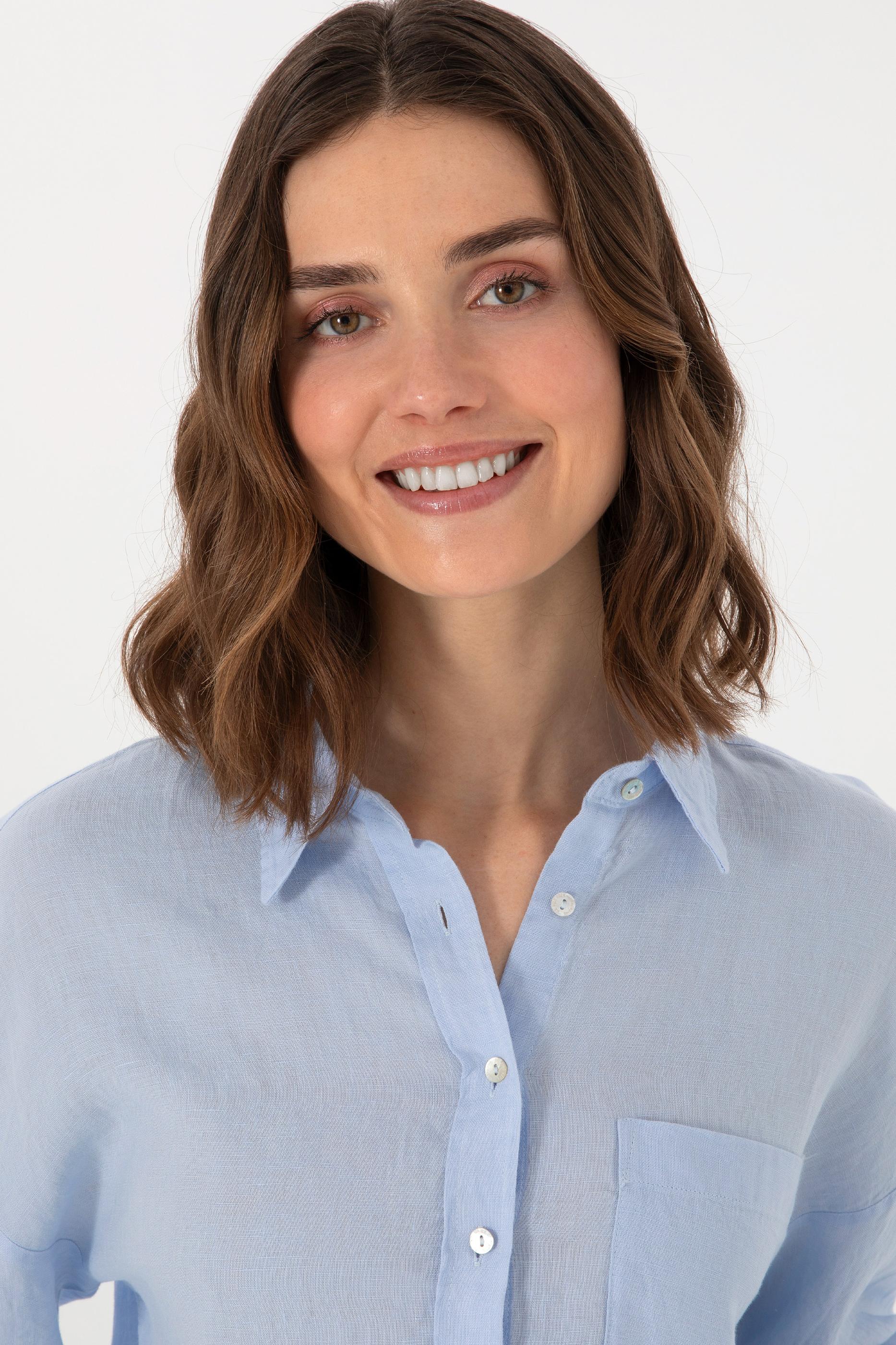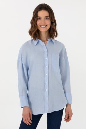- Kadın Açık Mavi Uzun Kollu Keten Tunik Gömlek